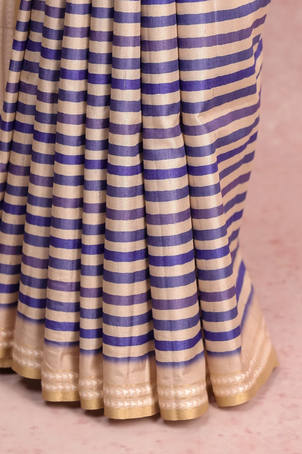 Cream Semi Tussar Lines Saree with Small Border. Includes Unstitched Blouse