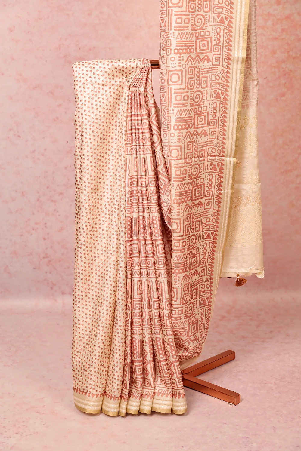 Cream Semi Tussar Saree