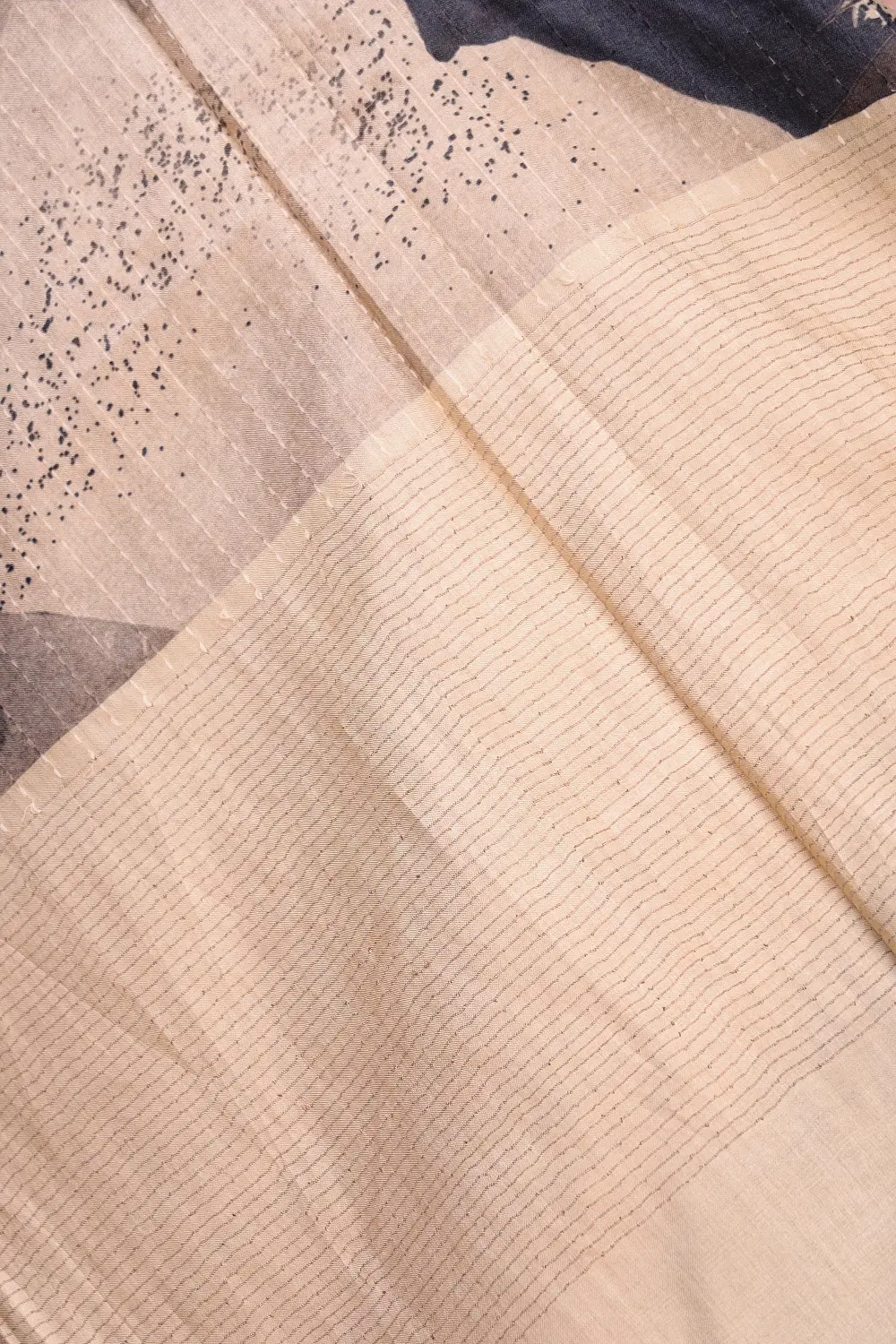 Cream Tussar Printed Saree with Small Border. Includes Unstitched Blouse