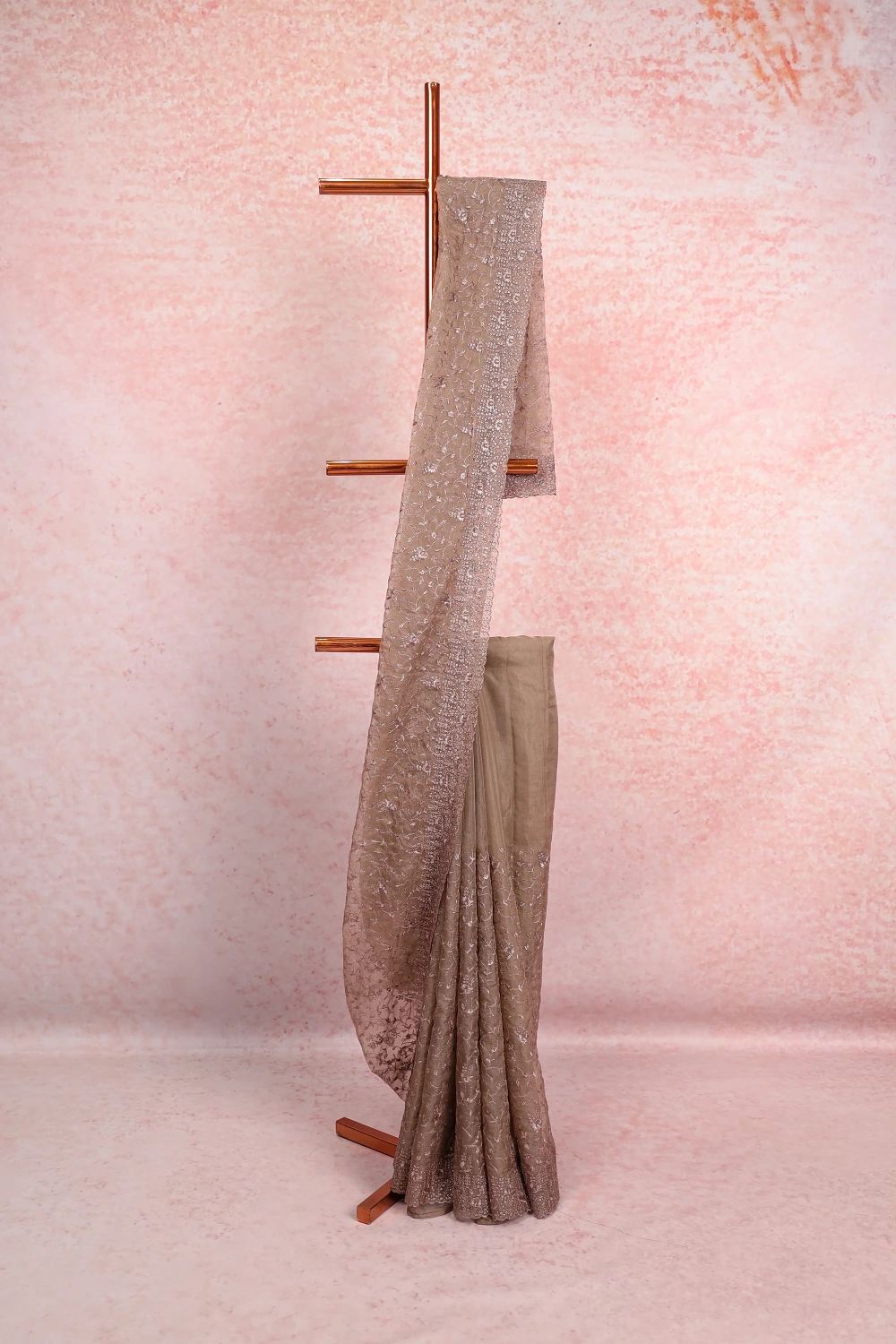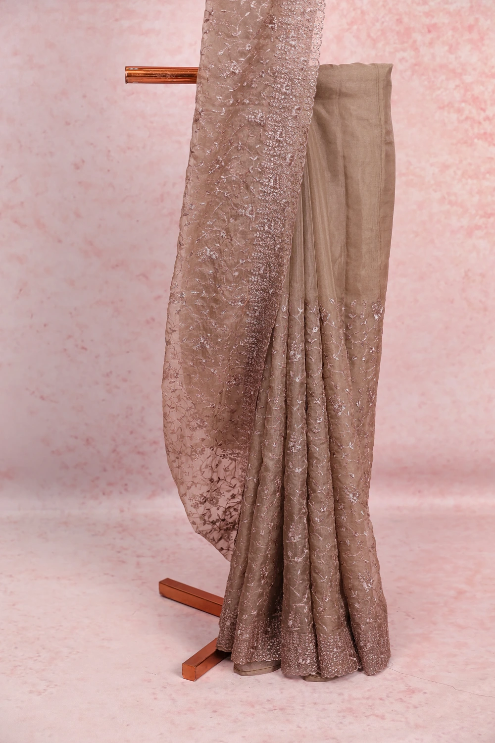 Dark Ash Organza Saree