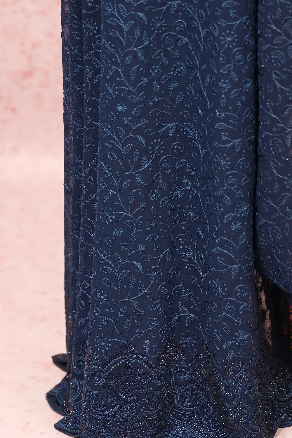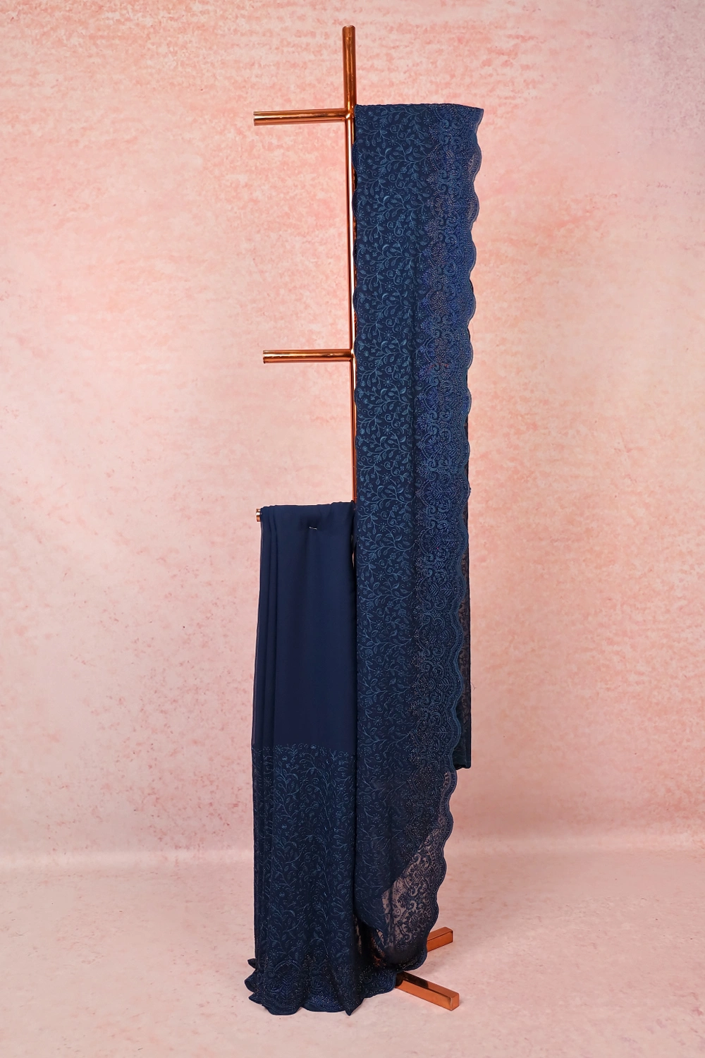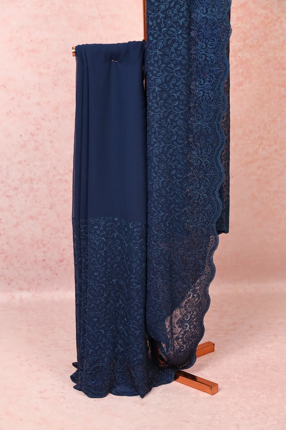 Dark Blue Georgette Saree with Unstiched Blouse Piece