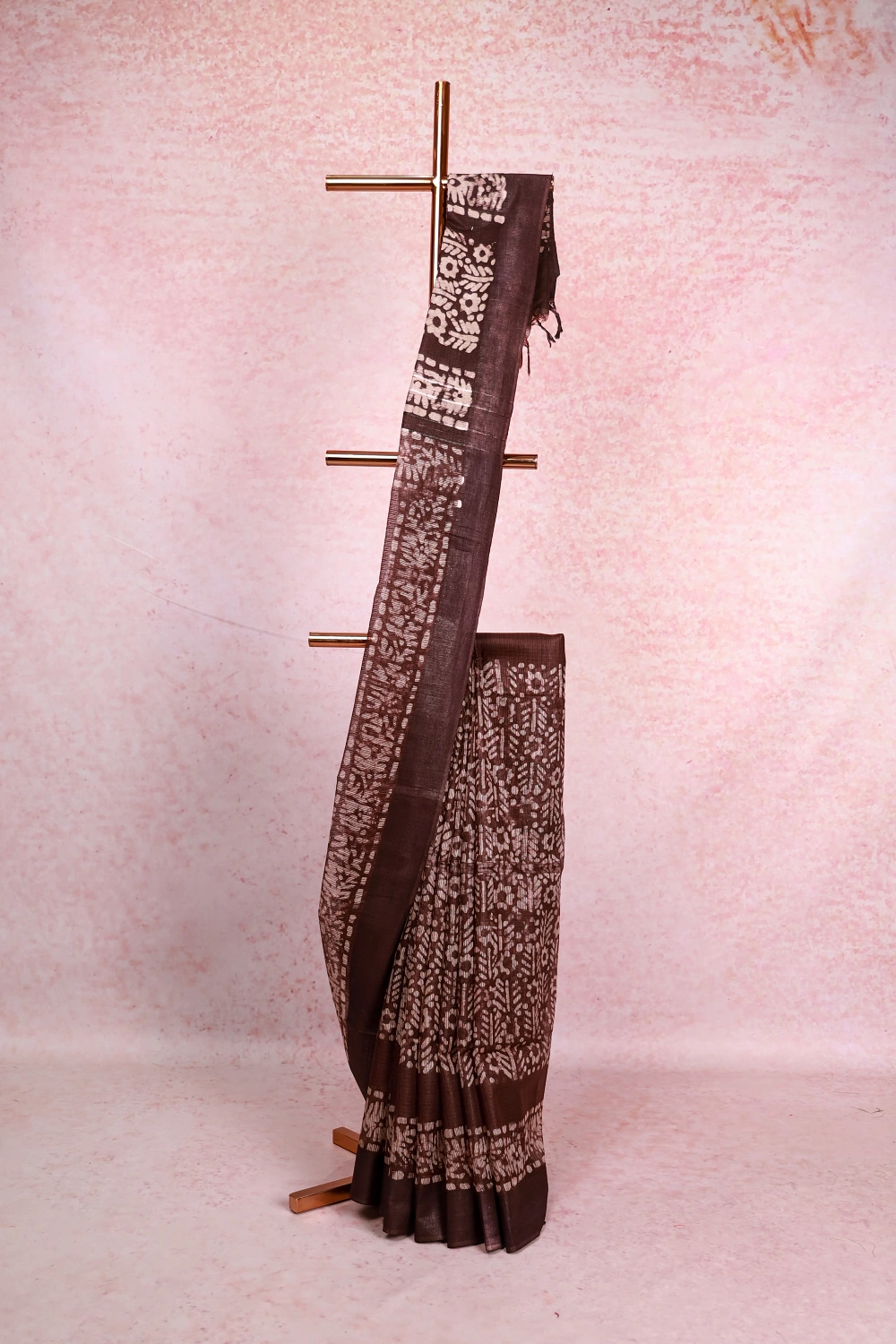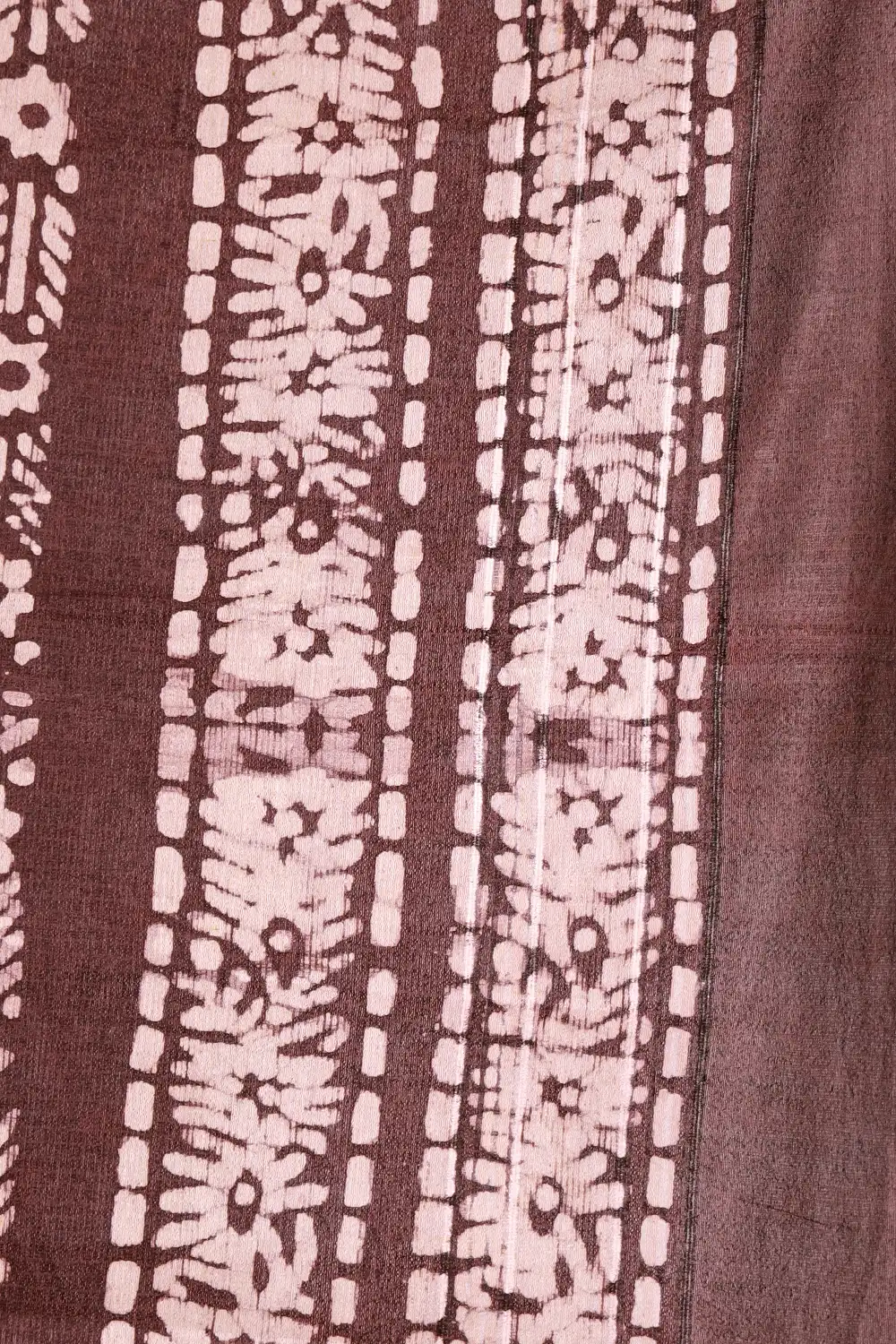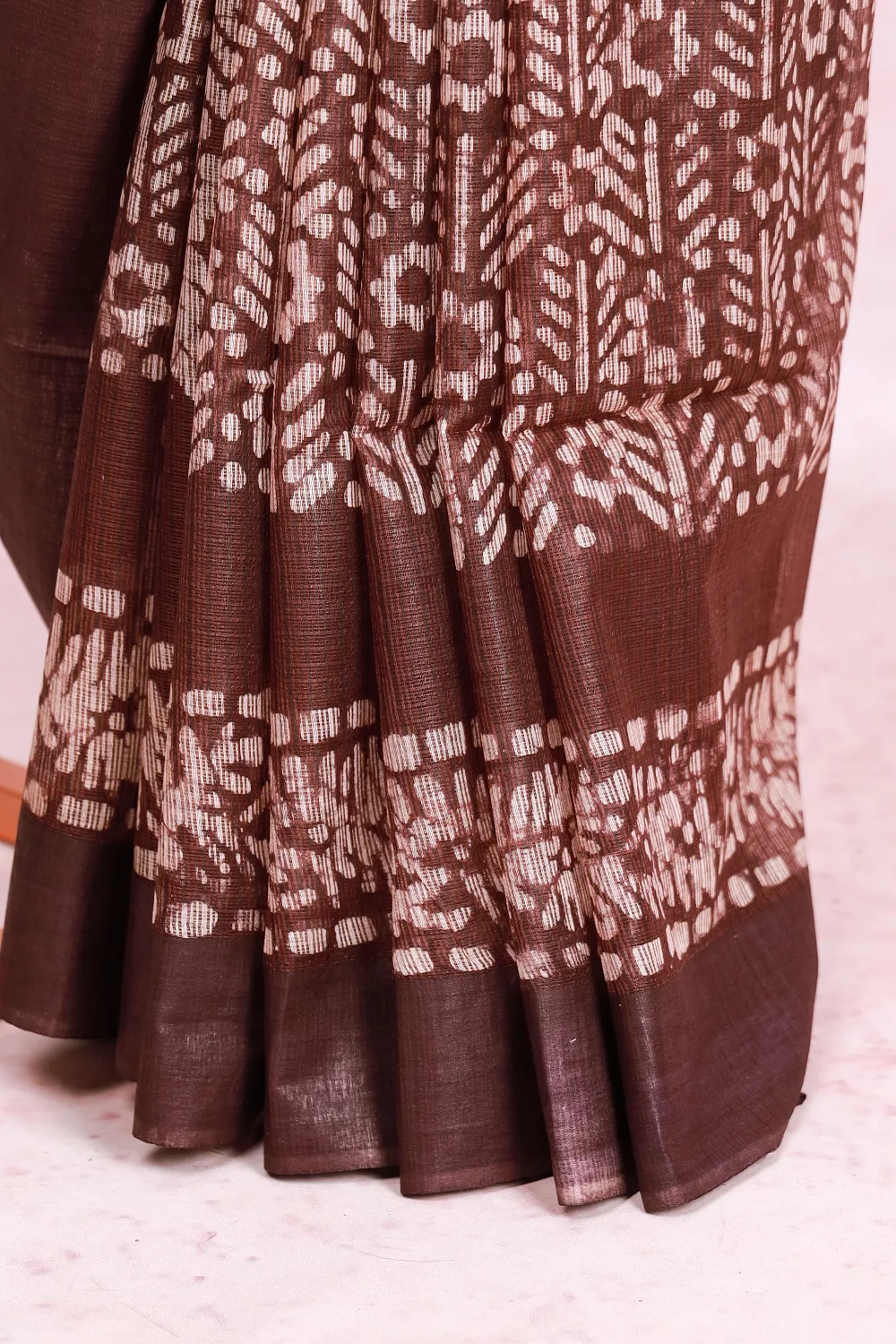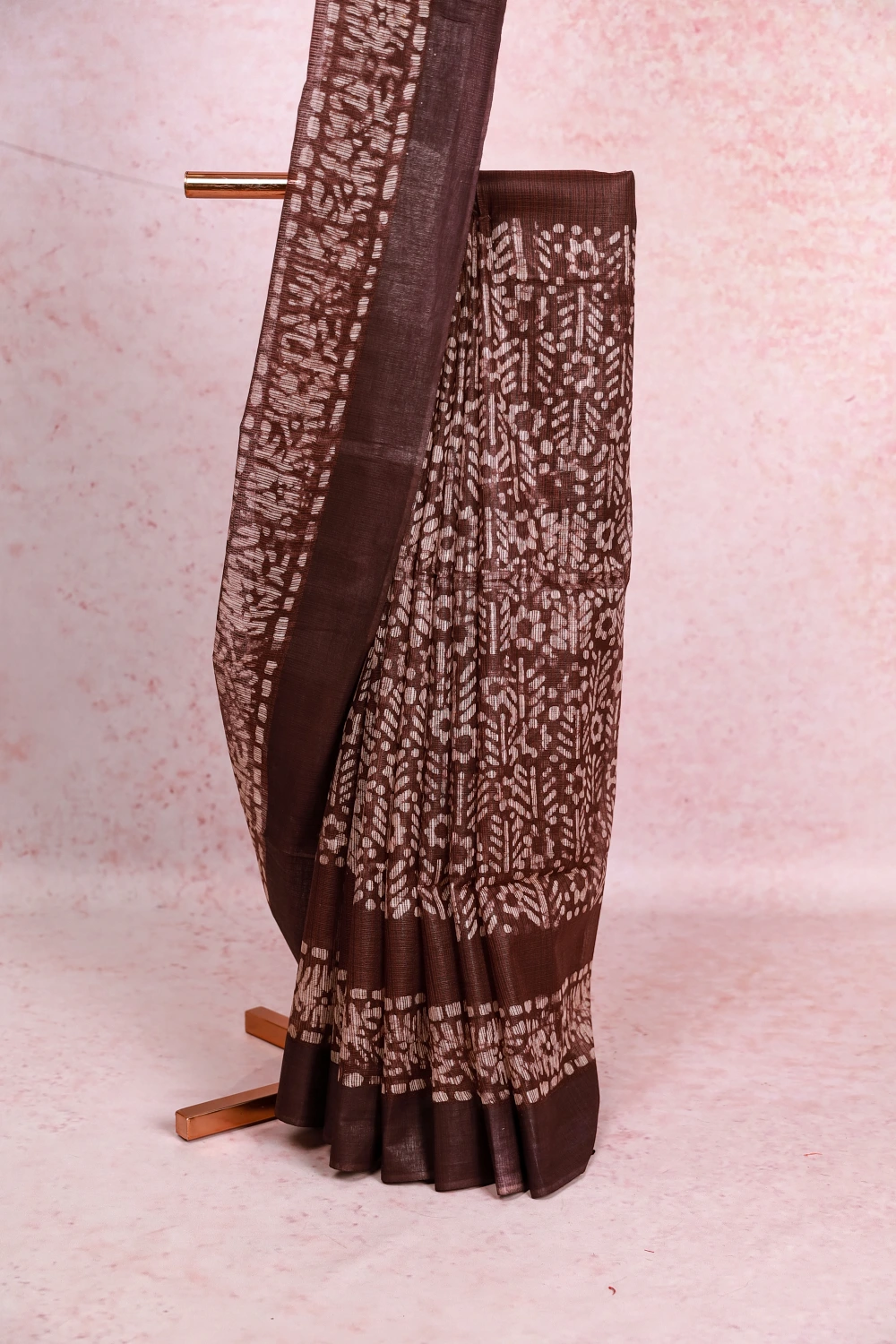 Dark Brown Semi Tussar Bandhani Printed Saree With Plain Border. Includes Un Stitched Blouse