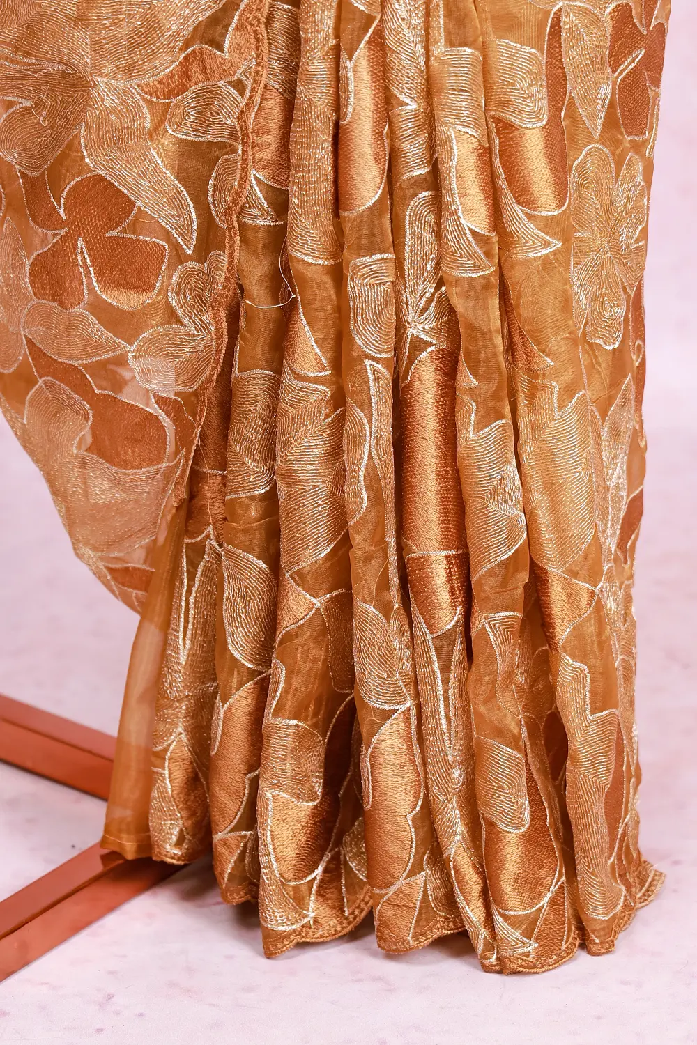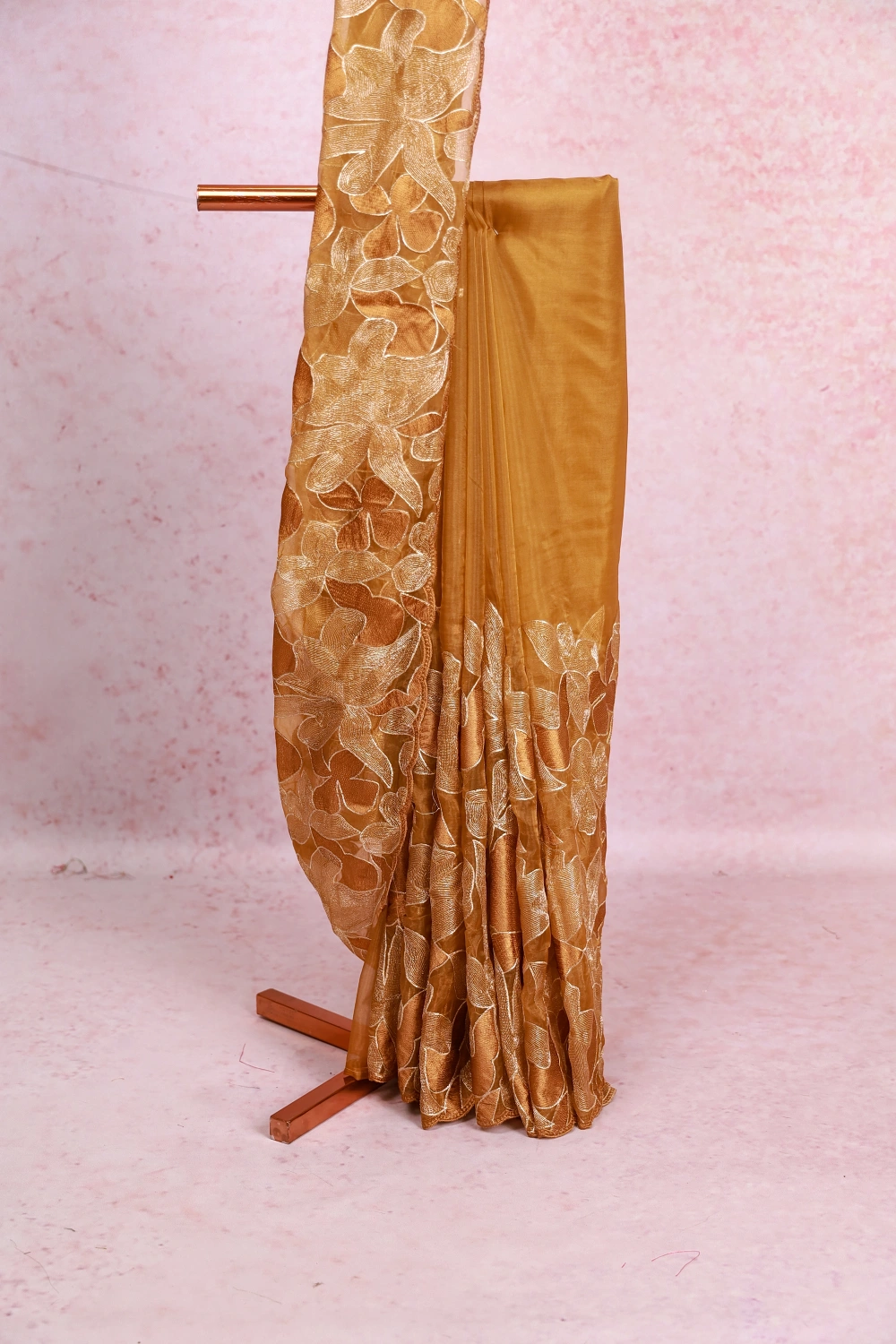 Dark Gold Tissue Organza Saree