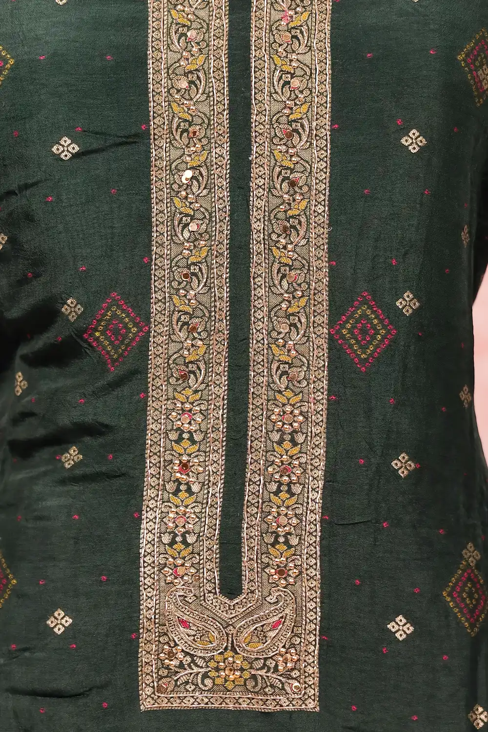 Dark Green Banarasi Banarasi Design Unstitched Churidar Material