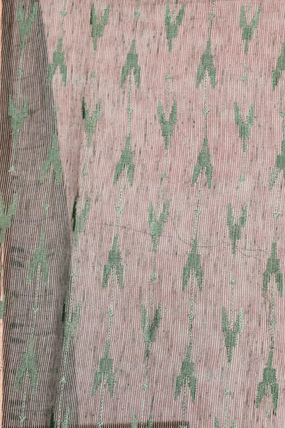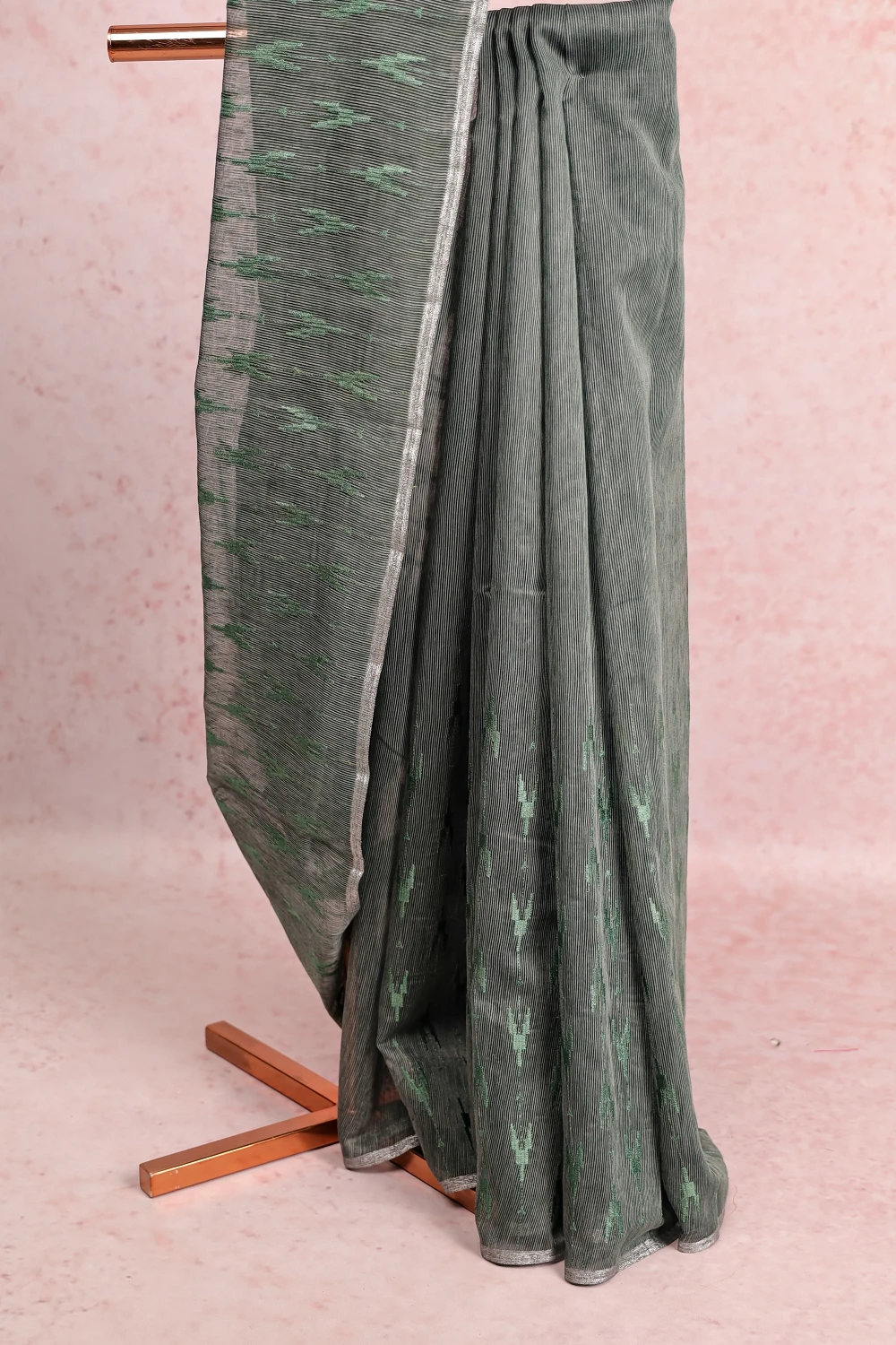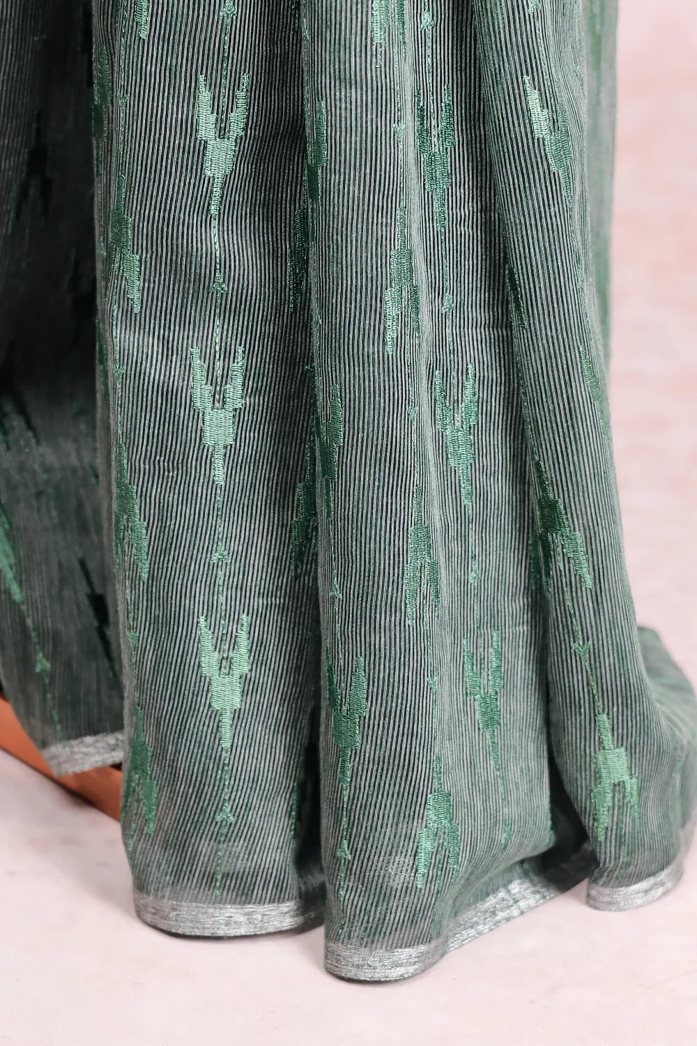 Dark Green Semi Jute Lines Saree With Small Border. Includes Un Stitched Blouse