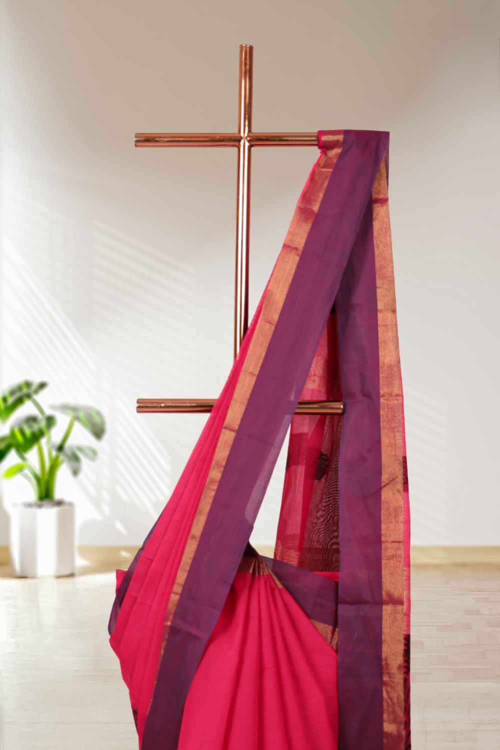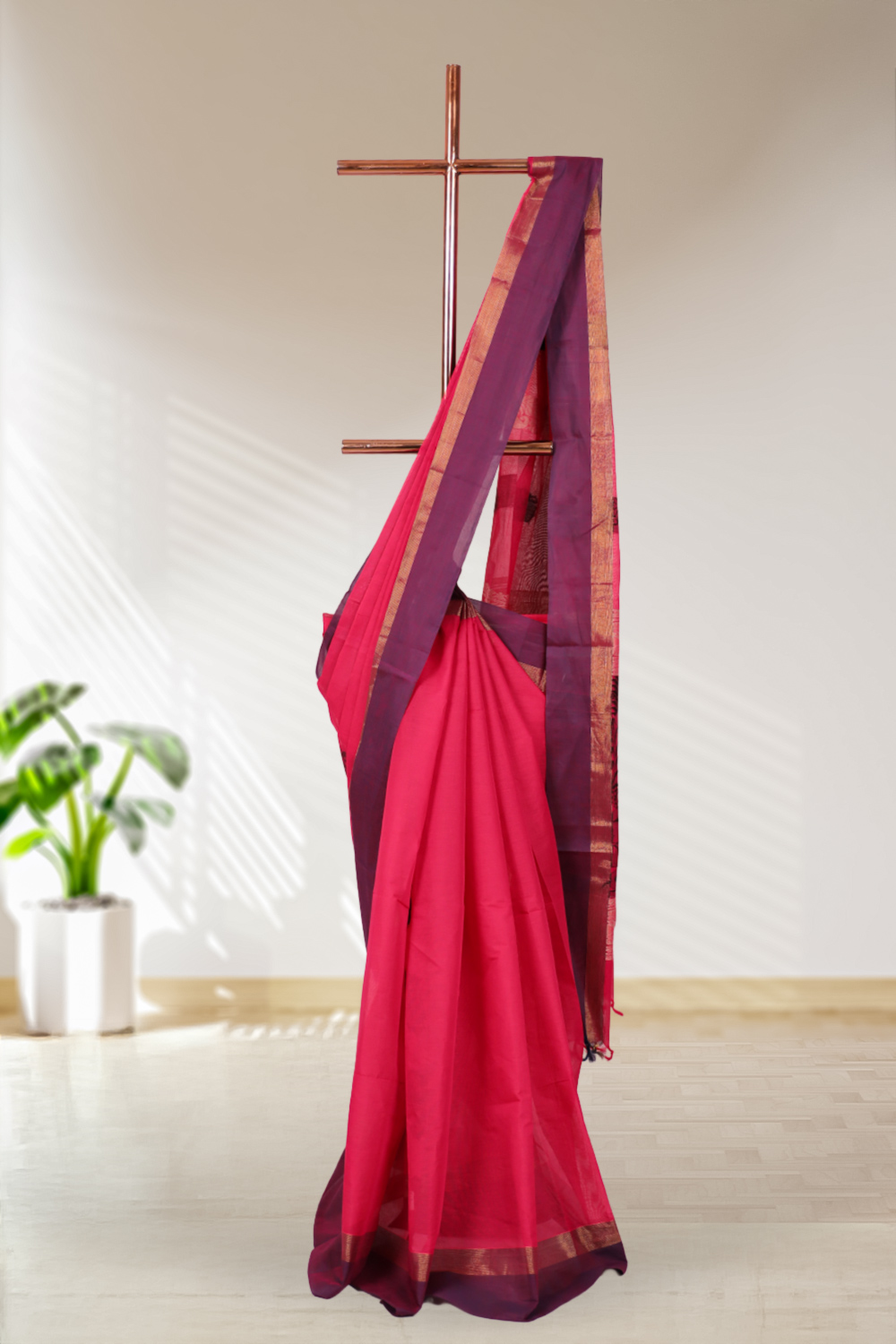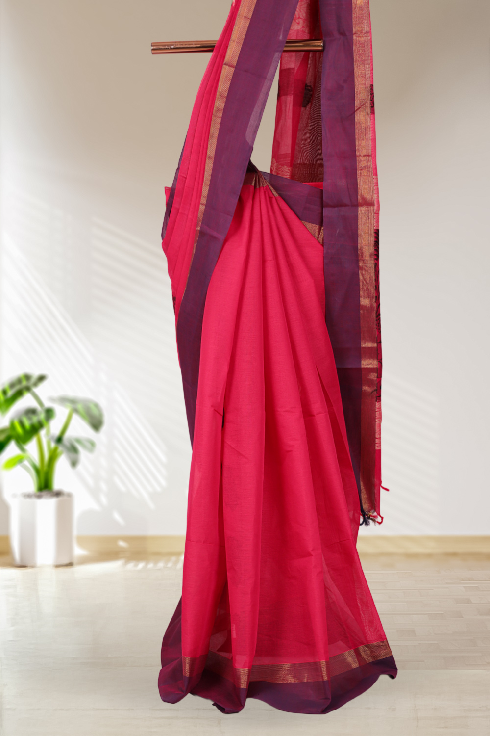 Dark Pink Village Cotton Saree