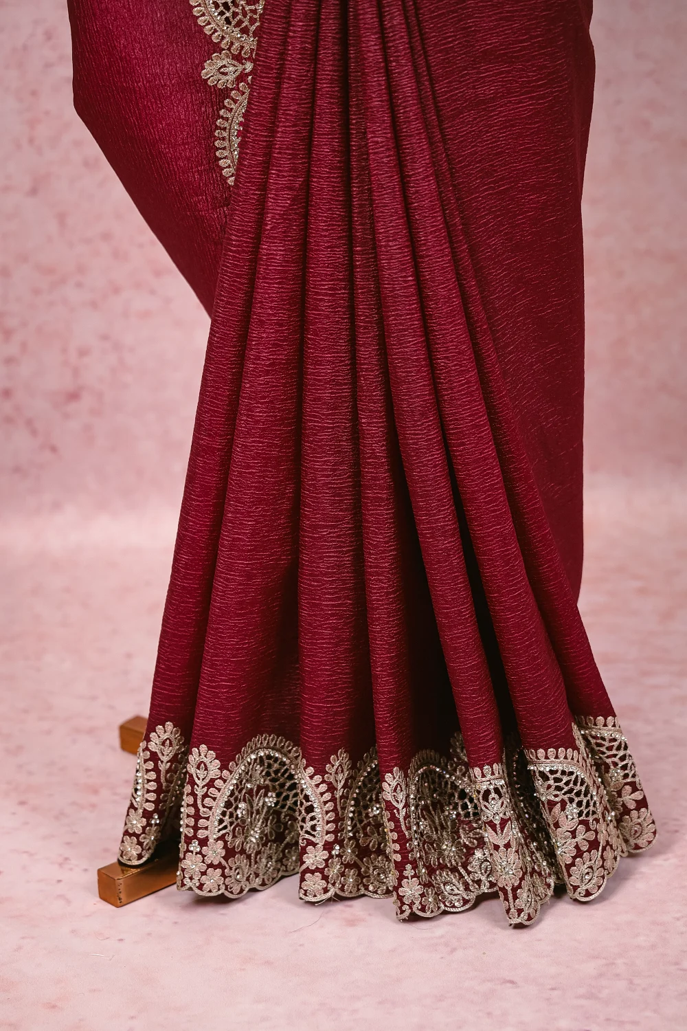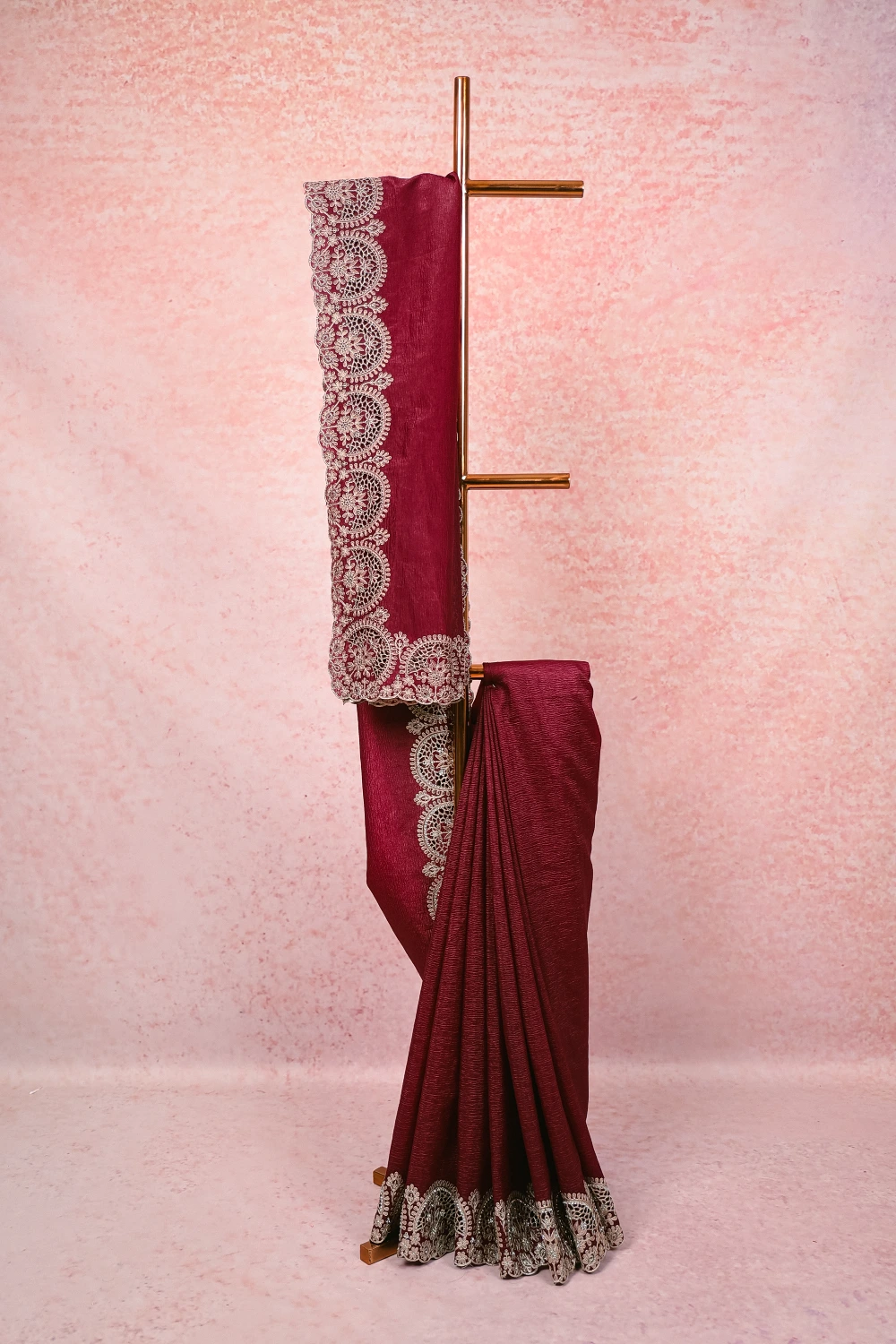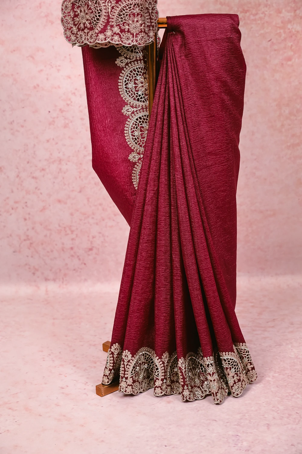 Dark Purple Crush Organza Plain Body Saree with Scalp border. Includes Unstitched Blouse