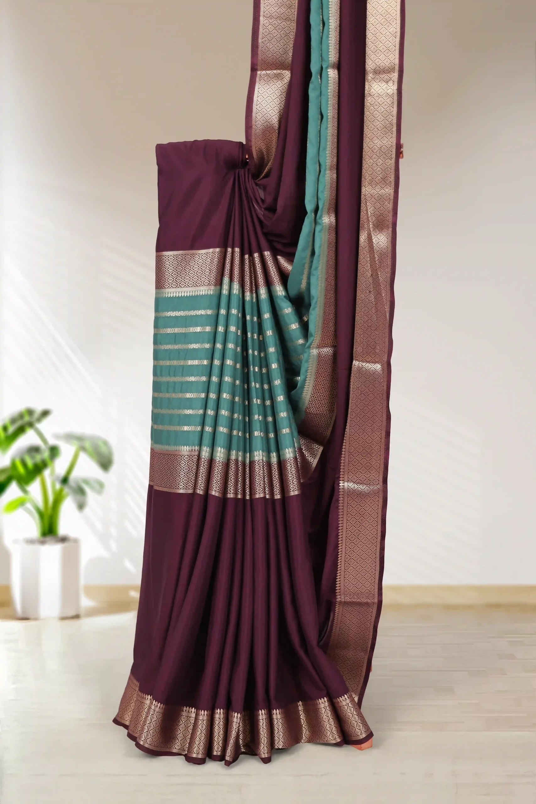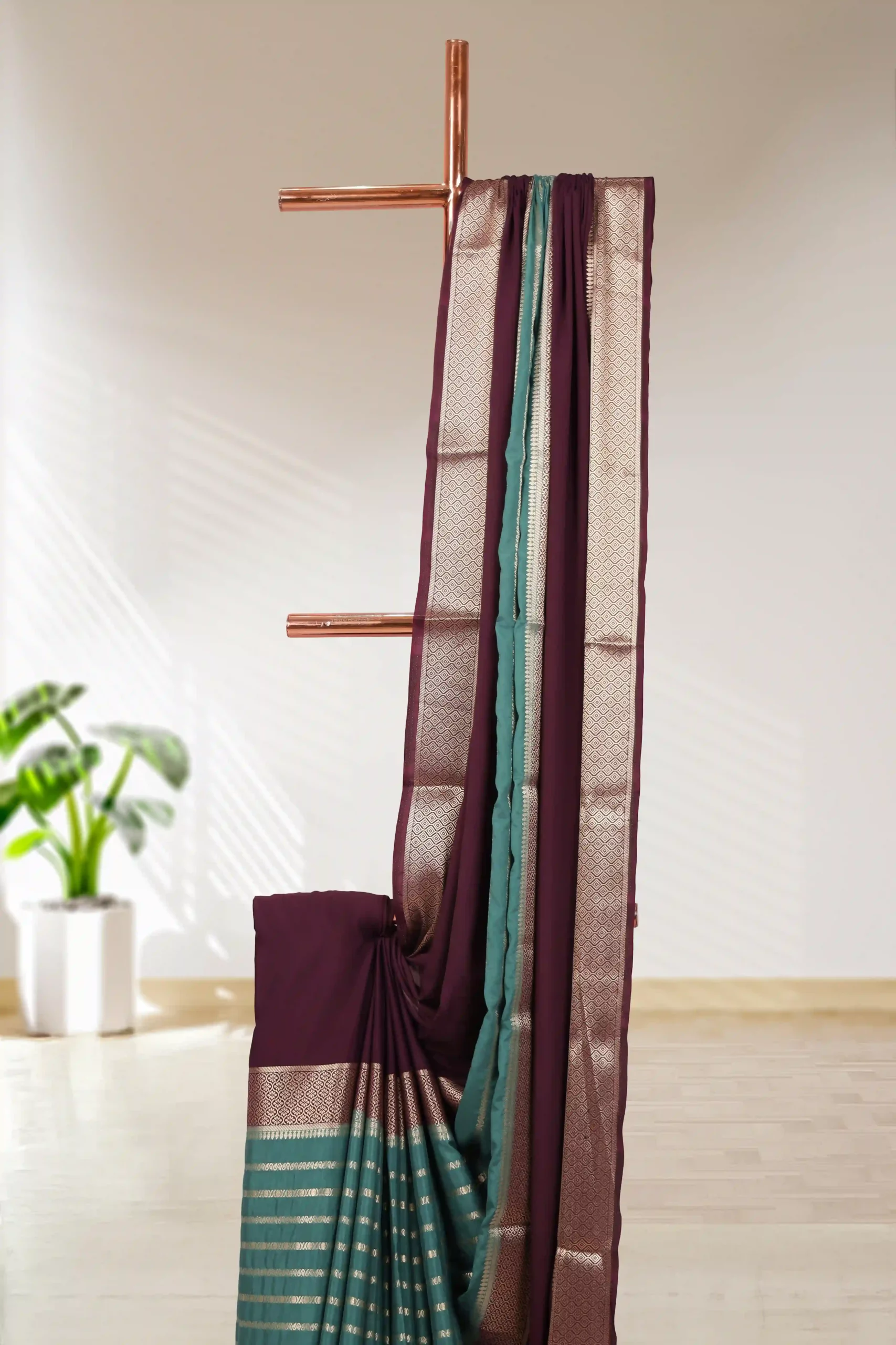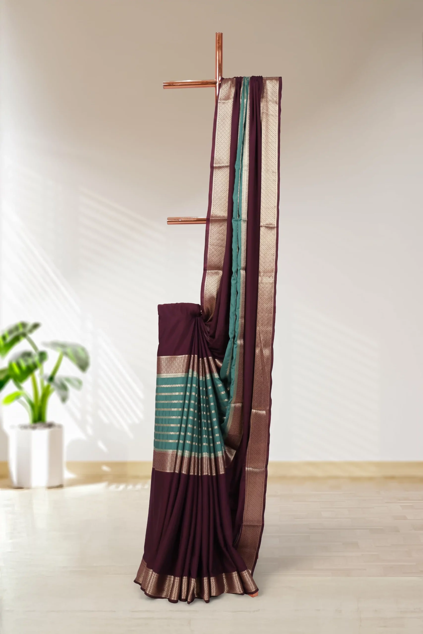 Dark Purple Georgette Lines Saree with Designer border. Includes Unstitched Blouse