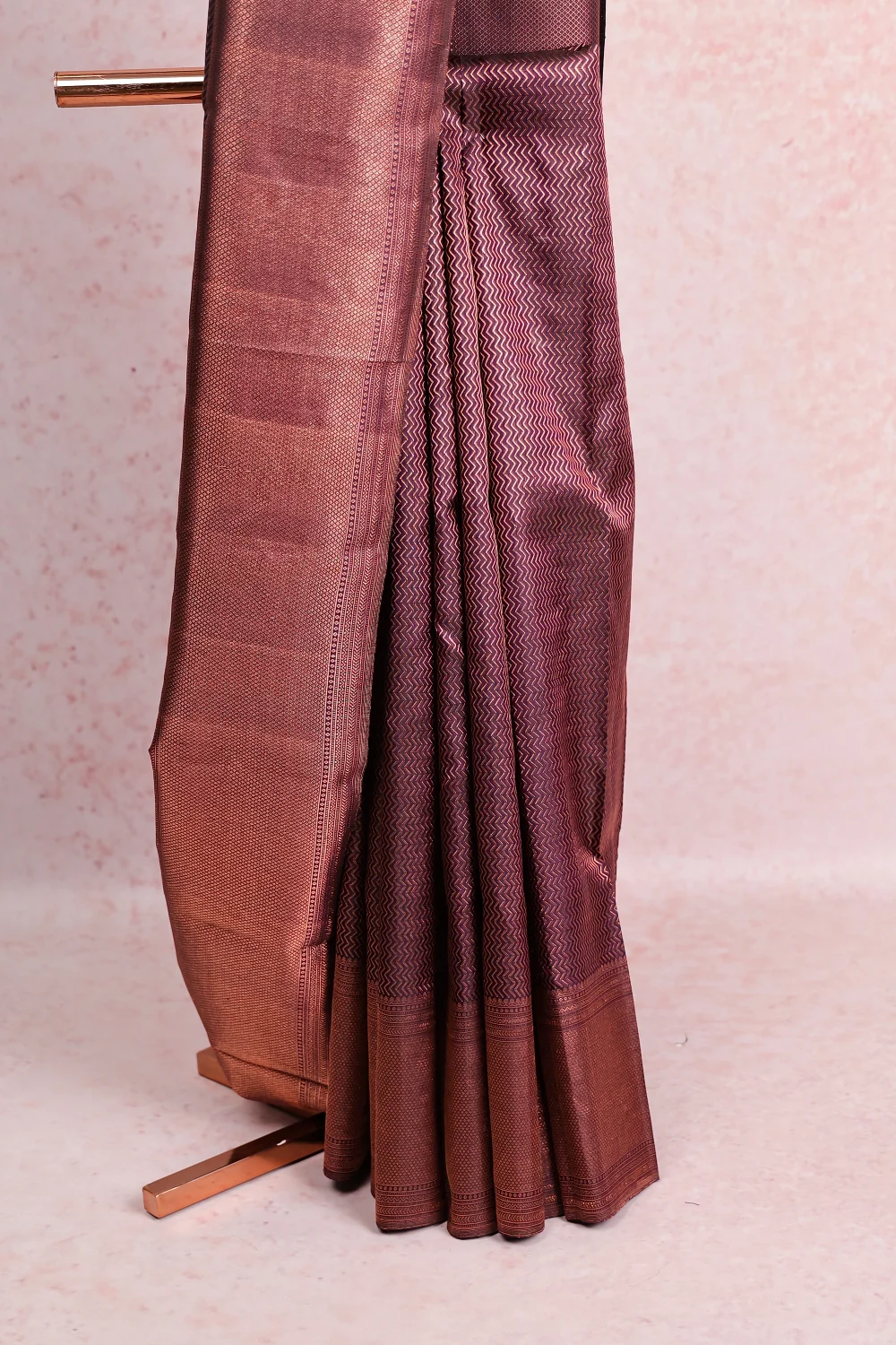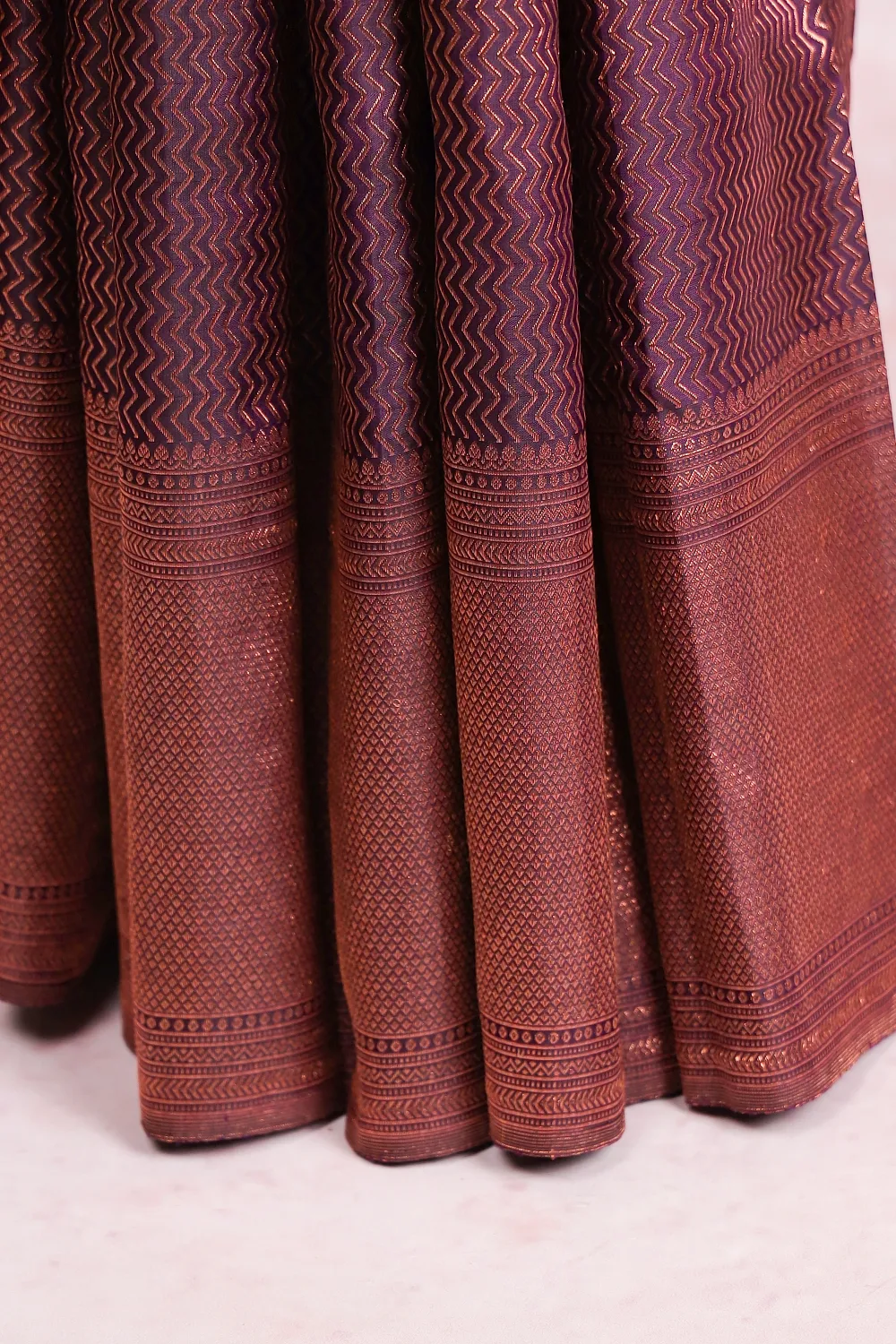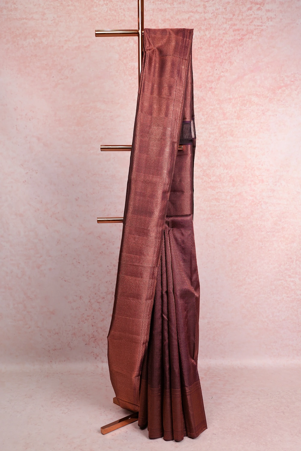 Dark Purple Kancheepuram Silk Brocade Saree With Designer Border. Includes Un Stitched Blouse