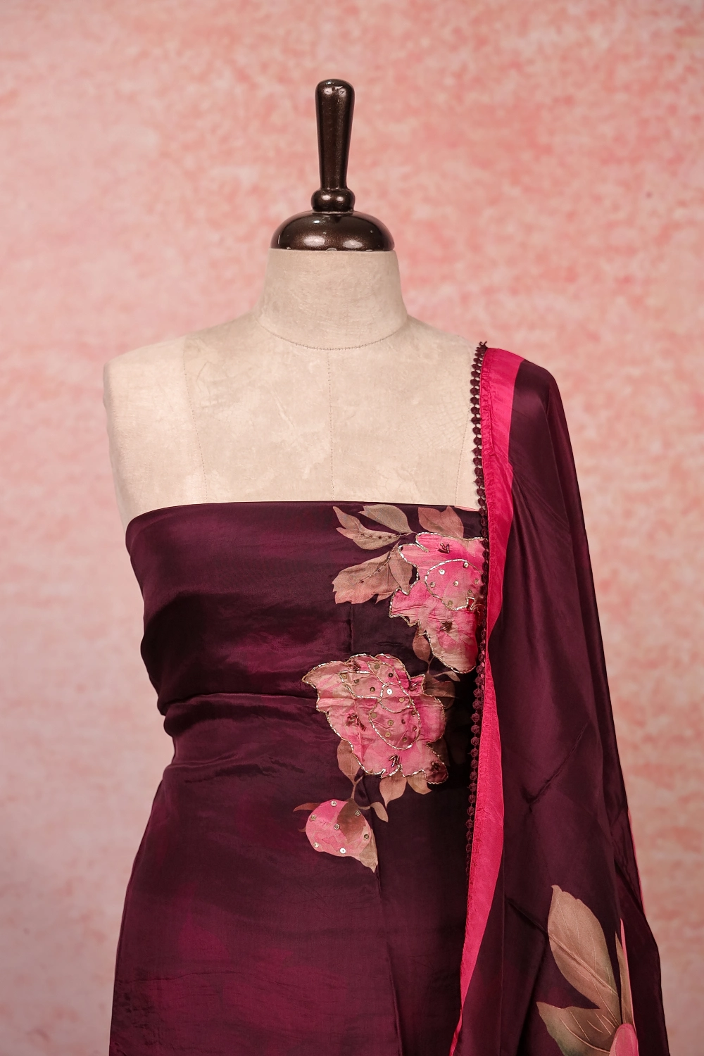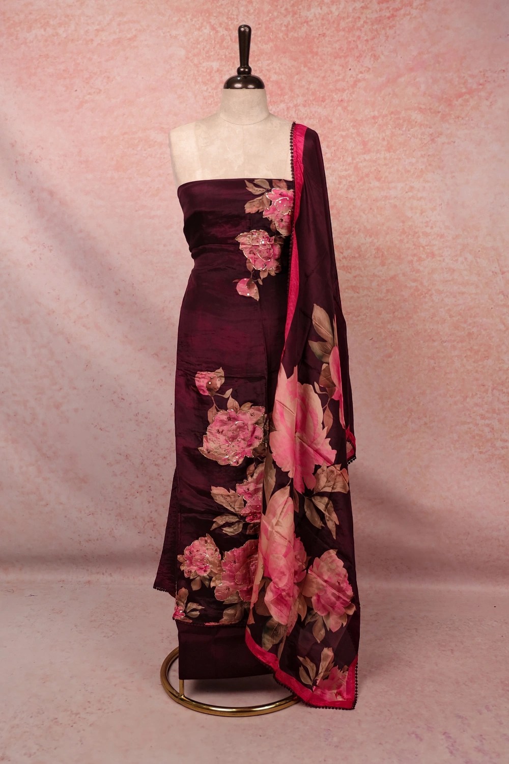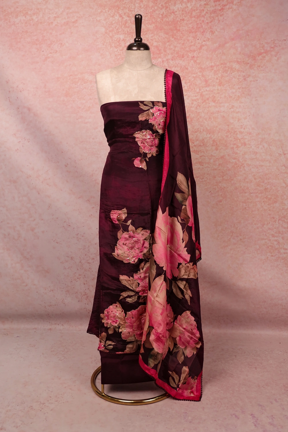 Dark Purple Mascline Printed Unstitched Churidar Material. Includes Dupatta.