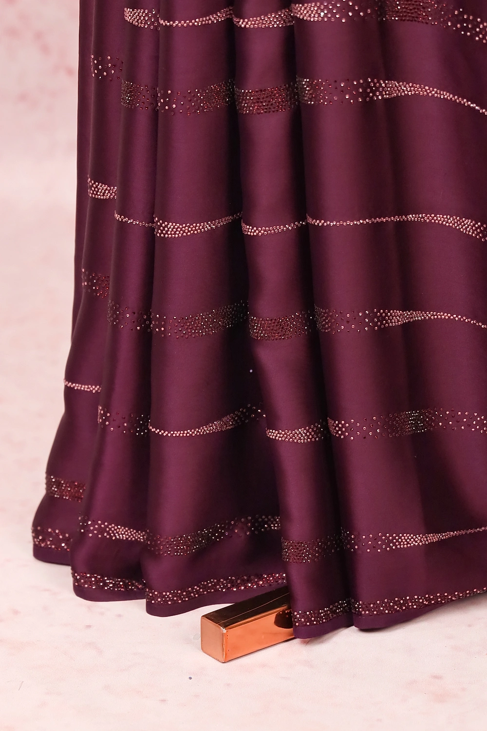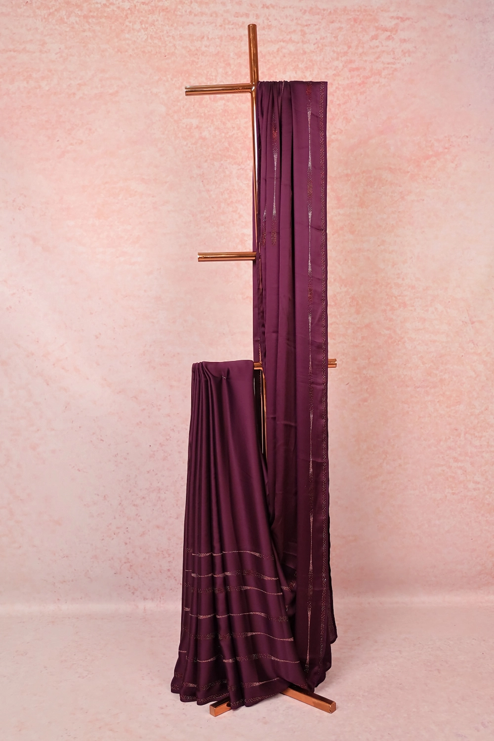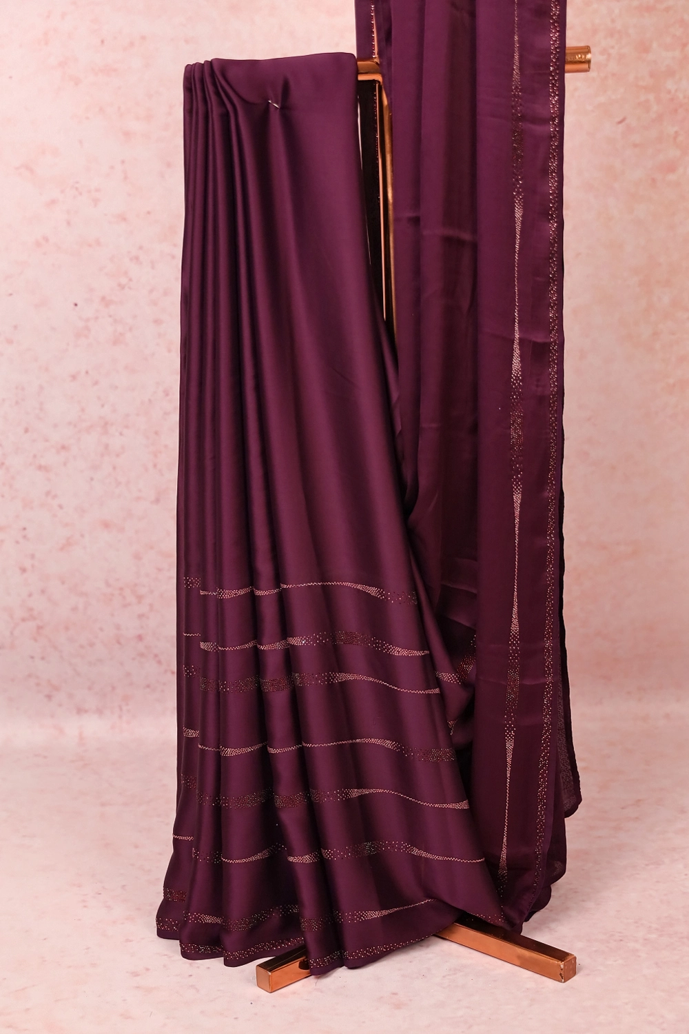 Dark Purple Satin Crape Saree with Unstiched Blouse Piece