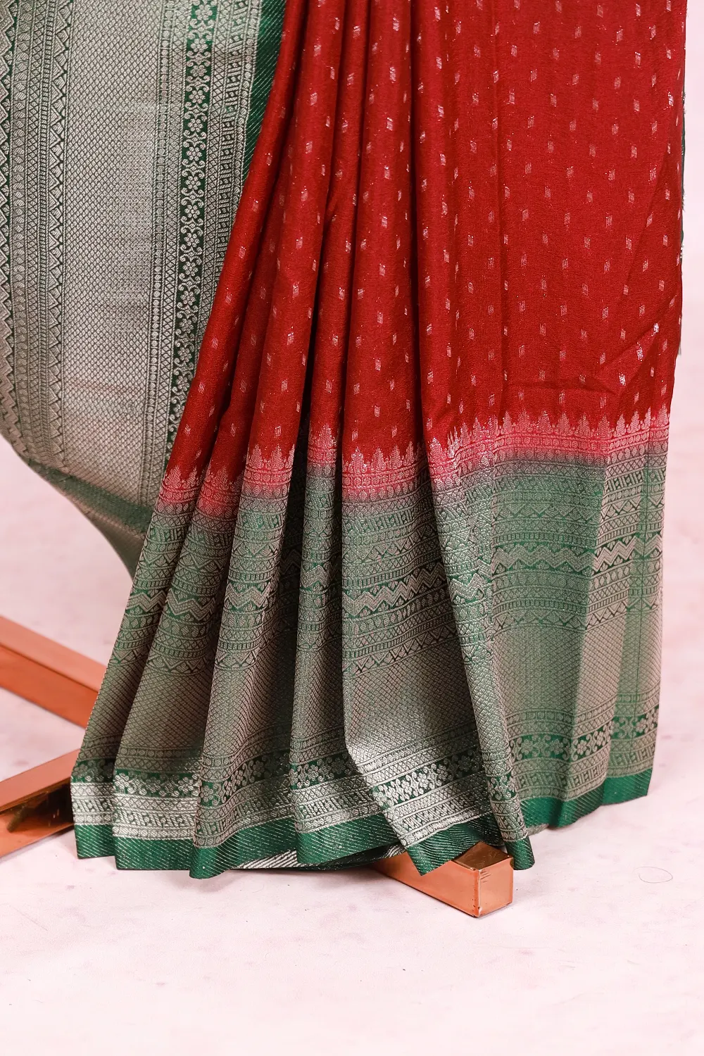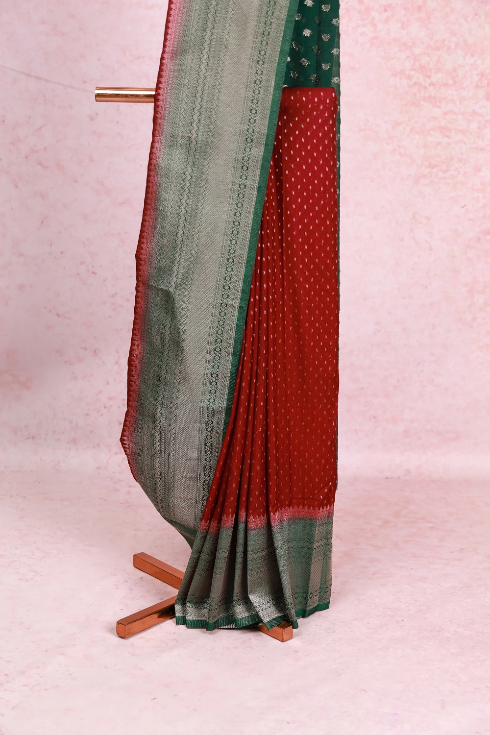Dark Wine Banarasi Georgette Small Butta Saree With Banarasi Border. Includes Un Stitched Blouse