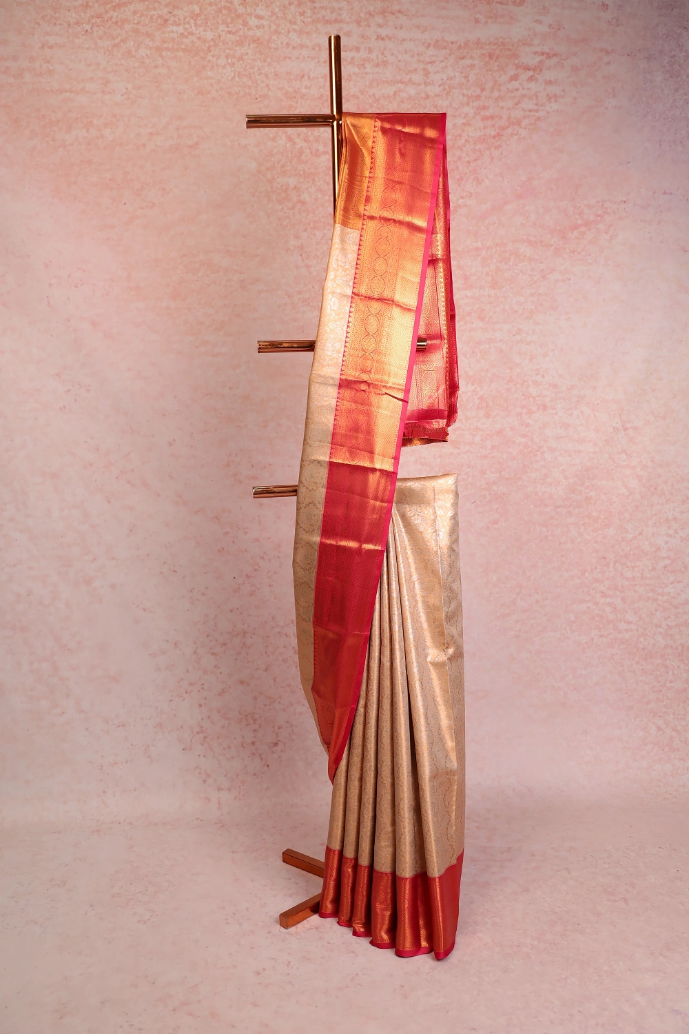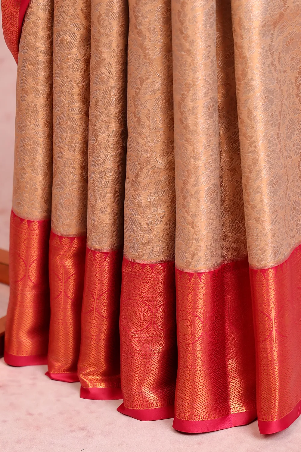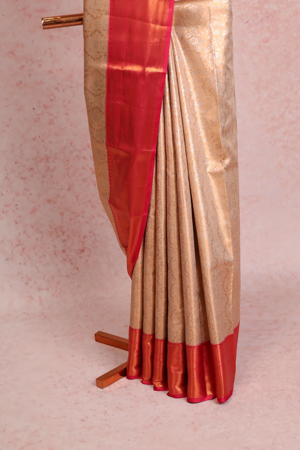 Gold Kancheepuram Tissue Silk Brocade Saree with Designer Border. Includes Unstitched Blouse