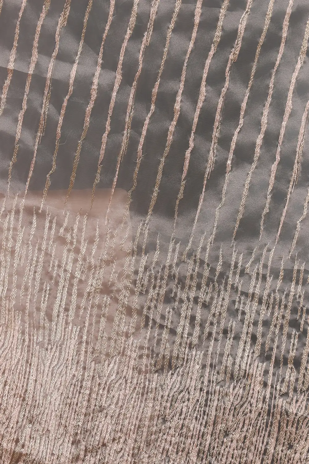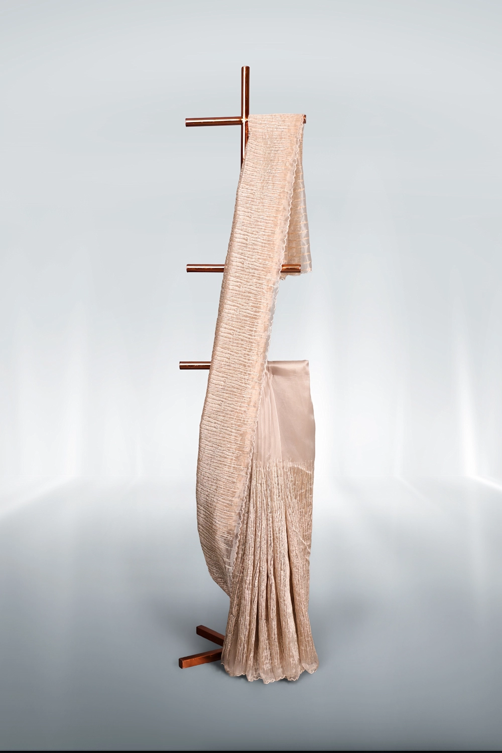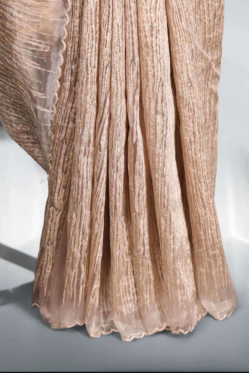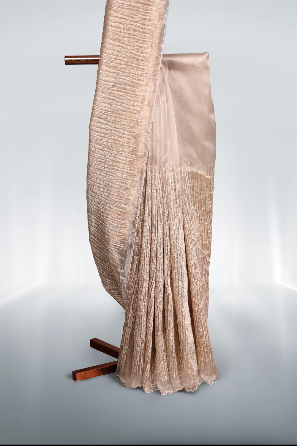 Gold Organza Thread And Sequines Saree With Scallop Border. Includes Un Stitched Blouse