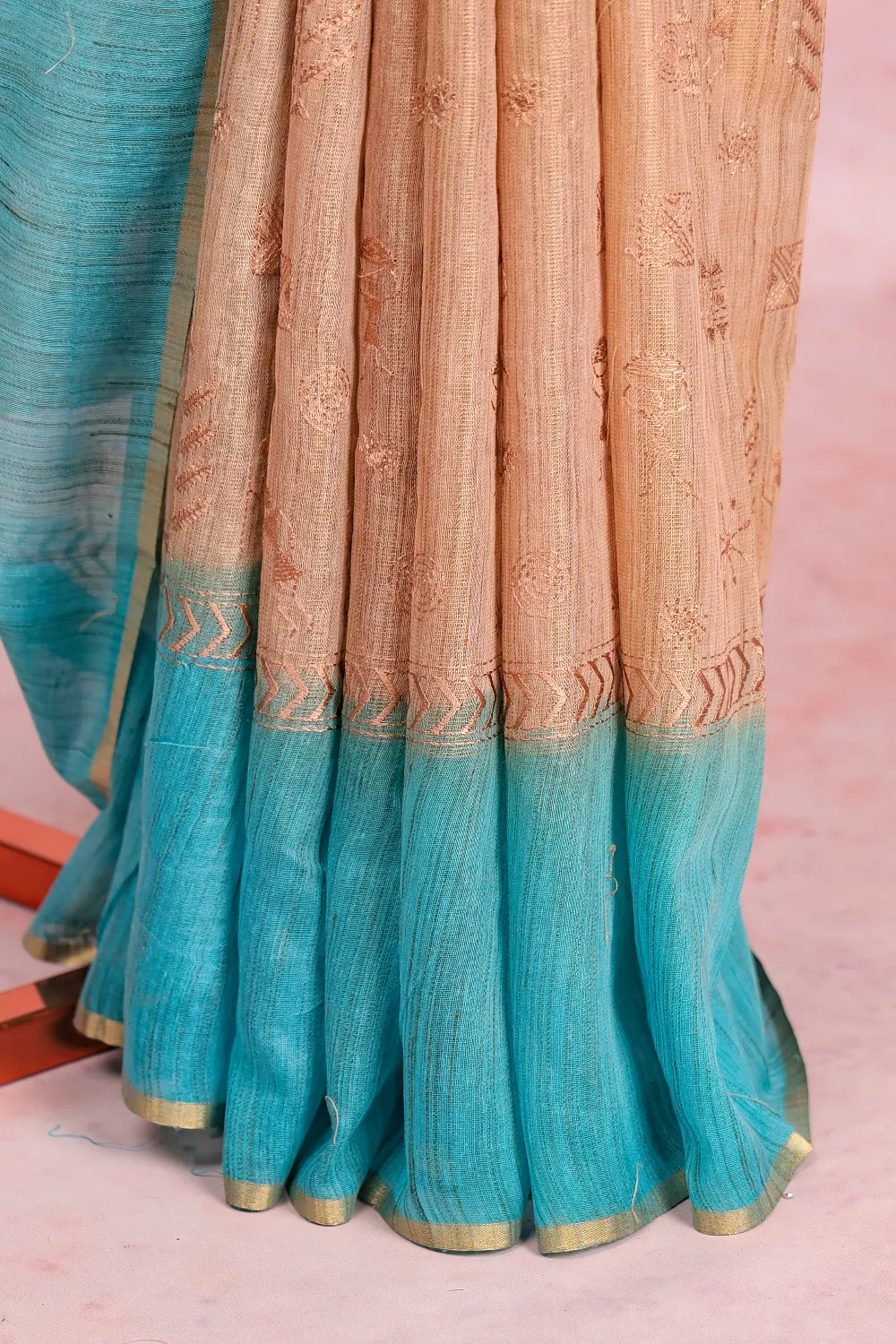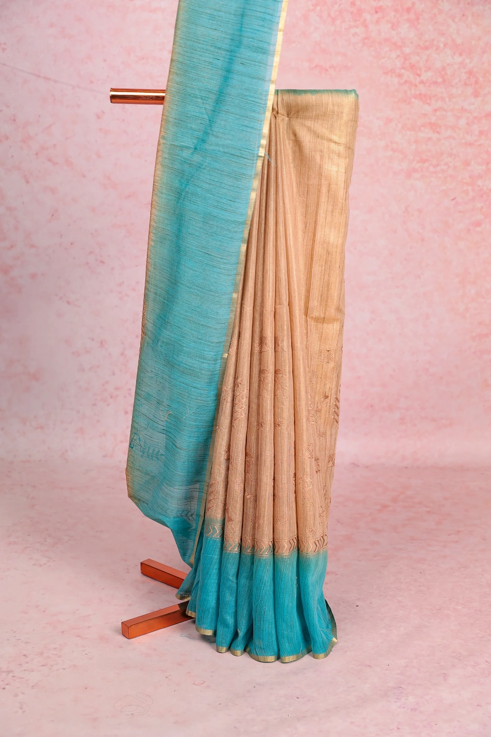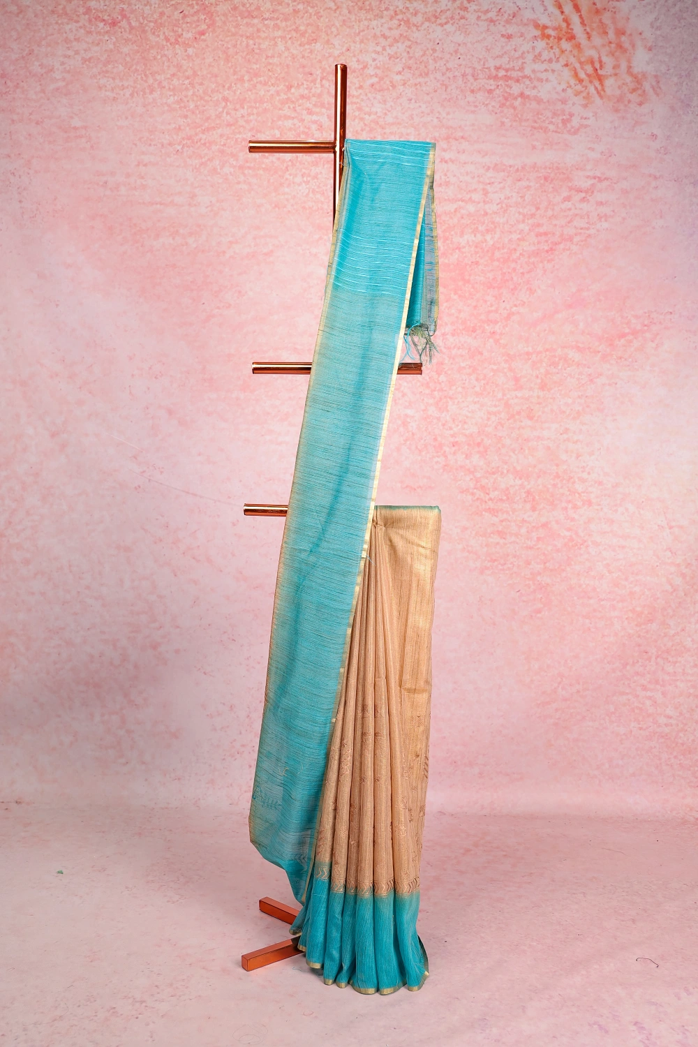 Gold Semi Jute Thread Design Saree with Small Border. Includes Unstitched Blouse