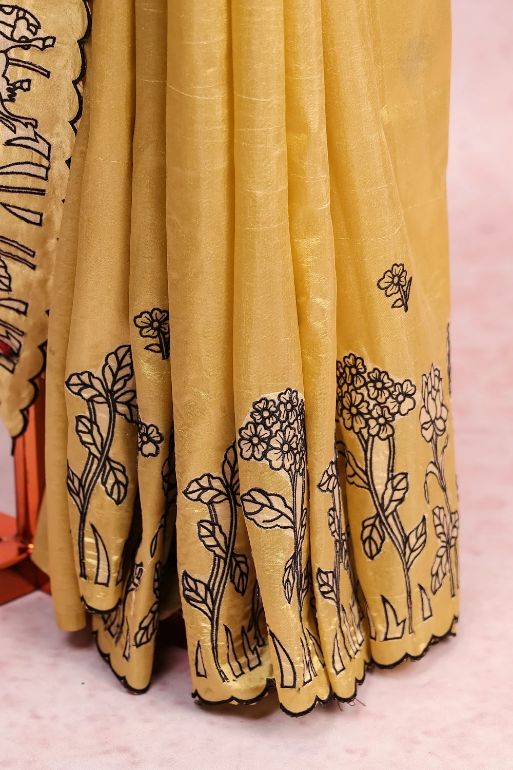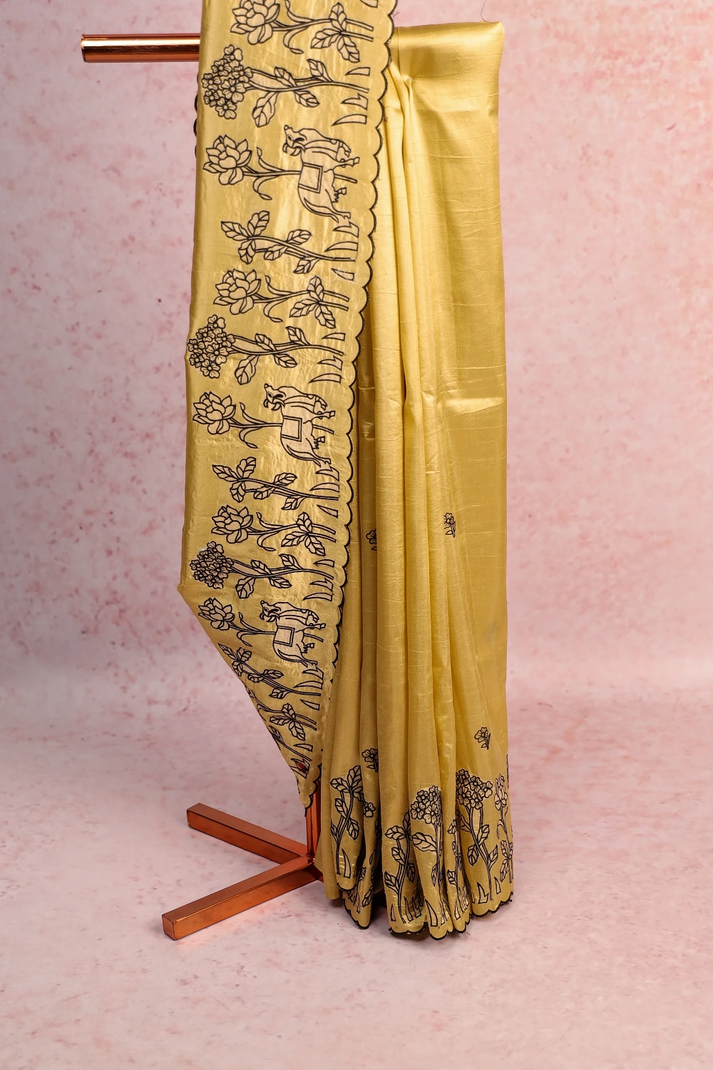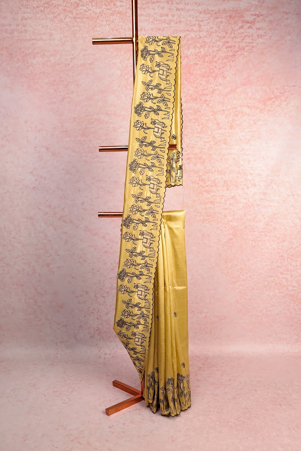Gold Semi Silk Butta Saree with Lays Border. Includes Un stitched Blouse
