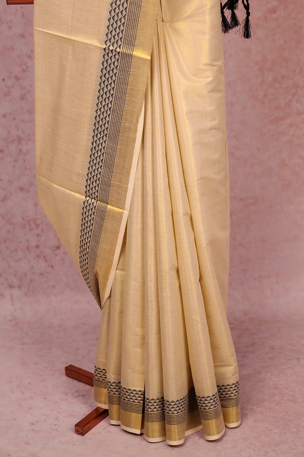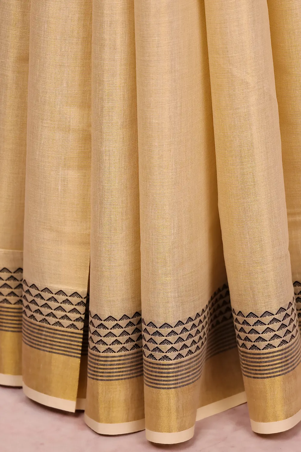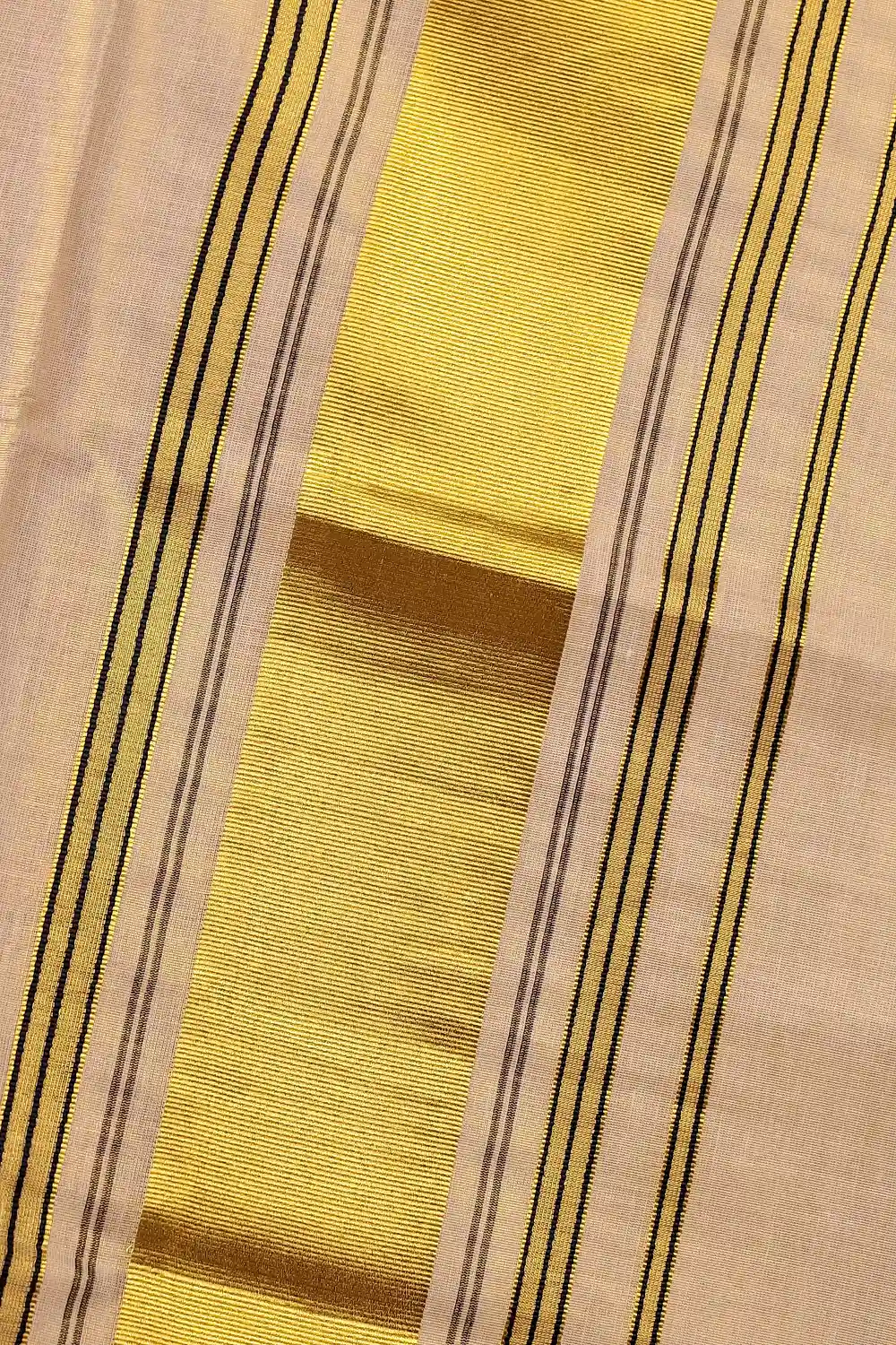 Gold Semi Tissue Kerala Plain Body Saree with Golden Border. Includes Unstitched Blouse.