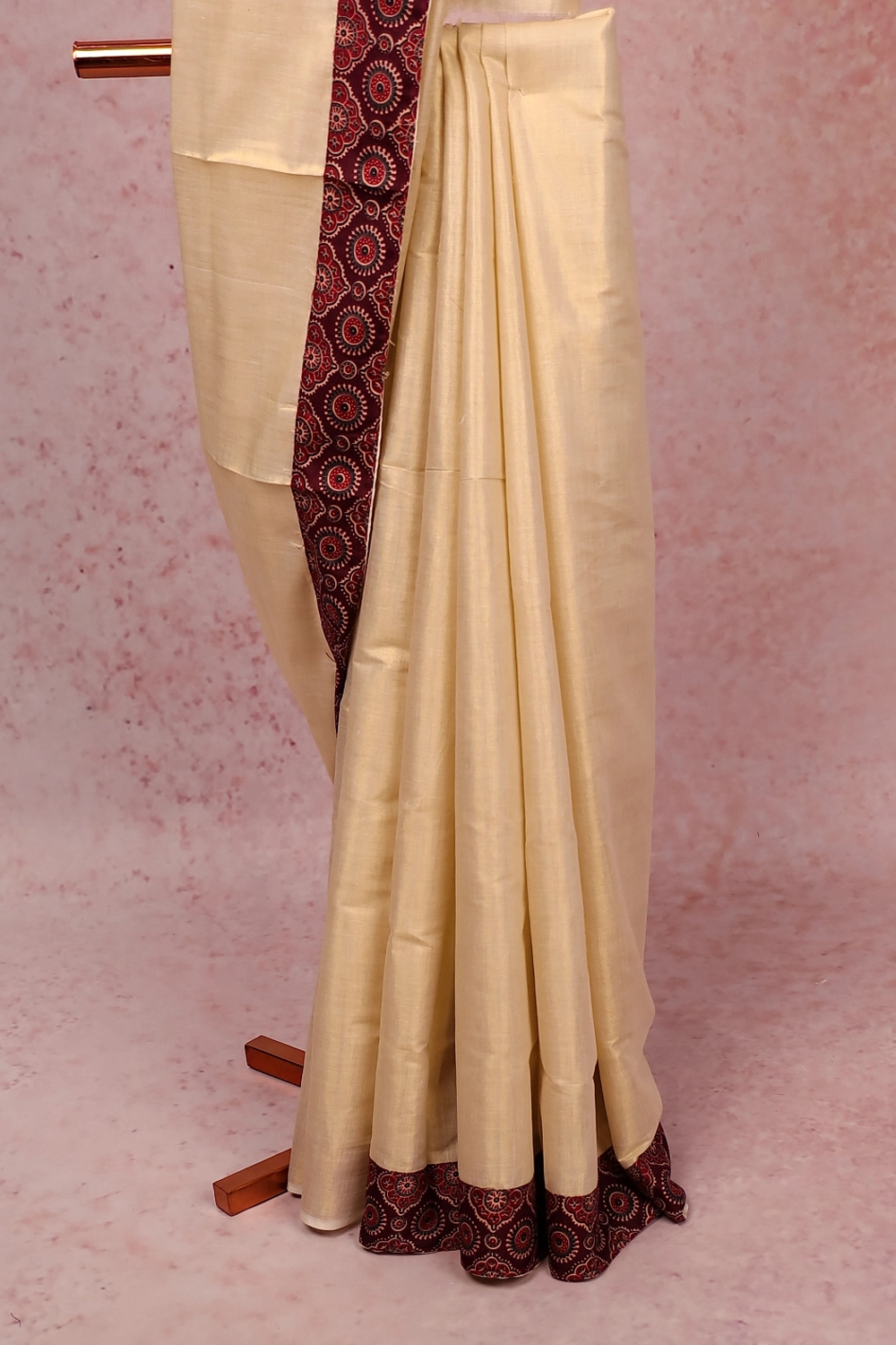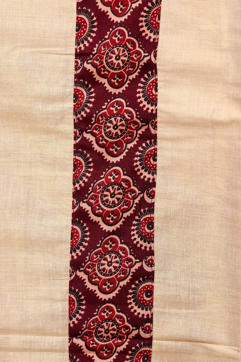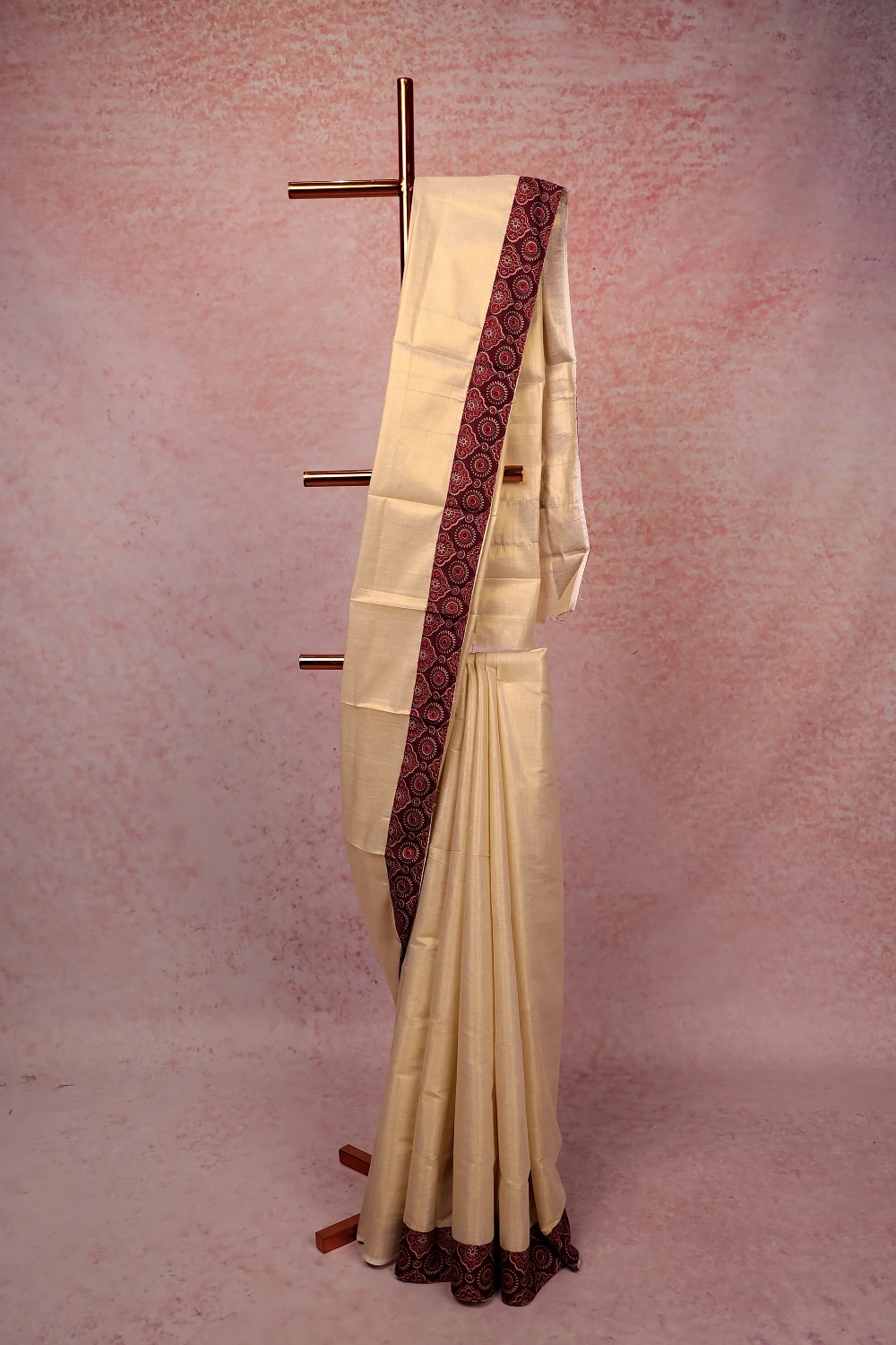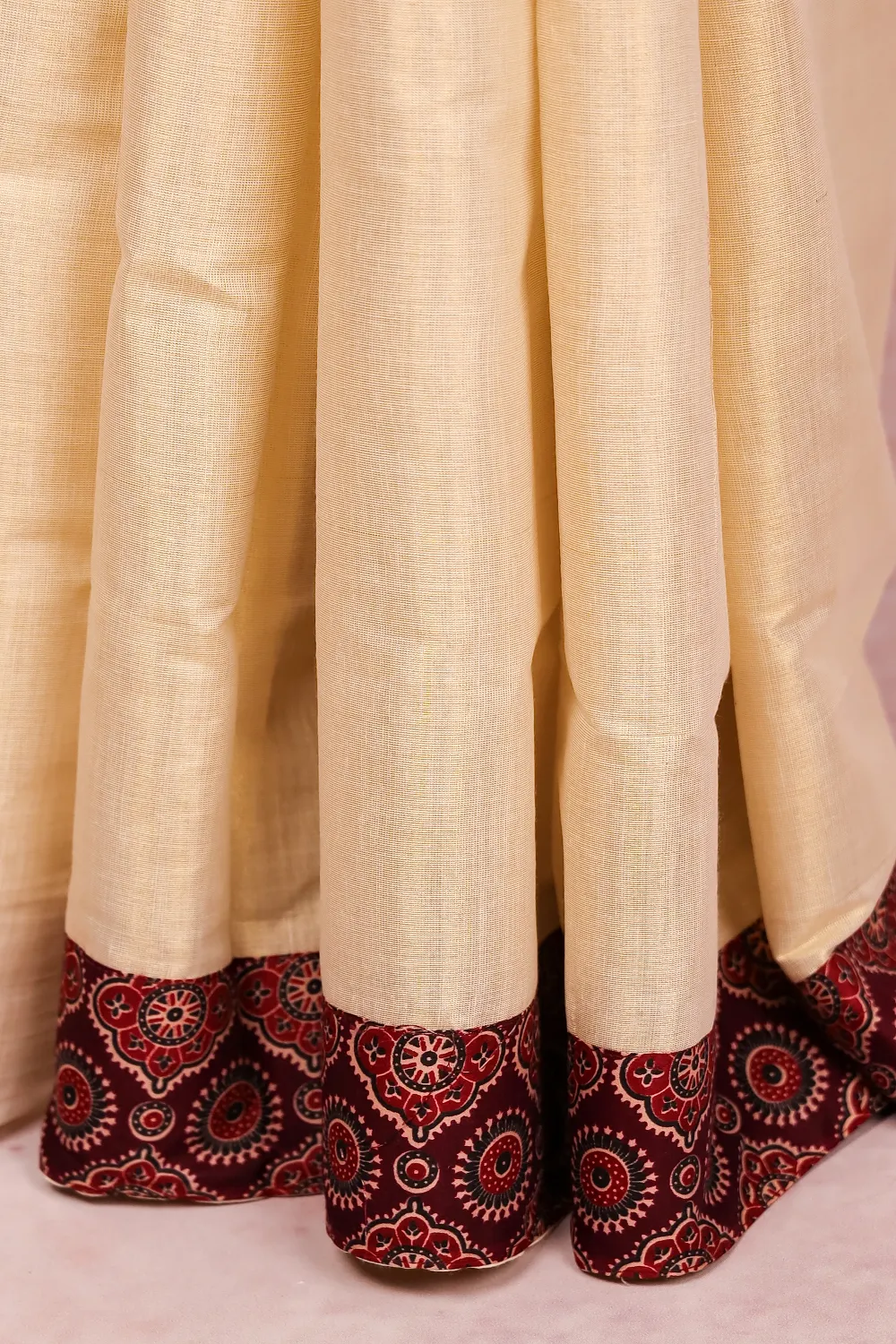 Gold Semi Tissue Kerala Plain Body Saree with Printed Border.