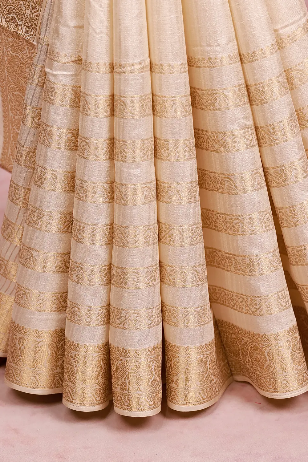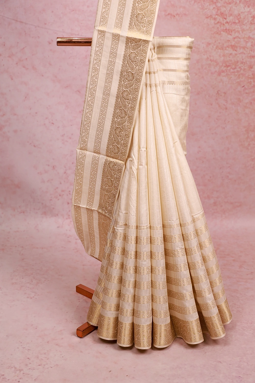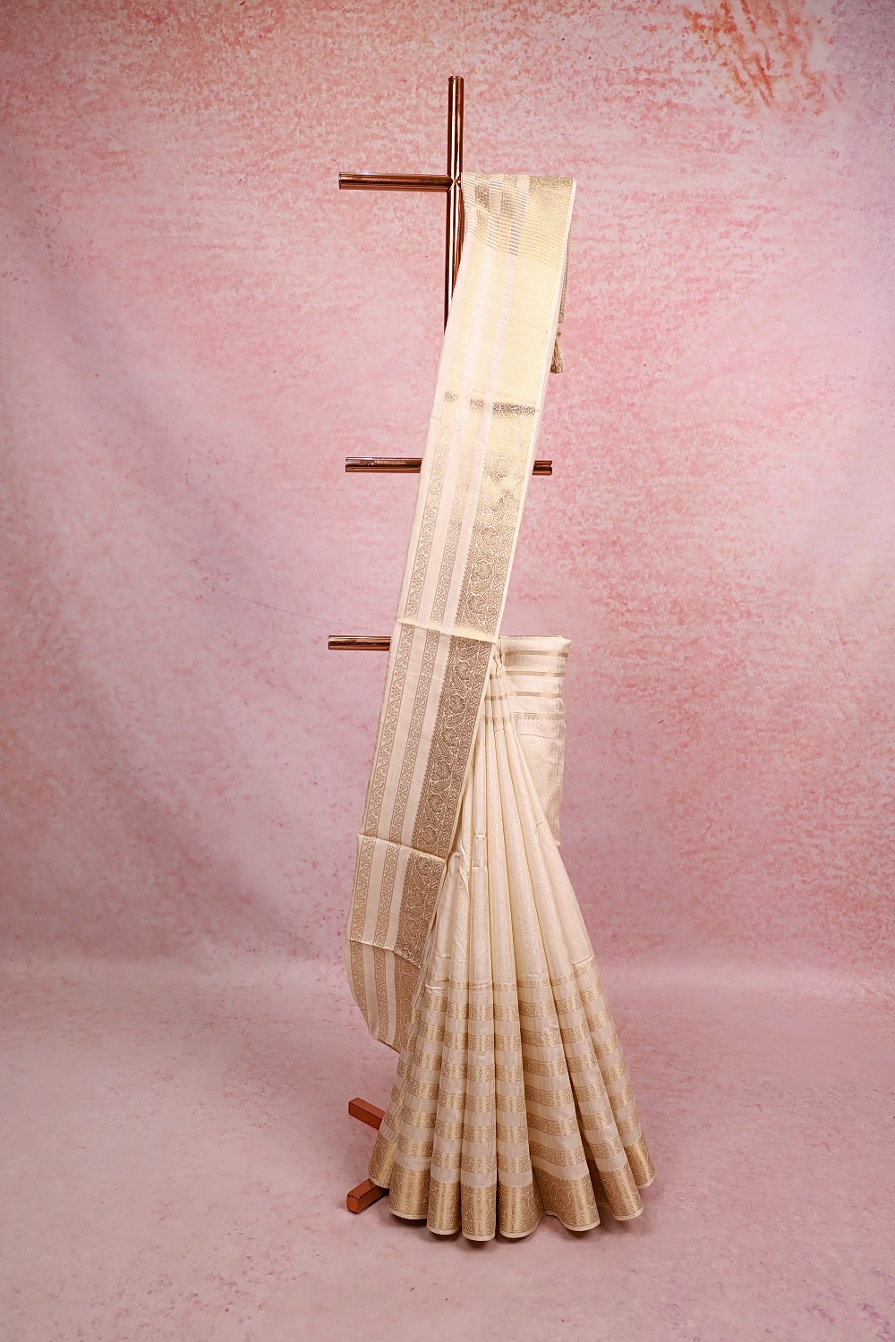 Gold Tissue Kerala Line Saree with Zari Border. Includes Unstitched Blouse