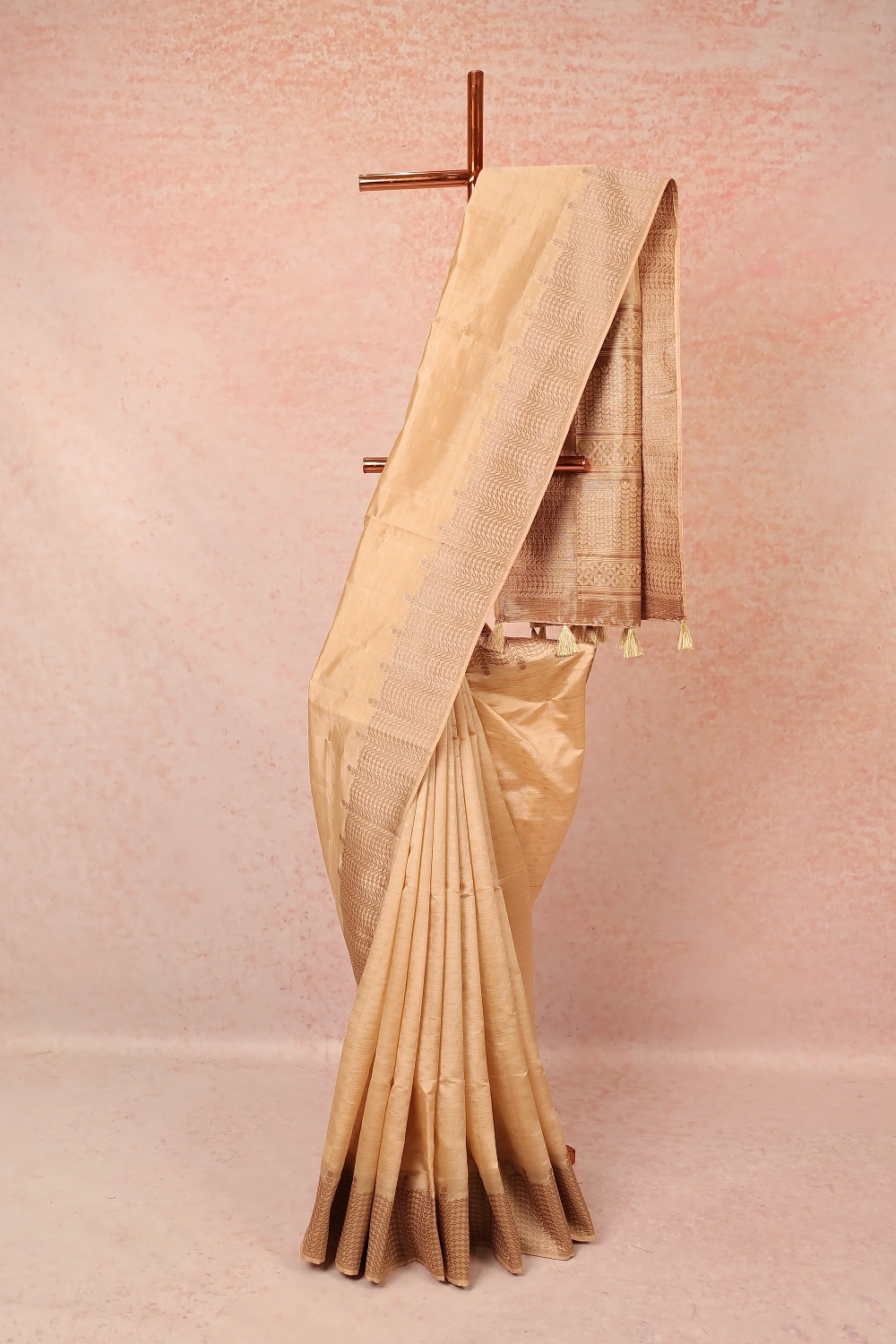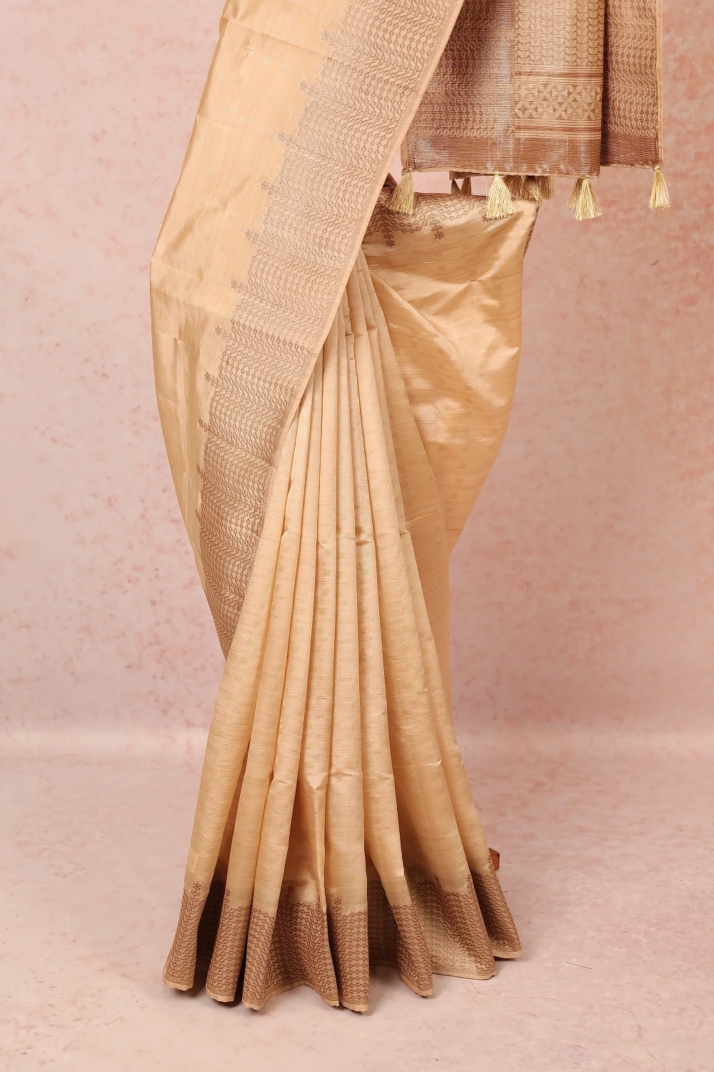Golden Cream Semi Silk Saree