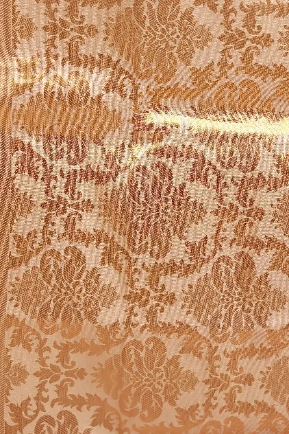 Golden Cream Tissue Kerala Zari Design Saree with Zari Border. Includes Unstitched Blouse