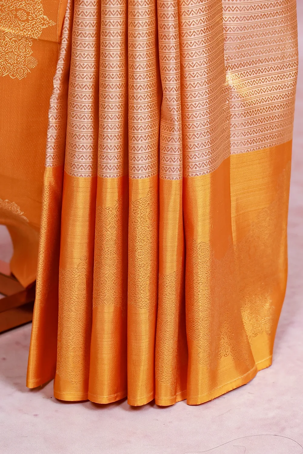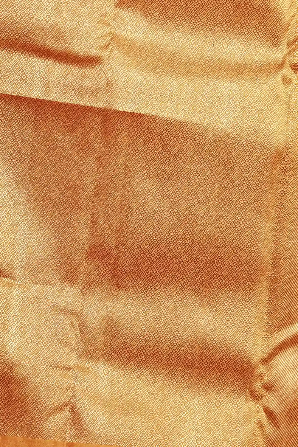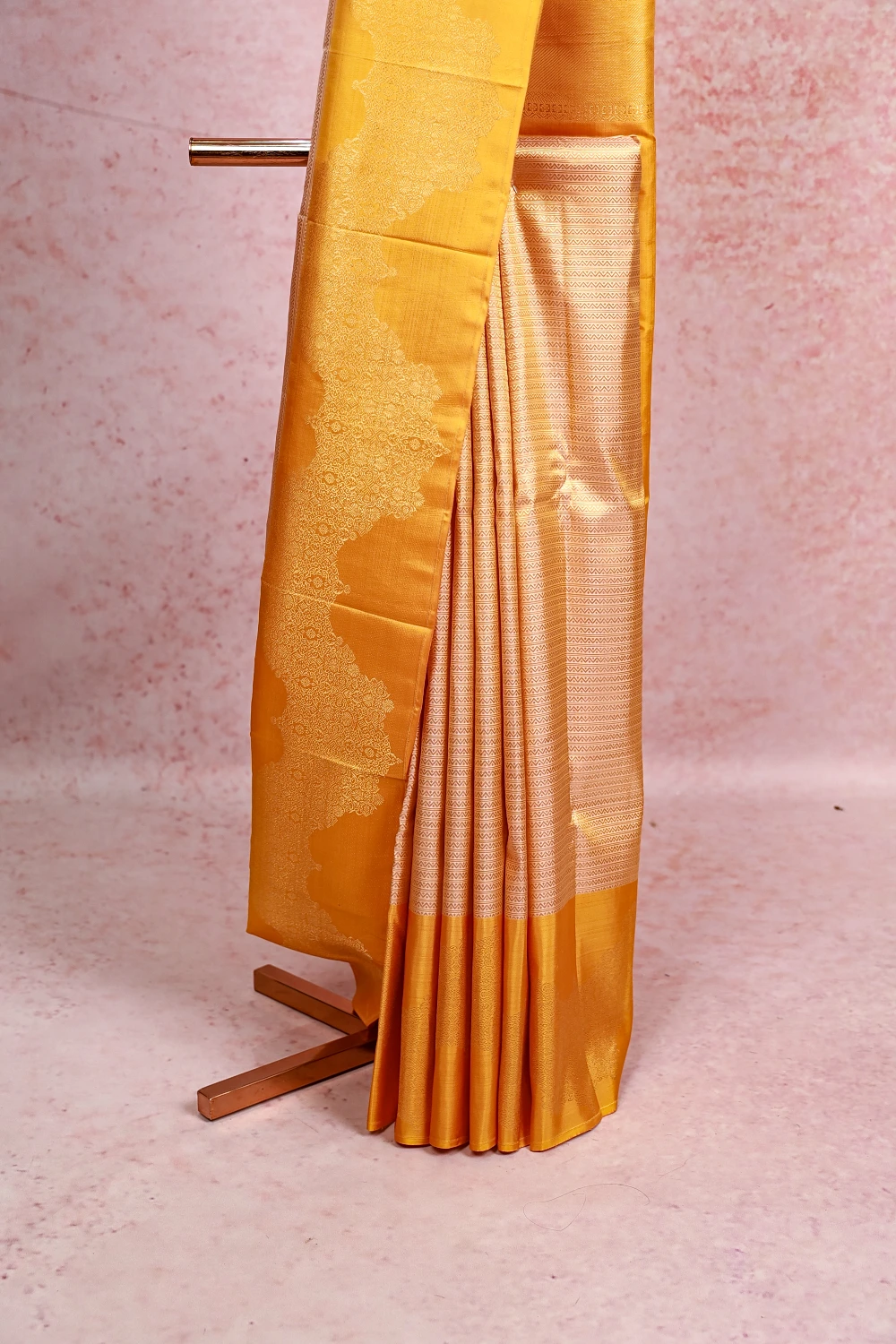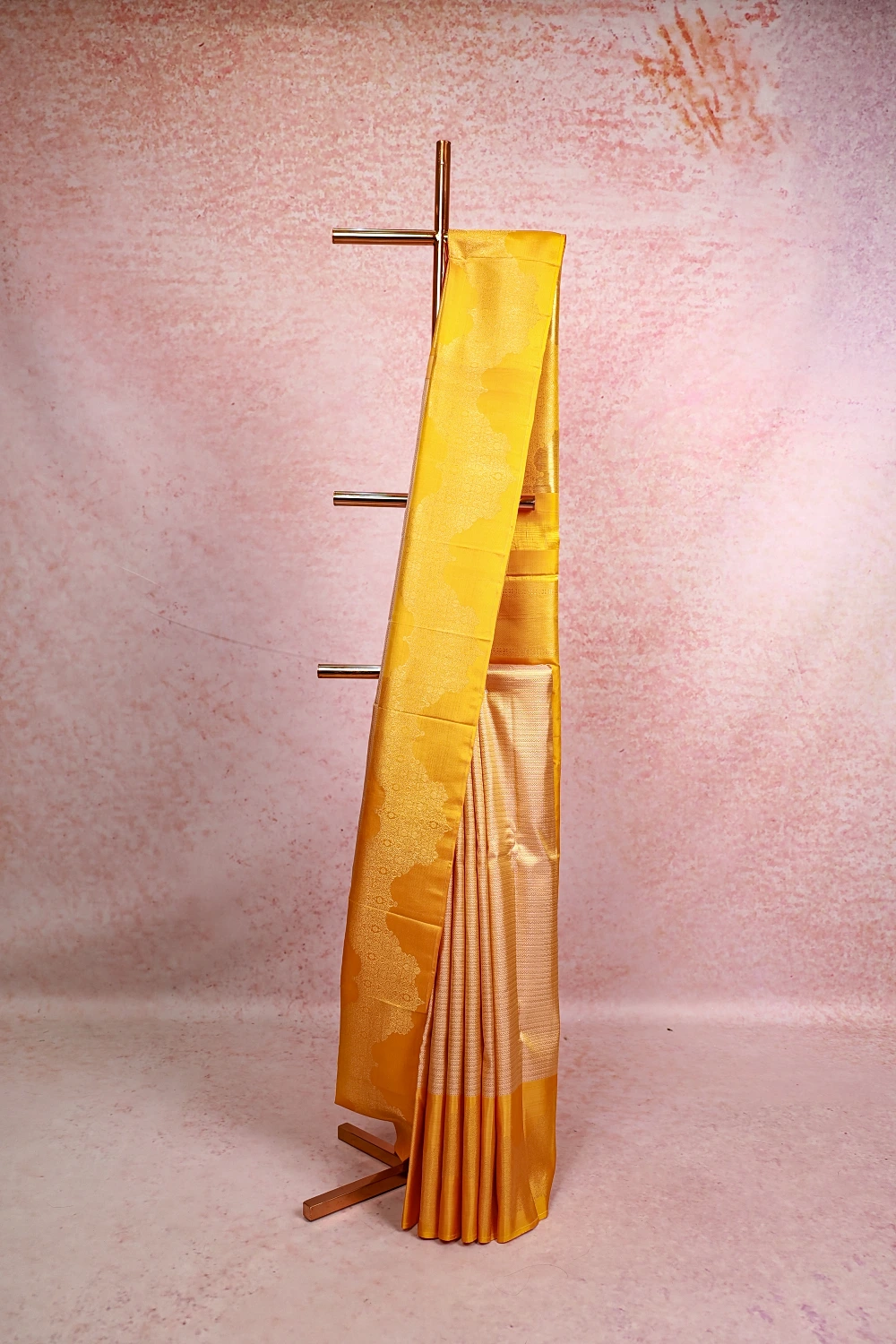 Golden Yellow Kancheepuram Silk Brocade Saree With Traditional Fancy Border. Includes Unstitched Blouse