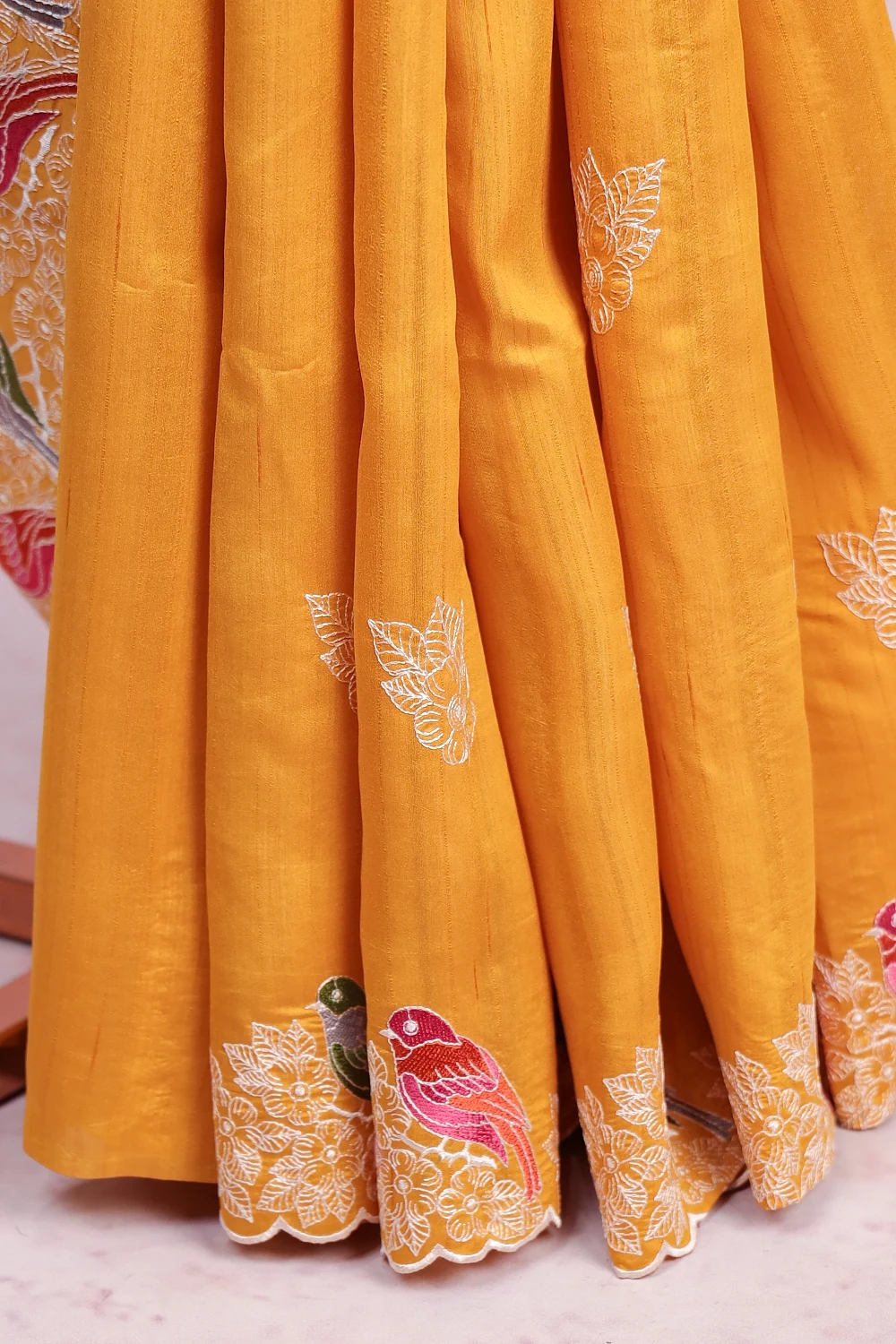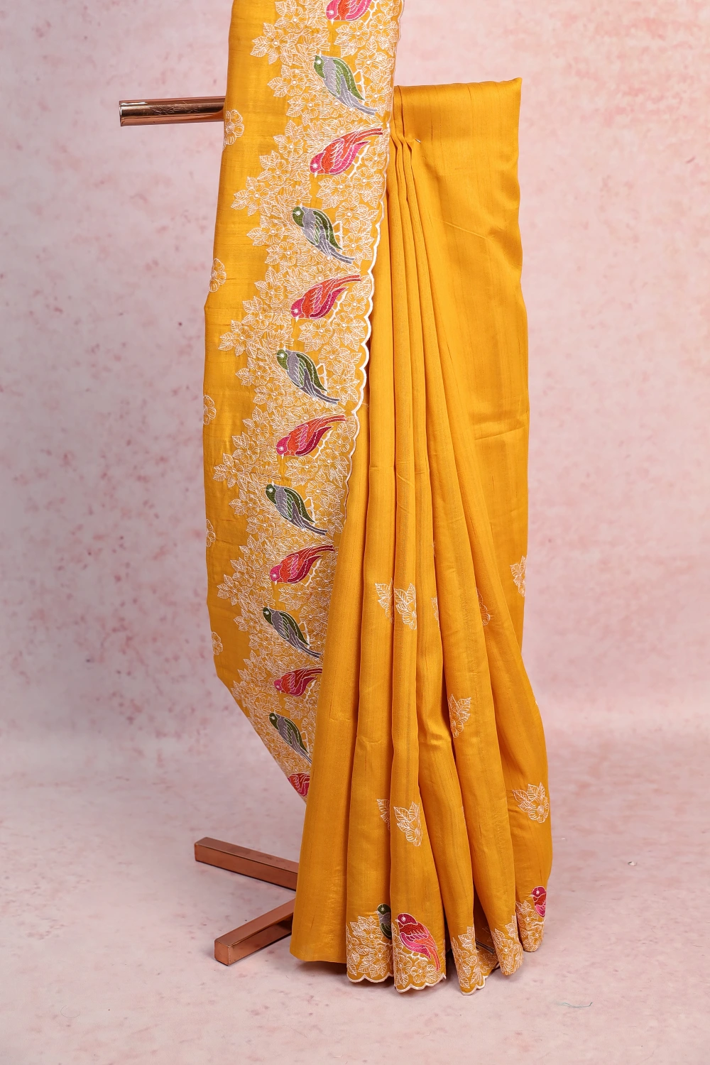 Golden Yellow Semi Tussar Embroidery Saree with Thead Border. Includes Un stitched Blouse