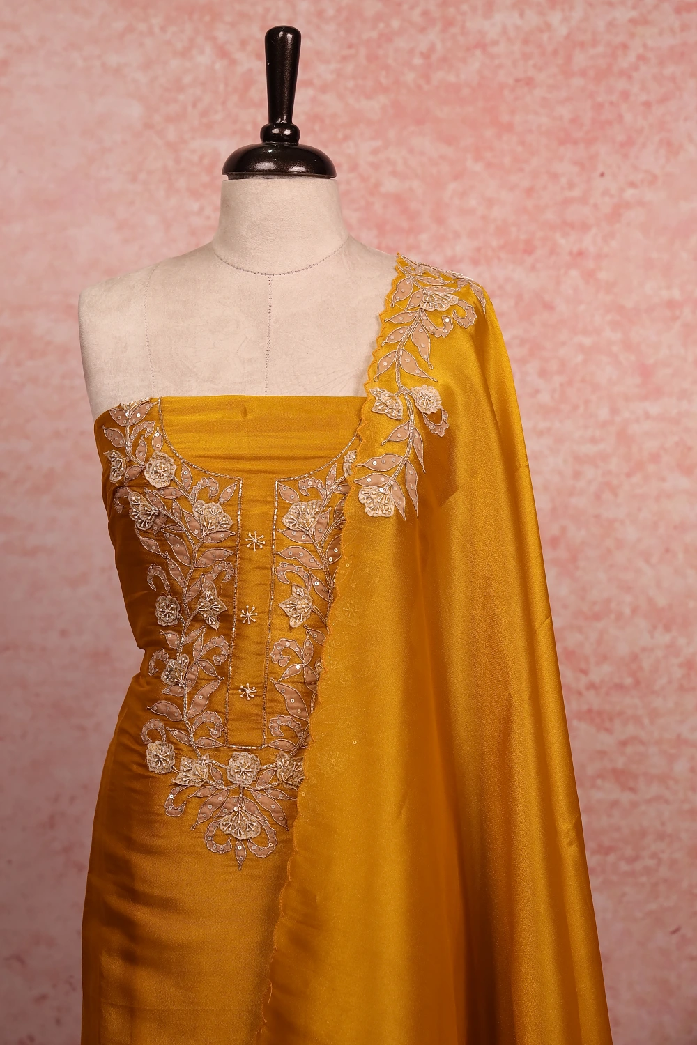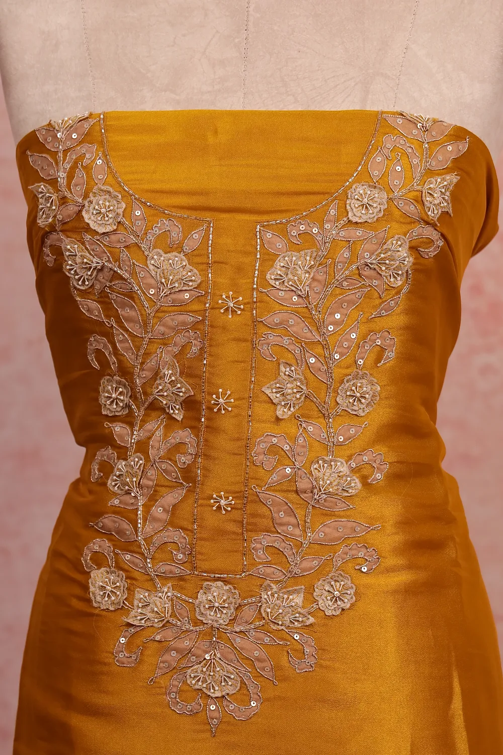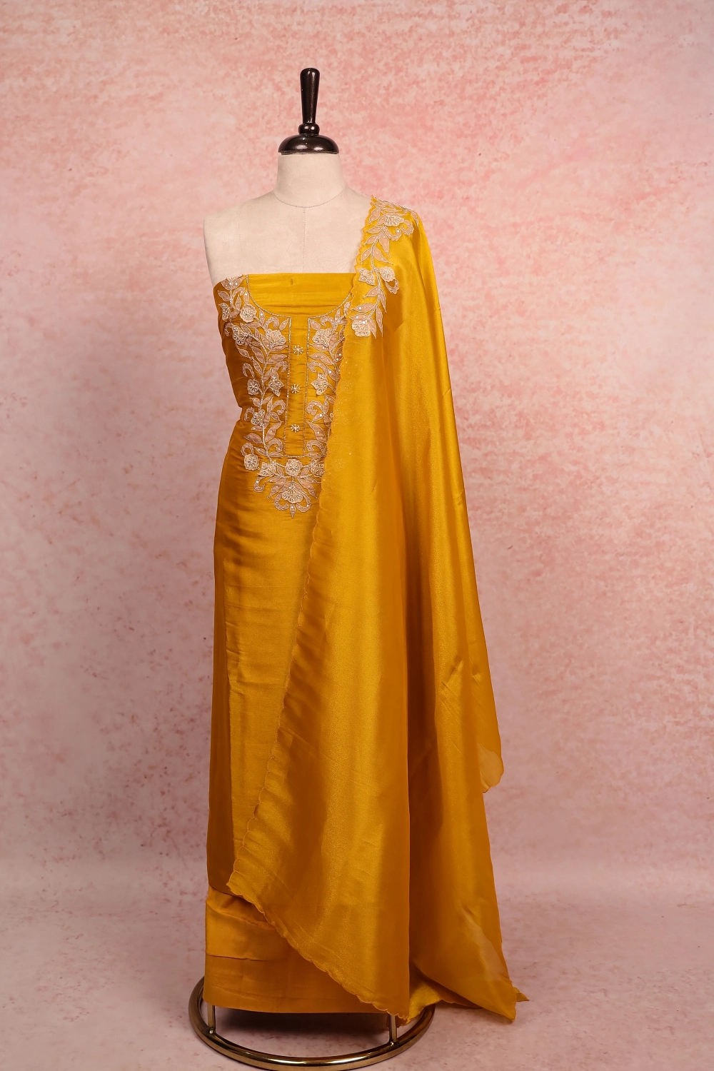 Golden Yellow Tissue Organza Plain Body Unstitched Churidar Material. Includes Dupatta.
