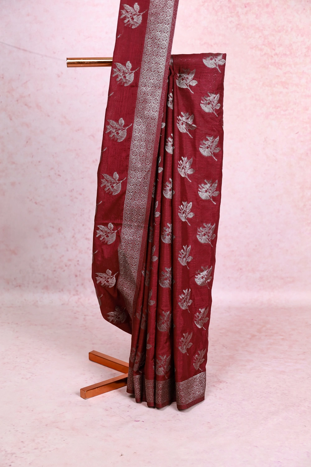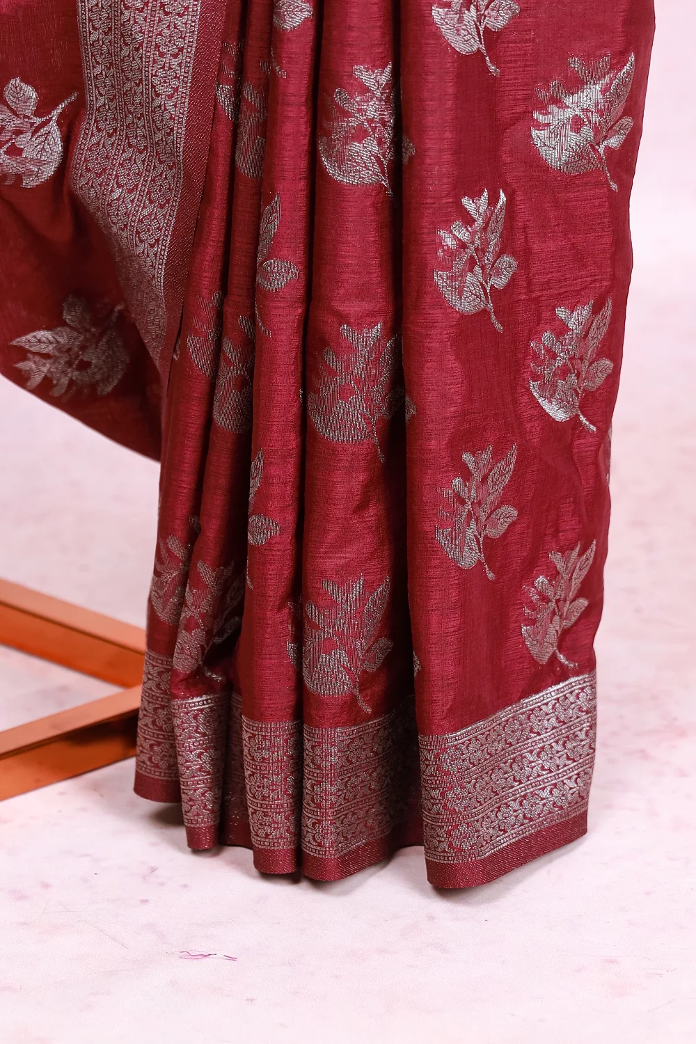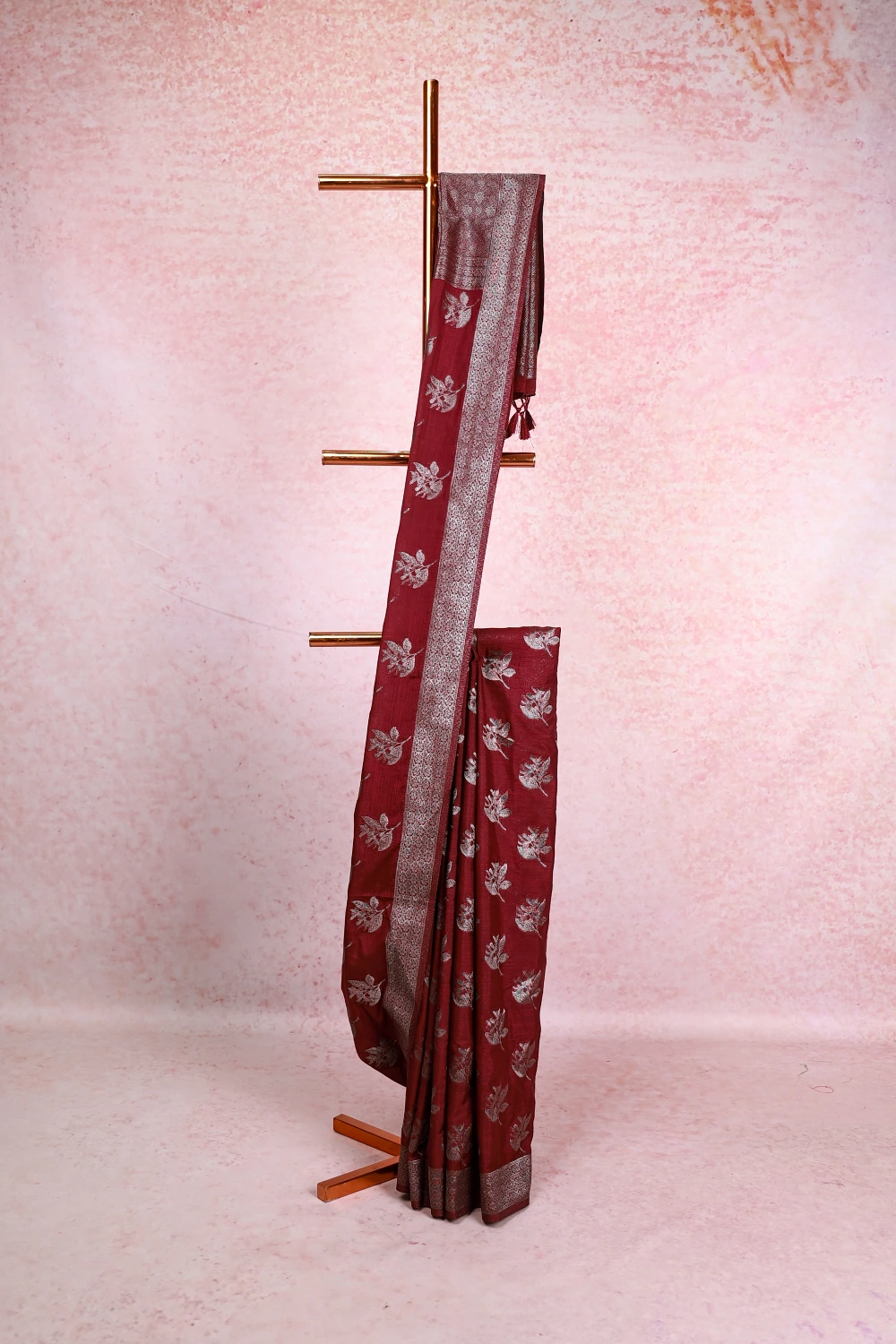 Grape Semi Banarasi Banarasi Design Saree With Small Border. Includes Un Stitched Blouse