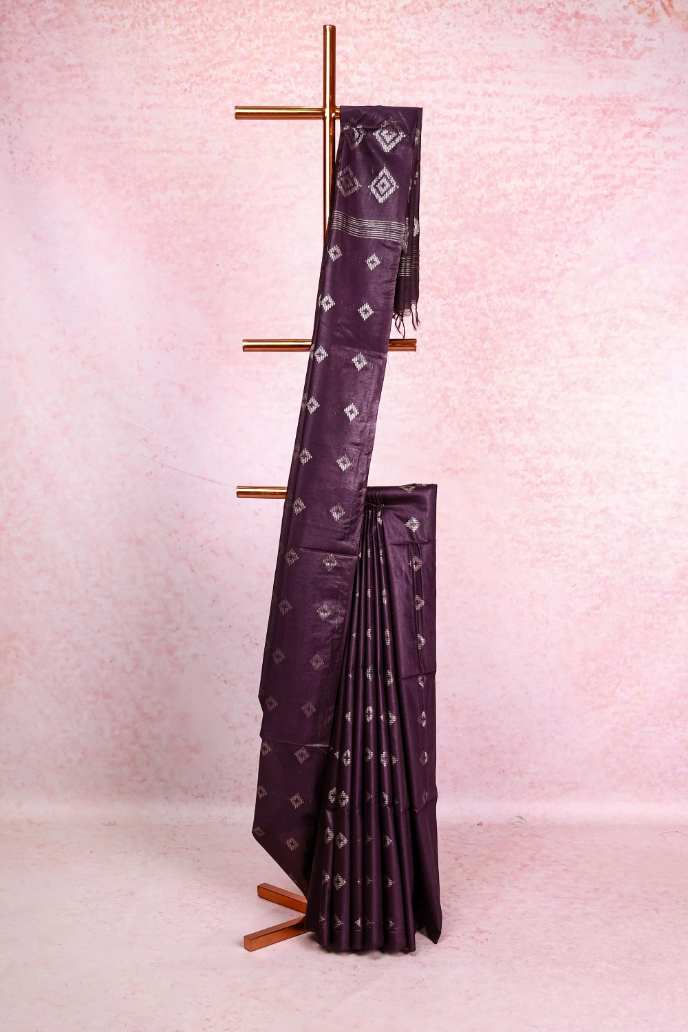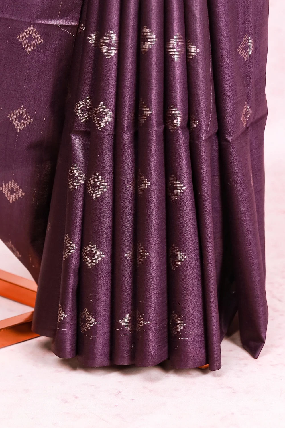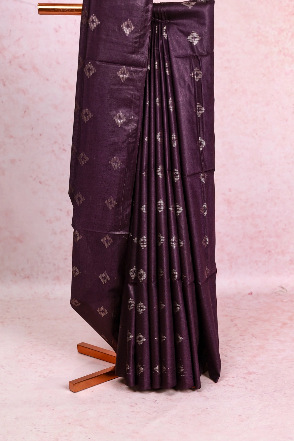 Grape Semi Silk Silver Butta Saree Without Border. Includes Un Stitched Blouse
