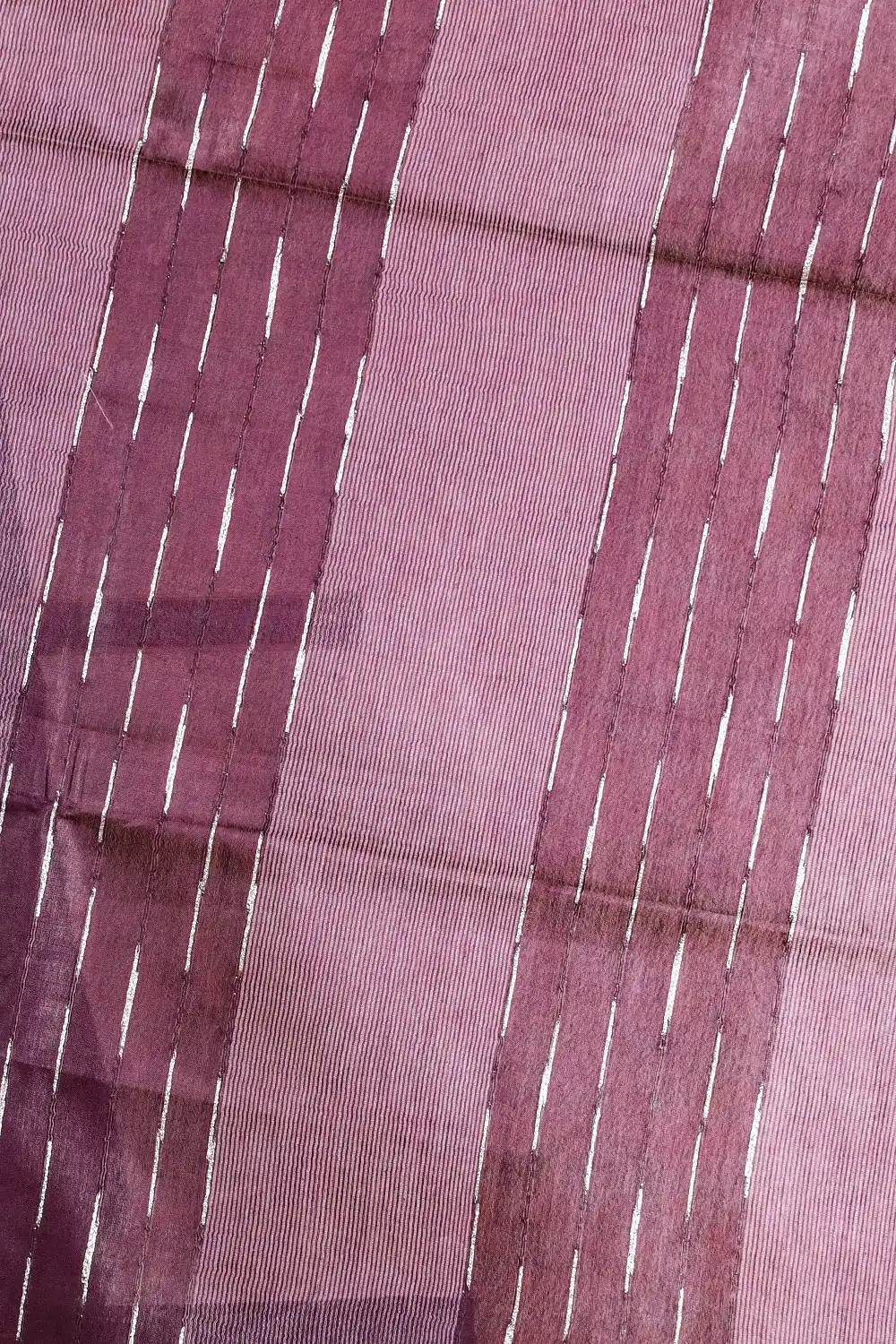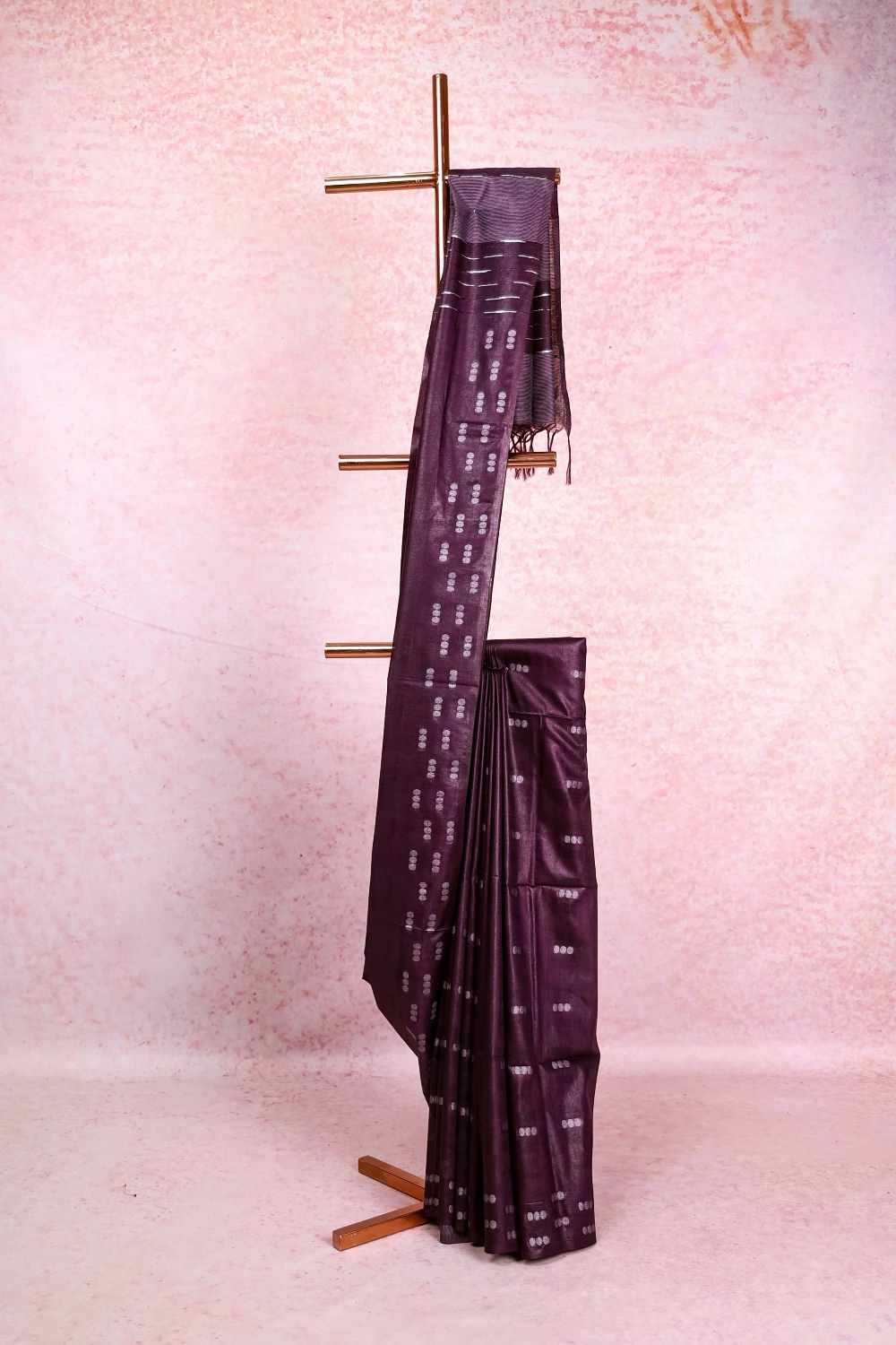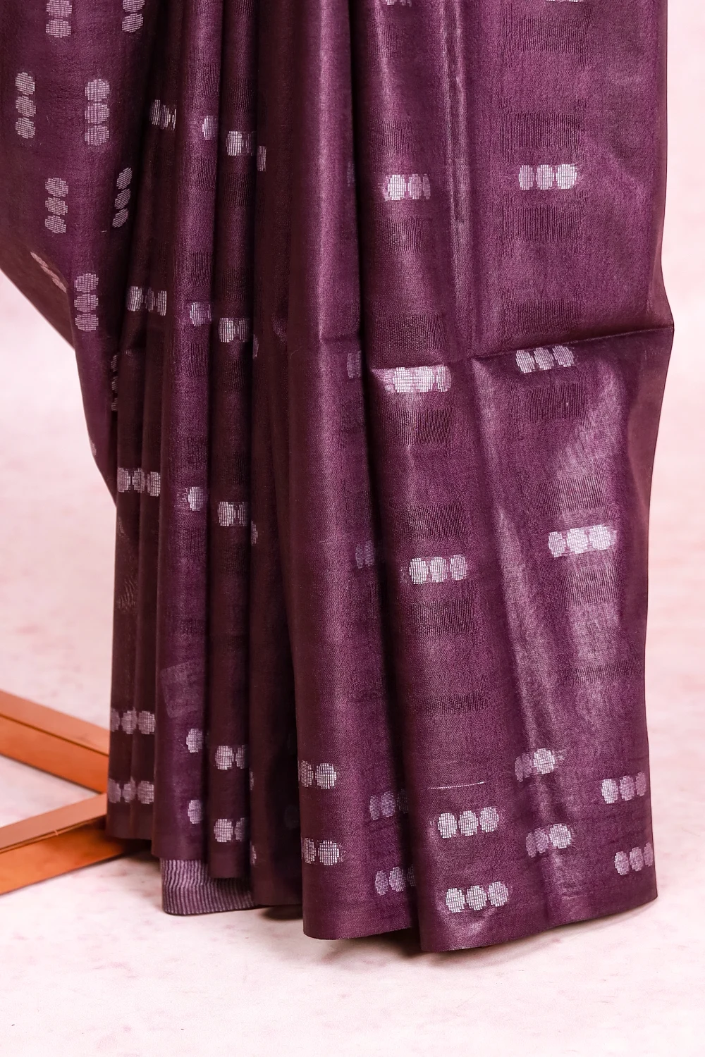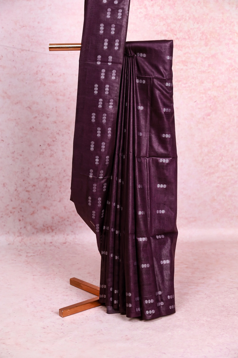 Grape Semi Tussar Butta Saree With Butta Border. Includes Unstitched Blouse