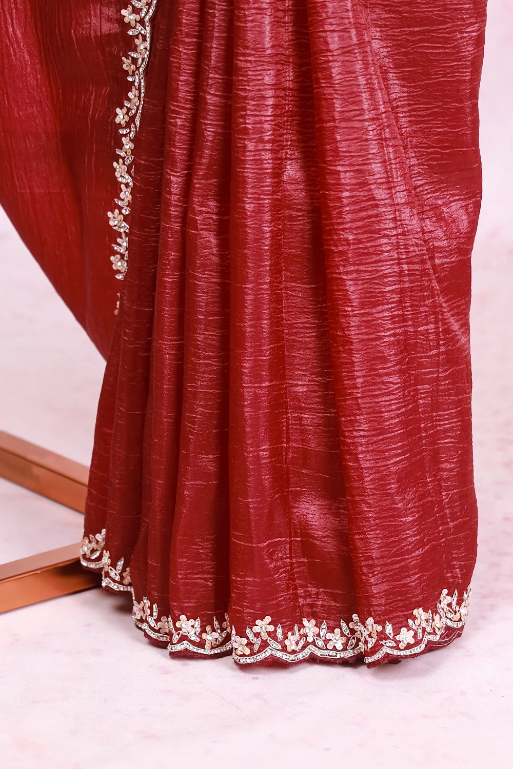 Grape Wine Crush Organza Plain Body Saree With Sequines Border. Includes Un Stitched Blouse