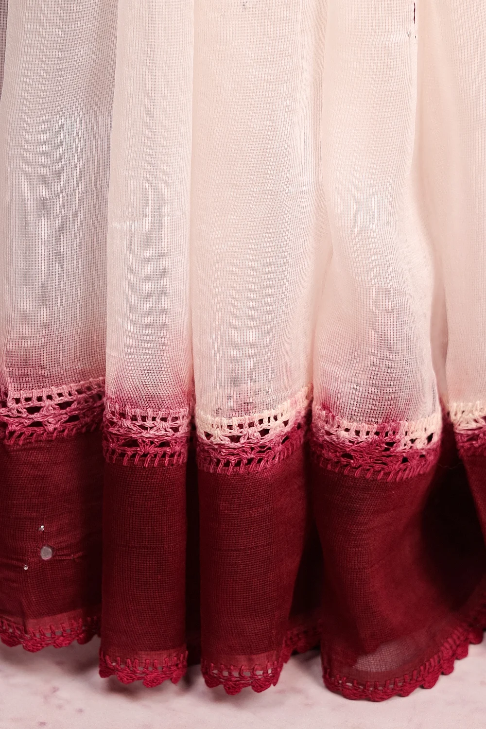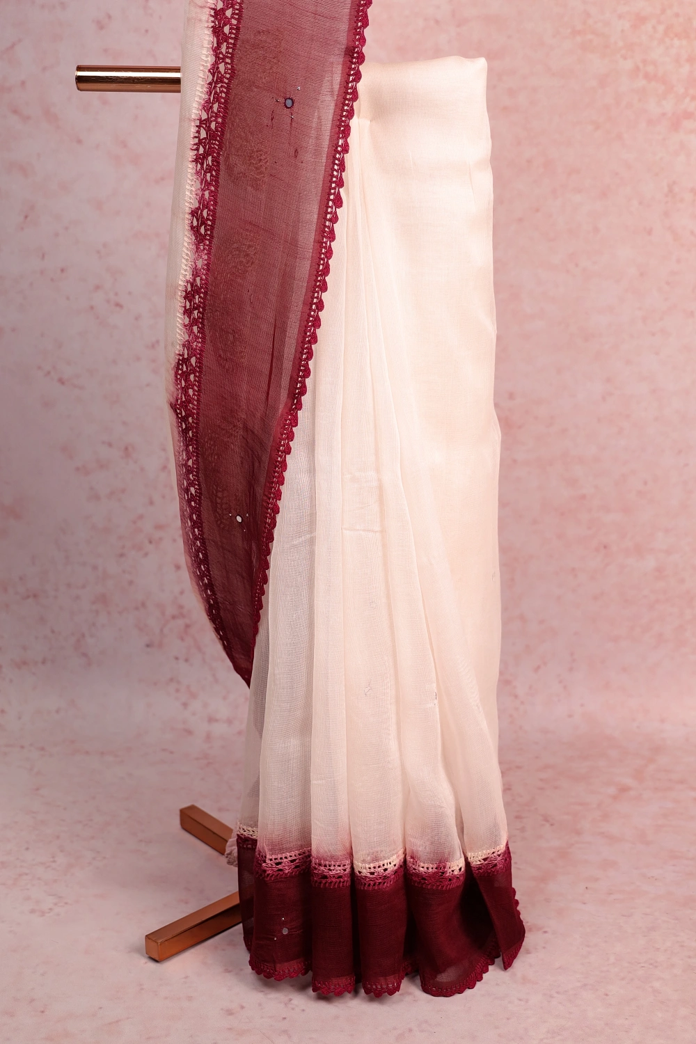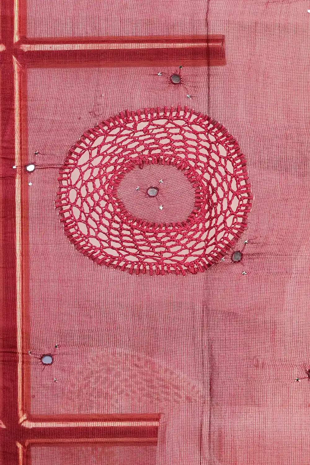 Grape Wine Kota Mirror Work with Contrast Border. Includes Un stitched Blouse