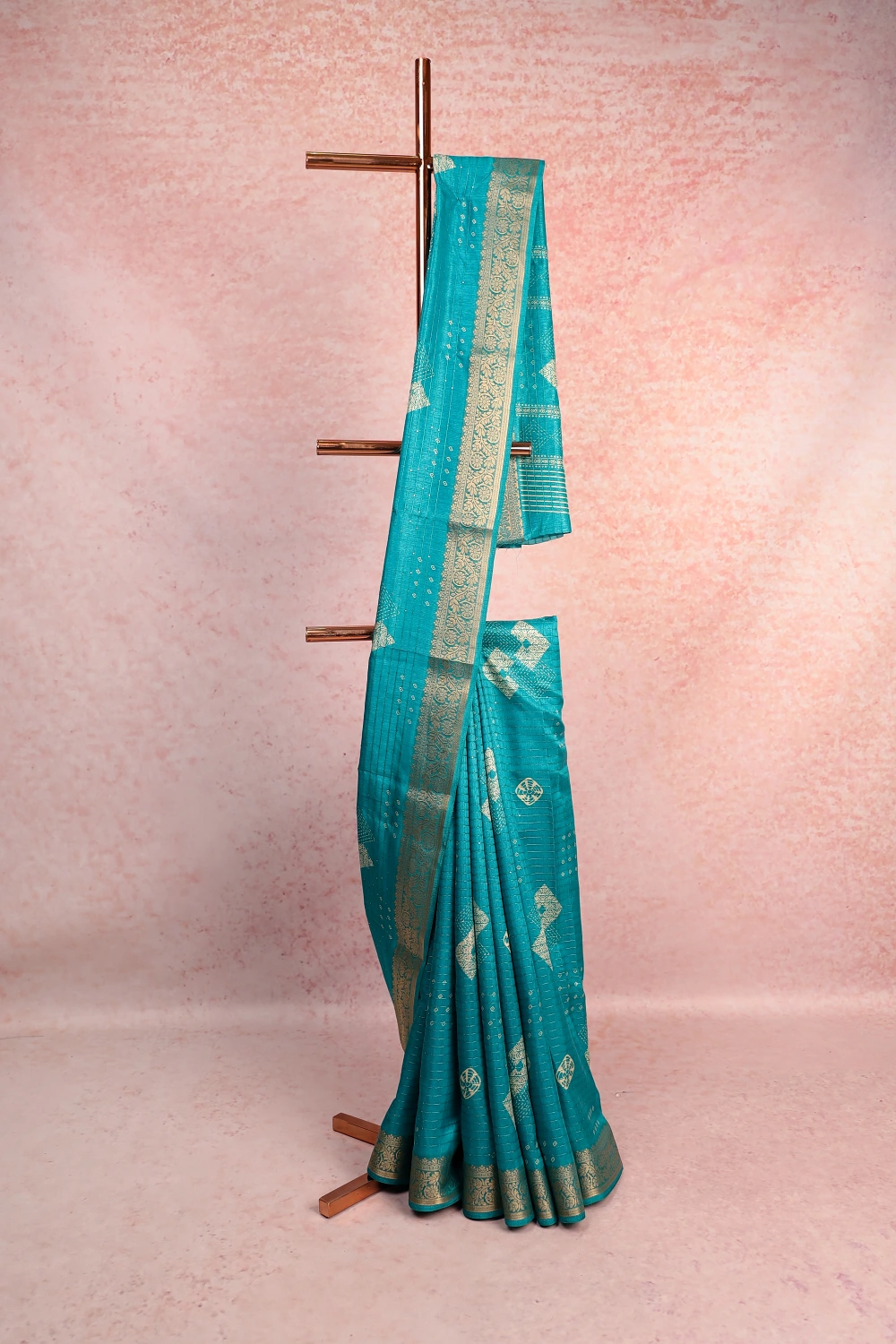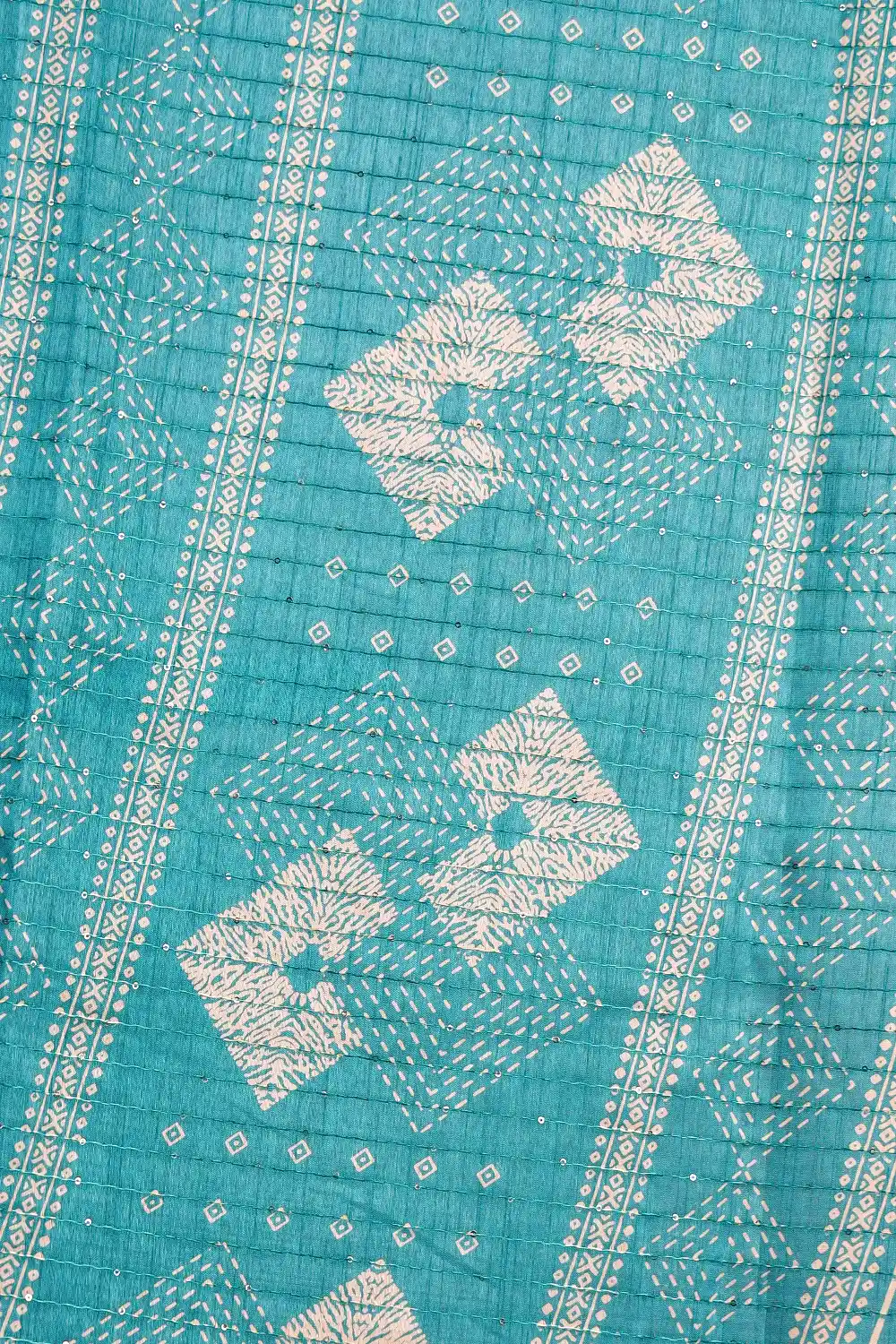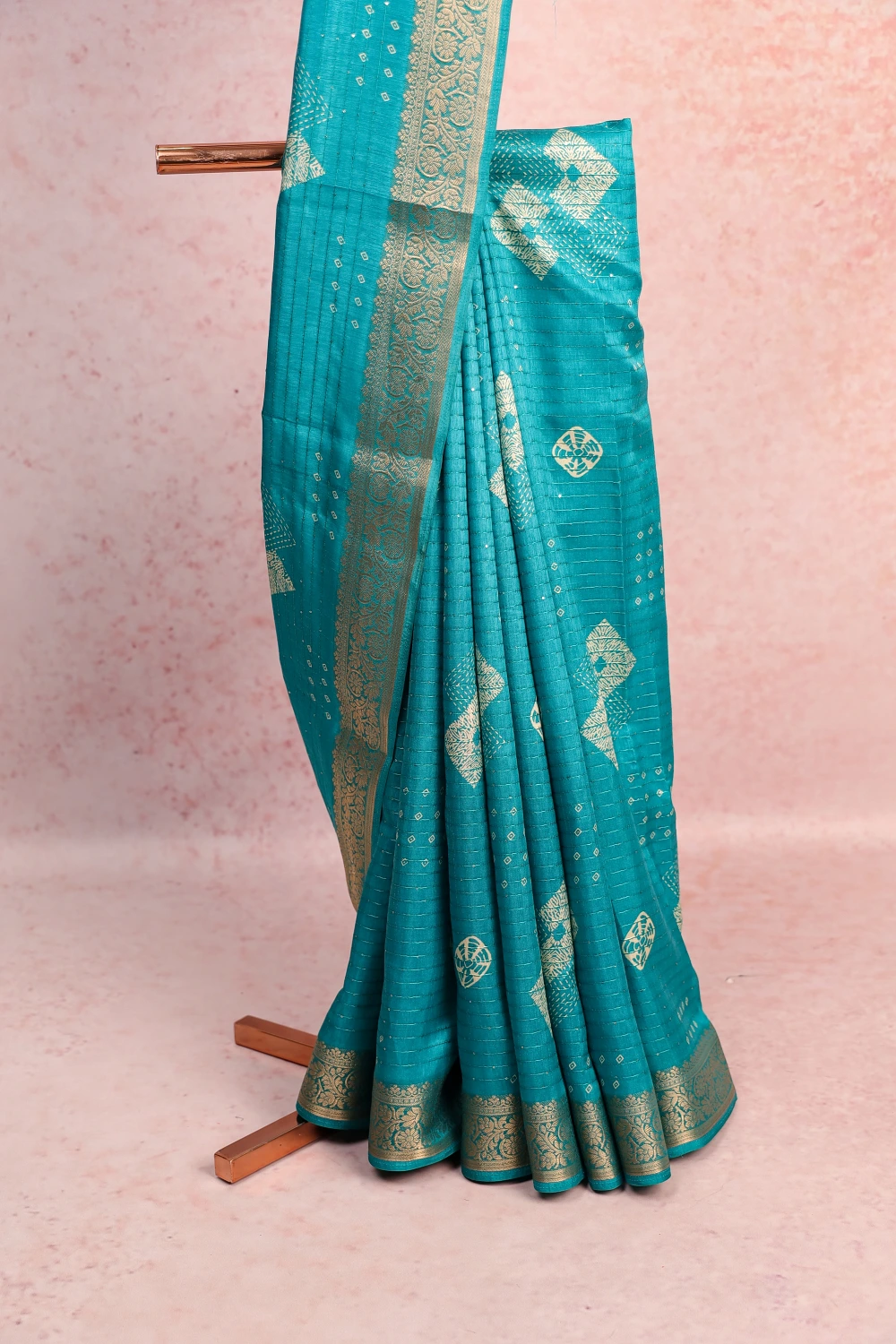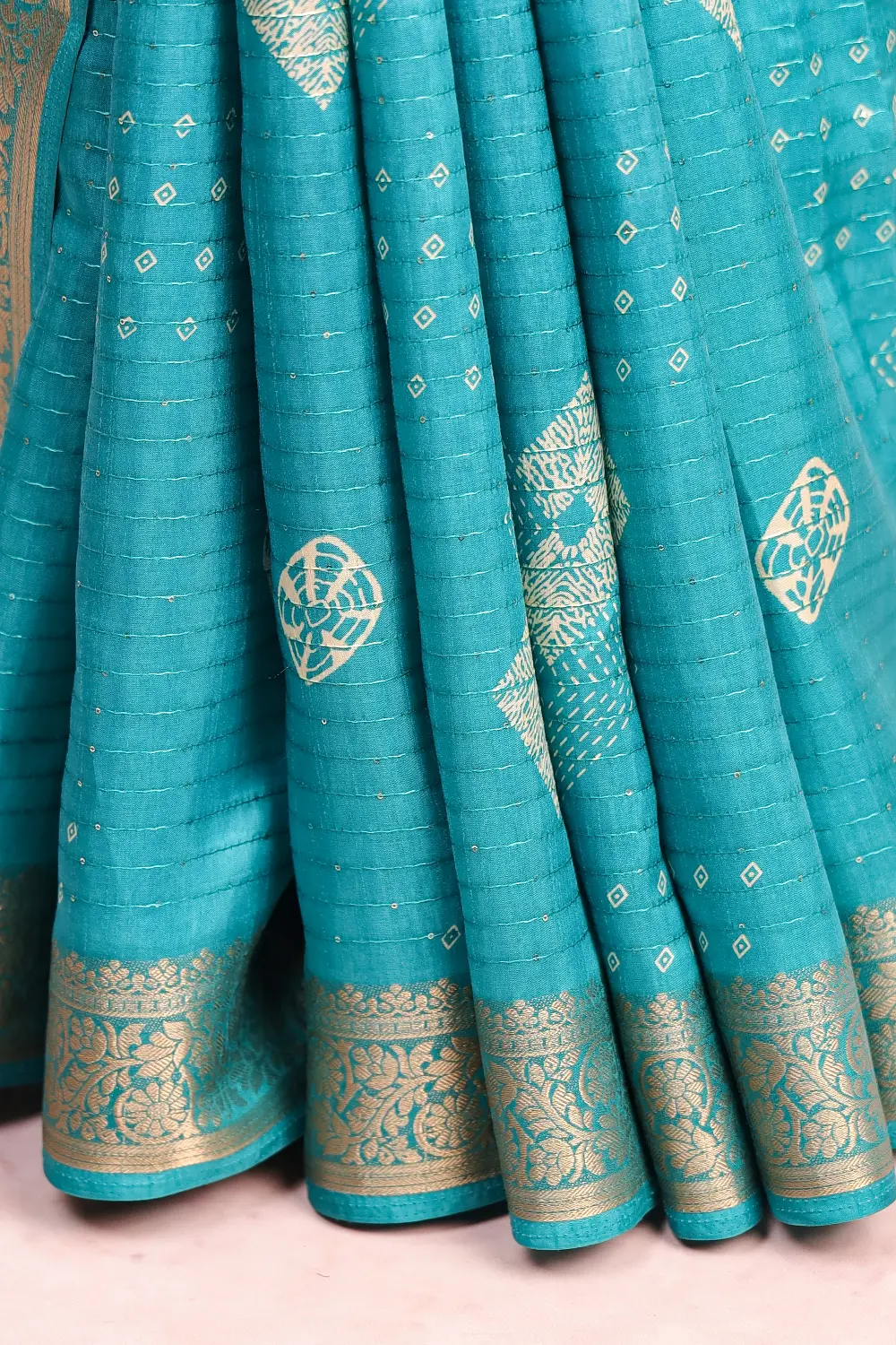 Green Art Silk Block Printed Saree With Designer Border. Includes Un Stitched Blouse