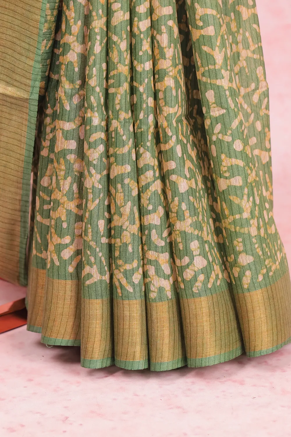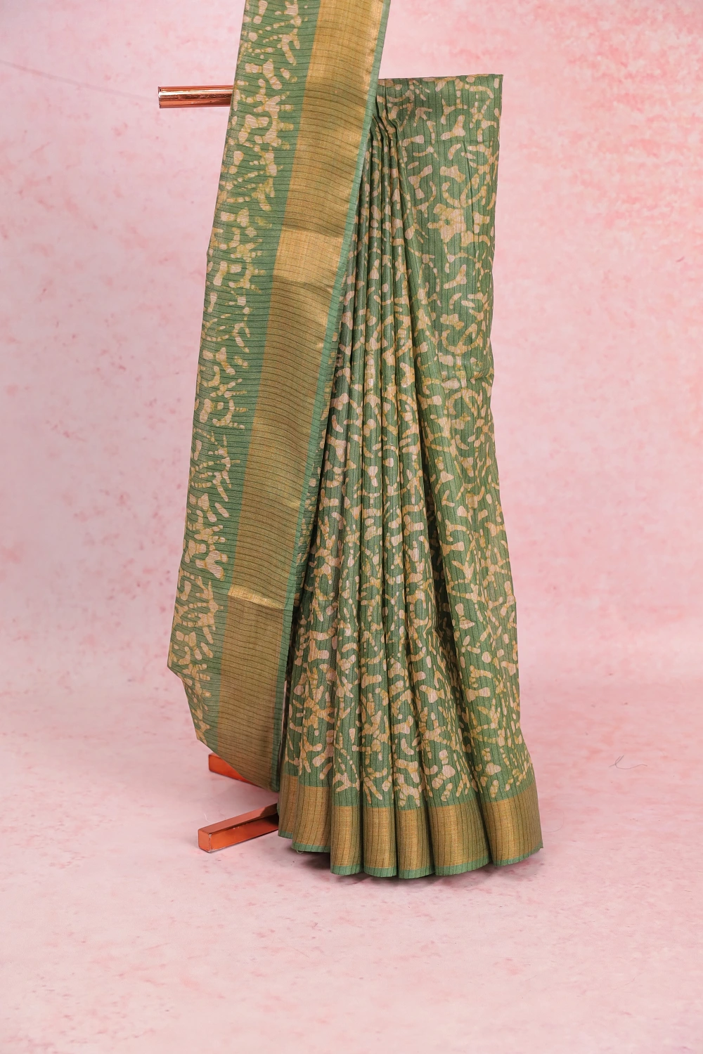 Green Art Silk Printed Saree with Line Border. Includes Unstitched Blouse