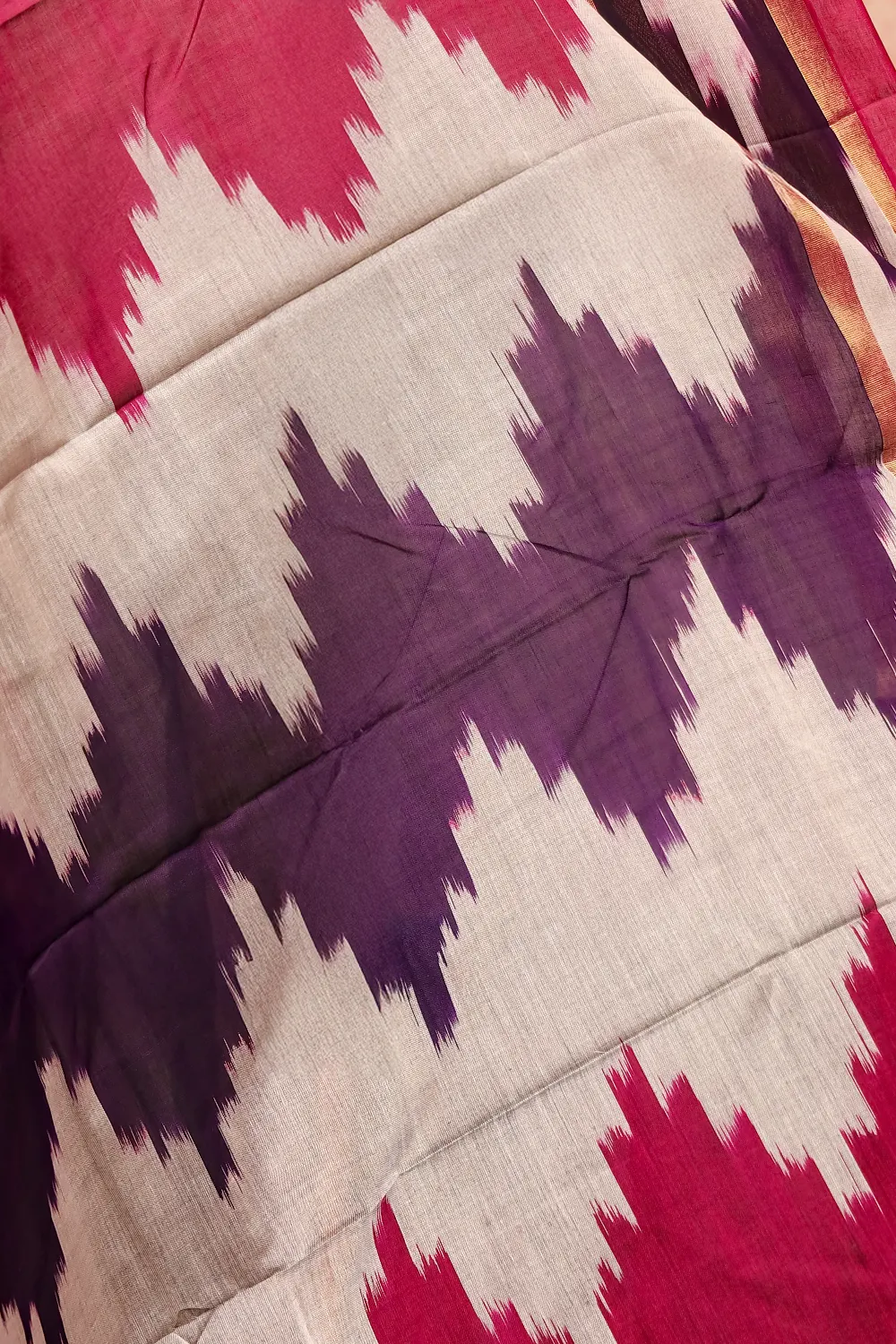Magenta Mul Cotton Saree . Includes Unstitched Blouse