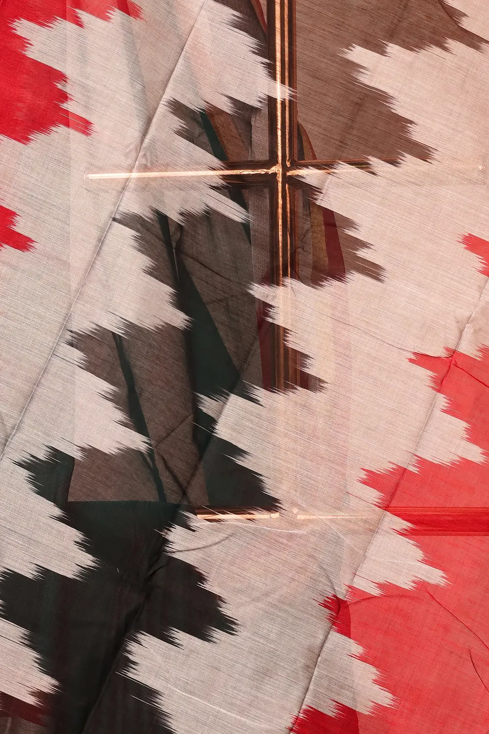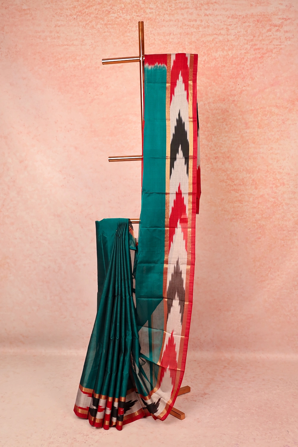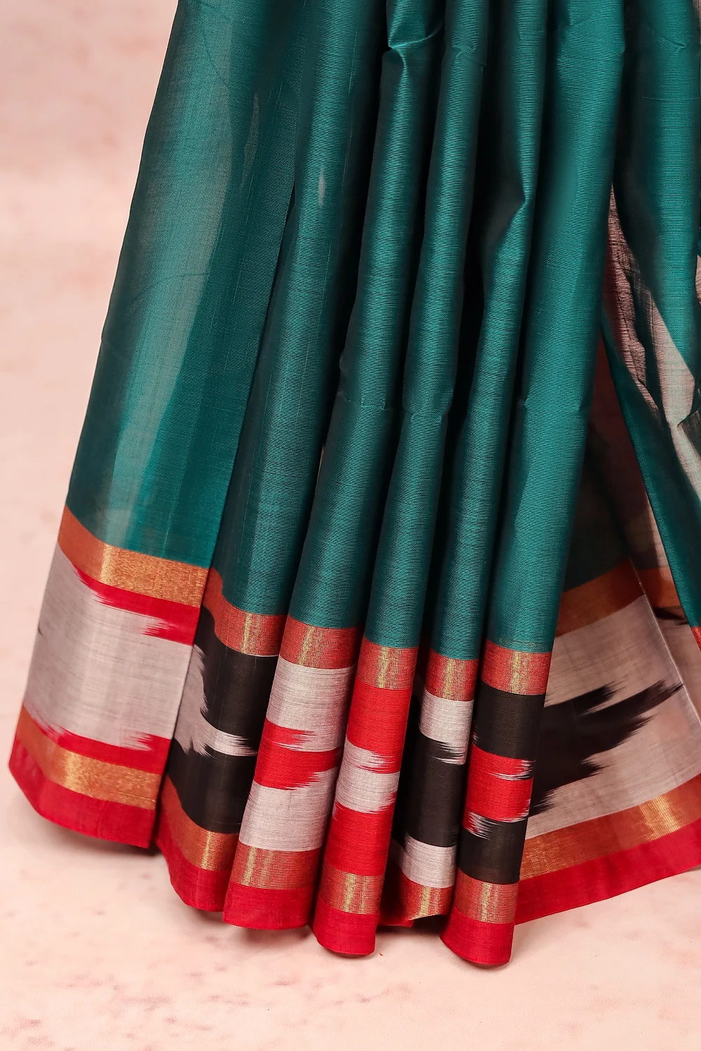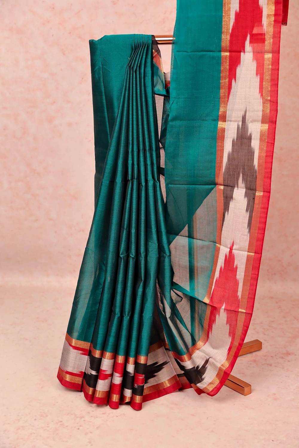 Green Cotton Plain Body Saree with Pochampally border. Includes Unstitched Blouse