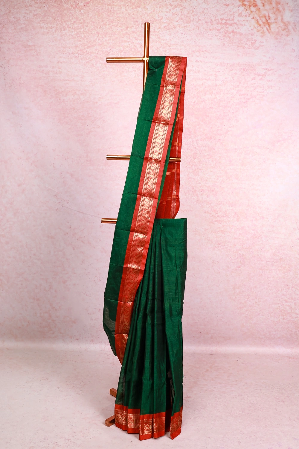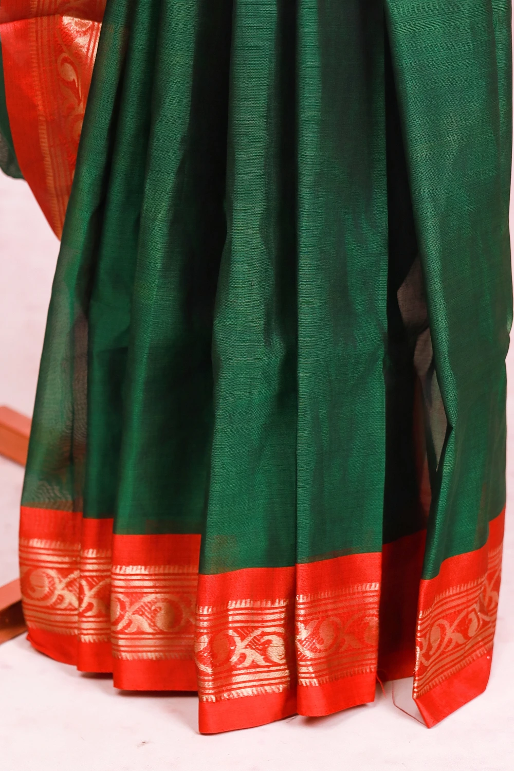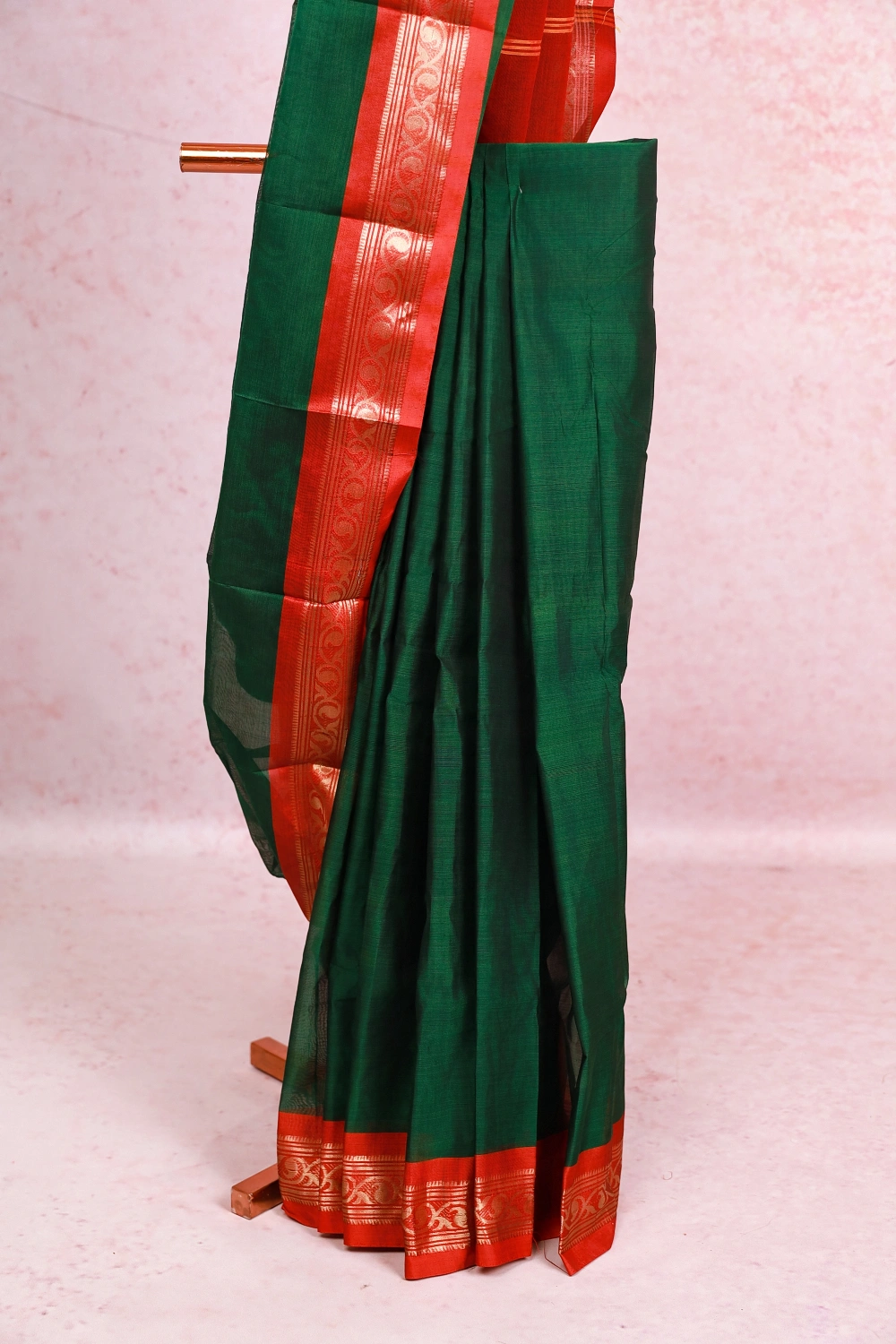 Green Cotton Plain Saree With Designer Border. Includes Un Stitched Blouse