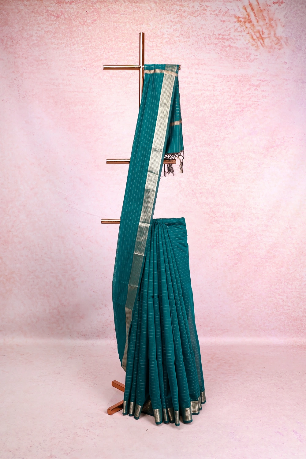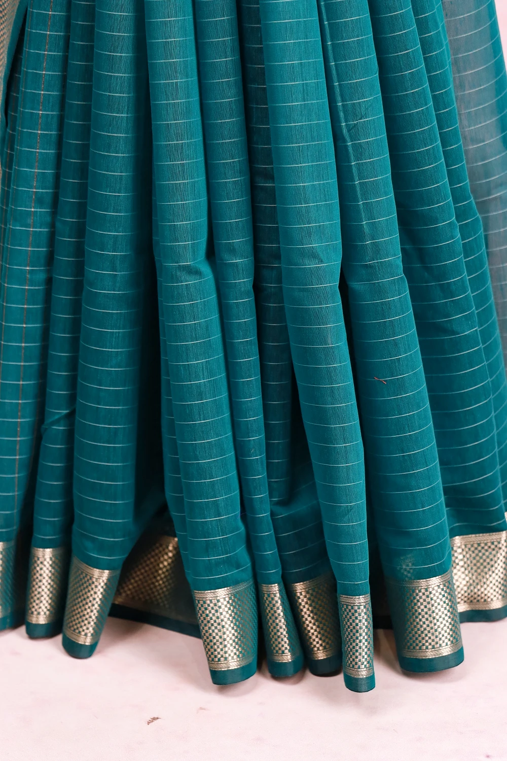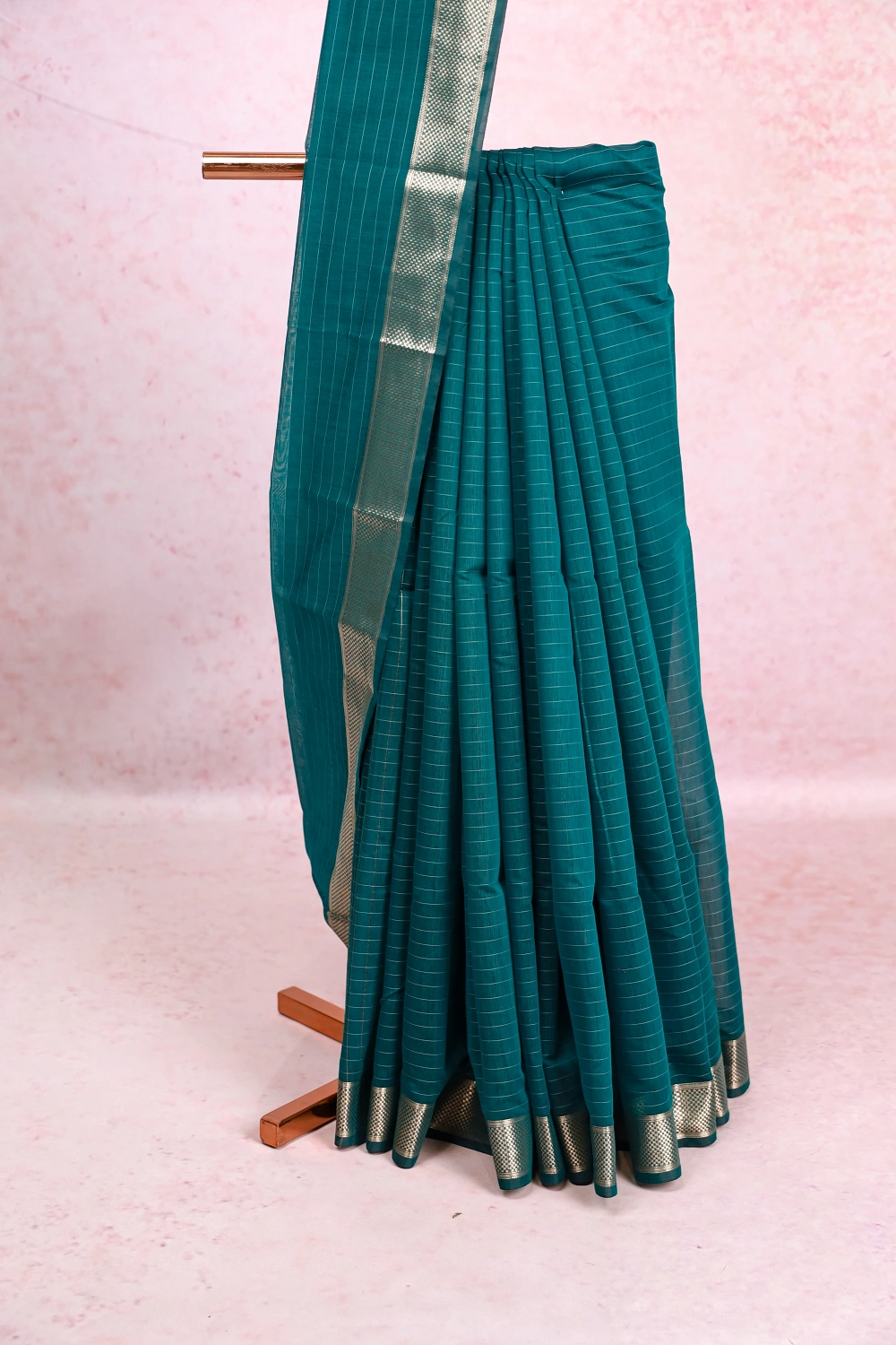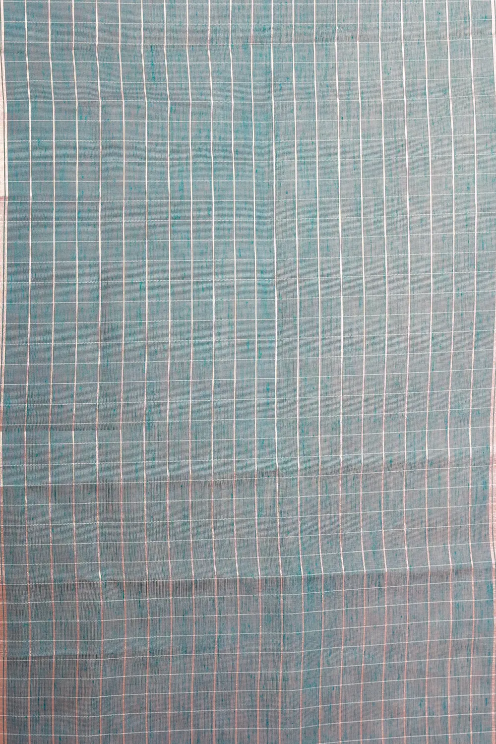 Green Cotton Silk Check Saree with Zari Border. Includes Unstitched Blouse