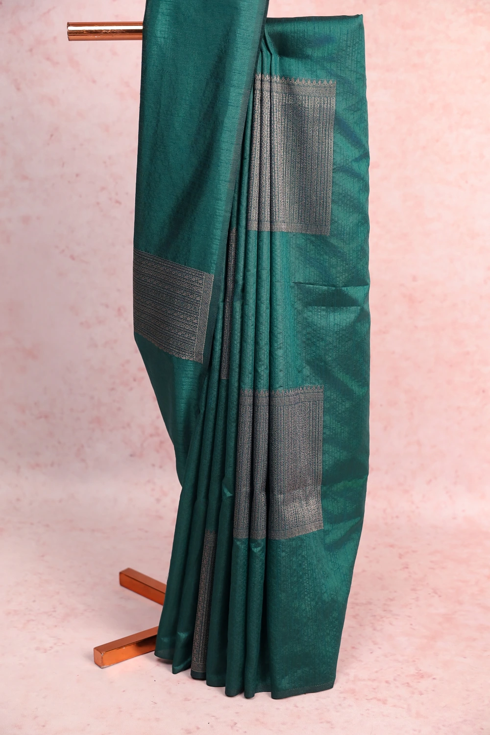 Green Jute Banarasi Box Design Saree with Without Border. Includes Unstitched Blouse