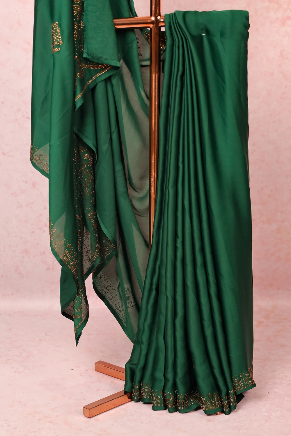 Green Satin Chiffon Saree
