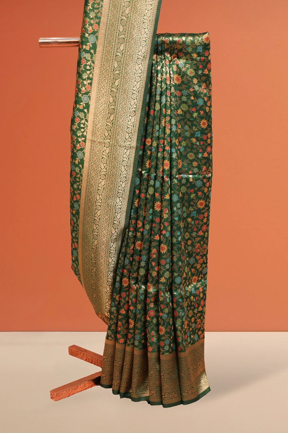 Green Semi Jute Banarasi Design Saree With Designer Border. Includes Unstitched Blouse