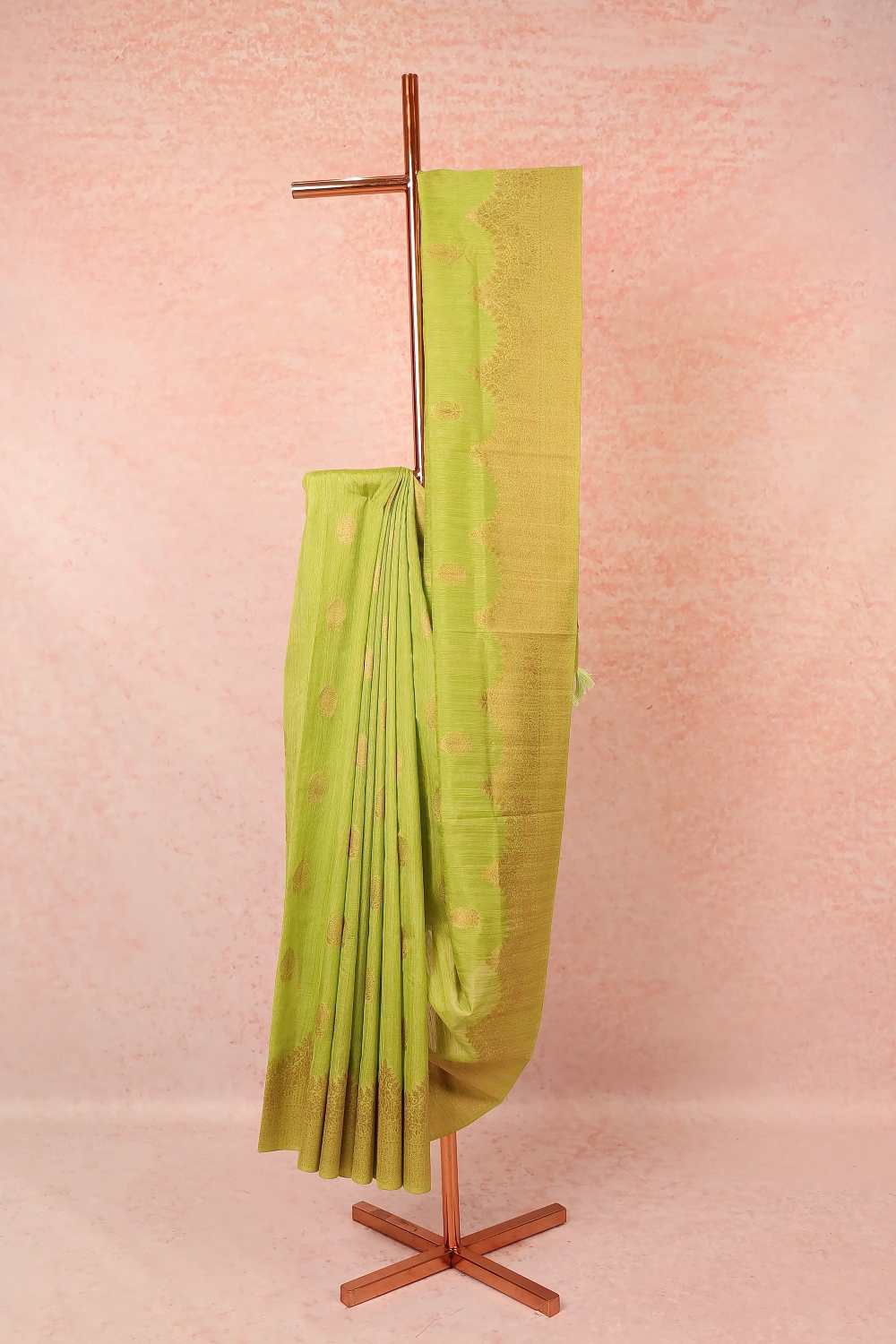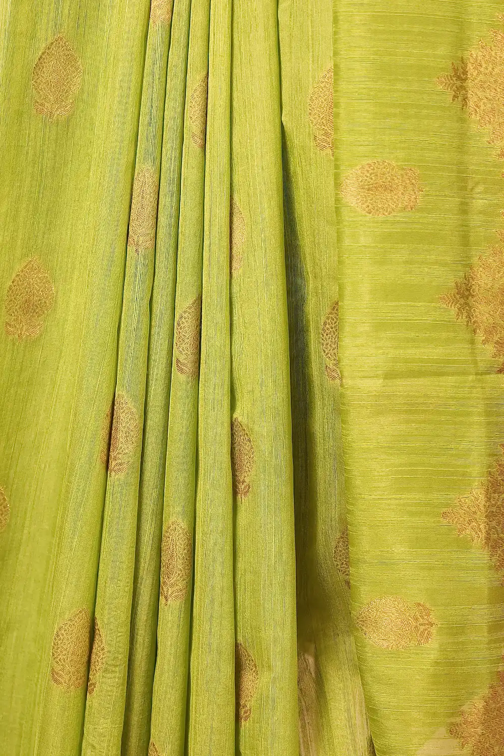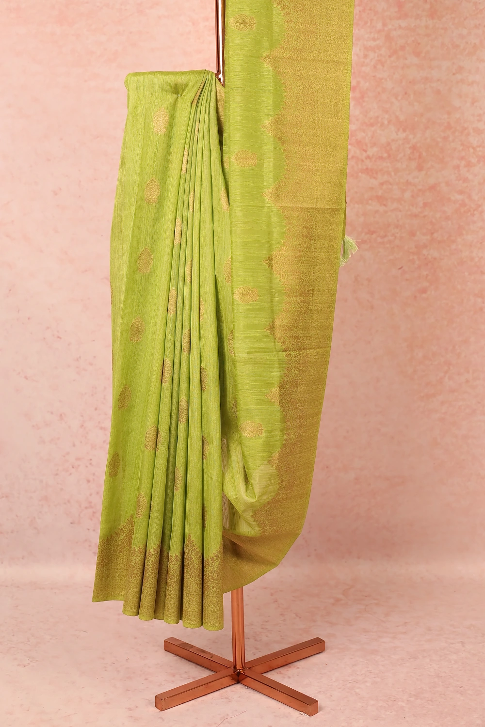 Green Semi Jute Designer Butta Saree with Designer border. Includes Unstitched Blouse