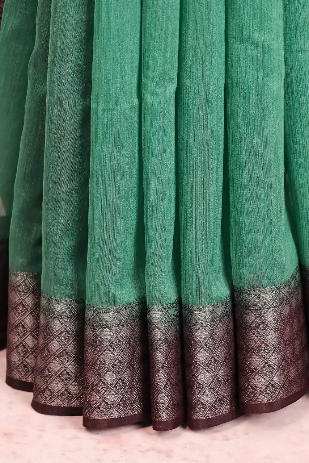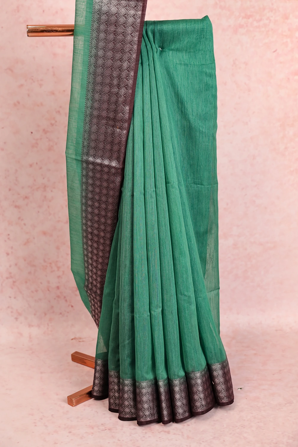 Green Semi Jute Plain Body Saree with Designer Border. Includes Unstitched Blouse