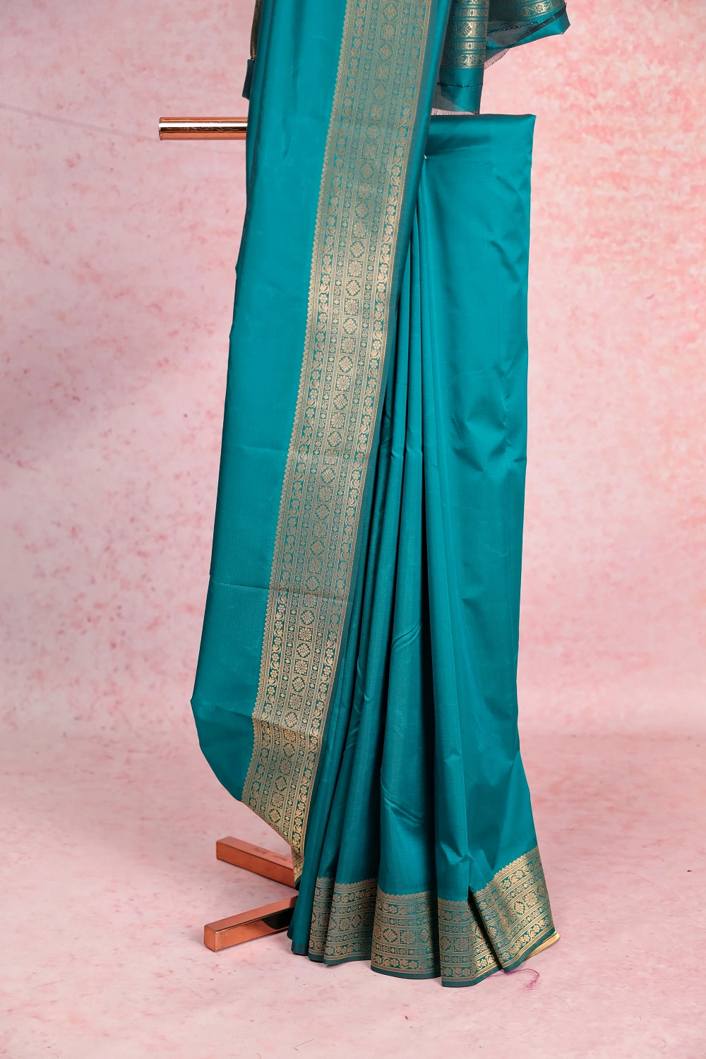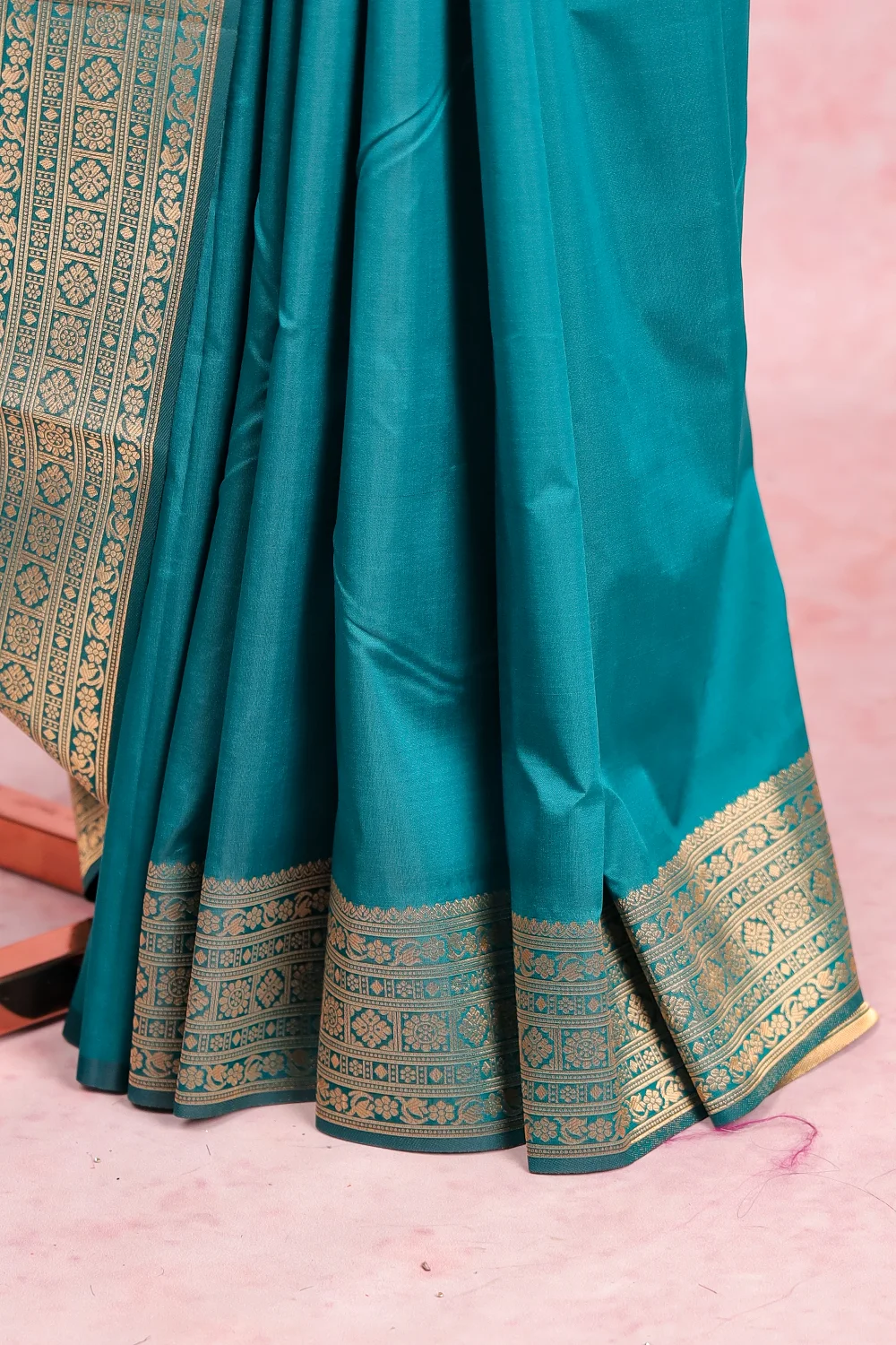 Green Semi Silk Plain Saree With Brocade Border. Includes Unstitched Blouse