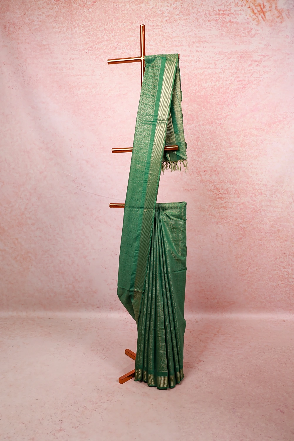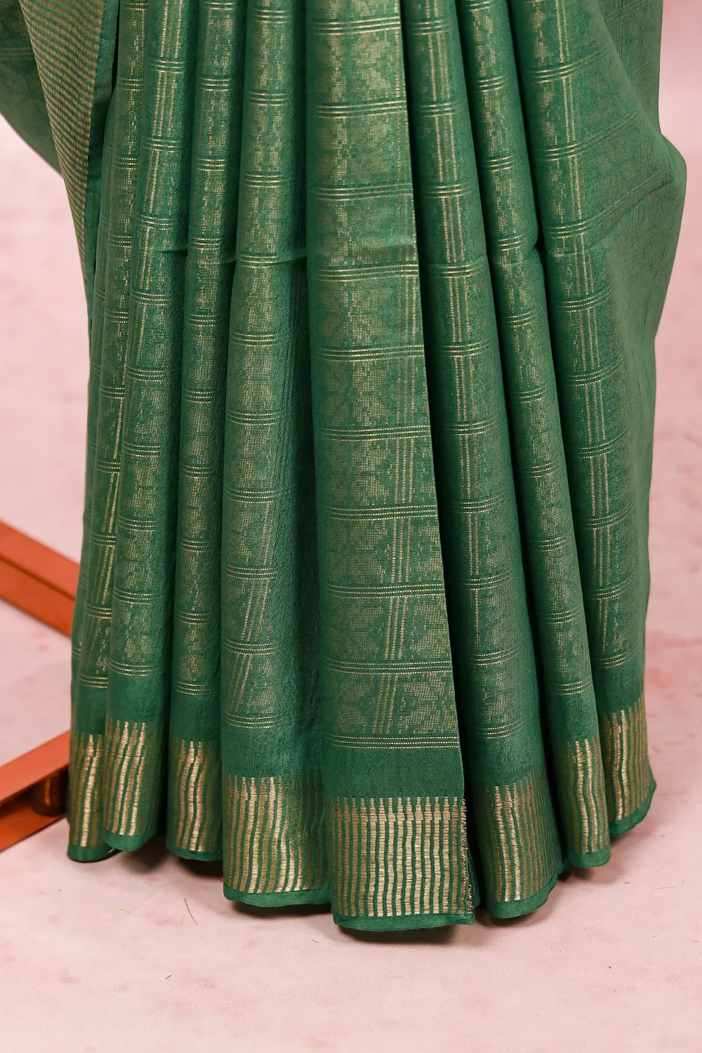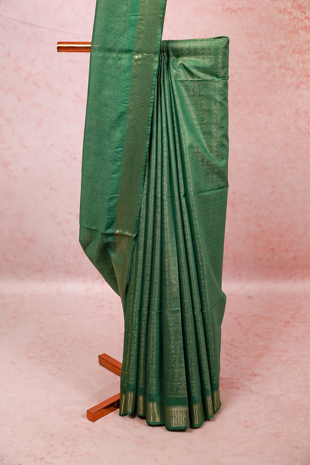 Green Semi Tussar Zari Design Saree With Zari Border. Includes Unstitched Blouse