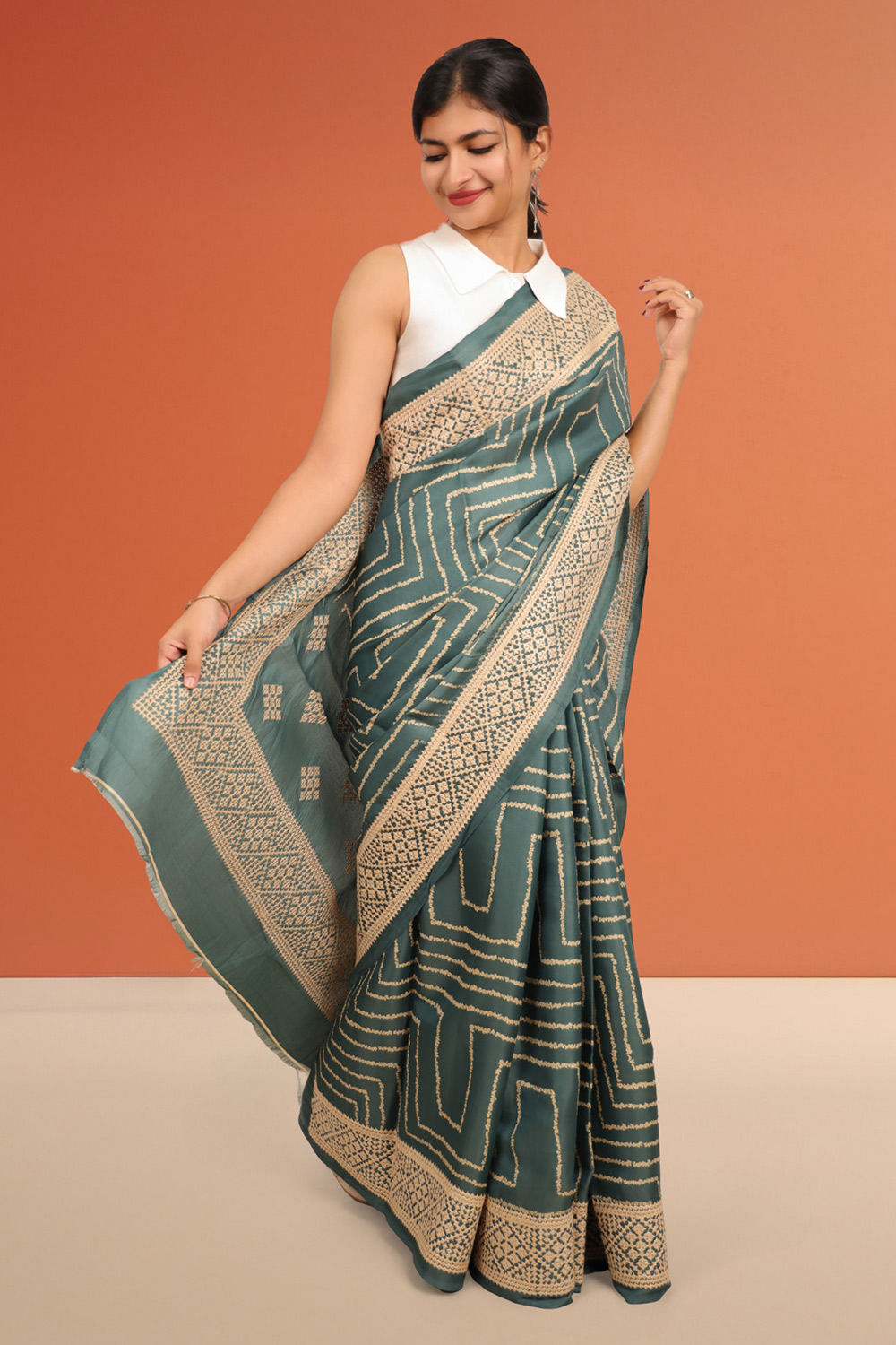 Green Semi Tussar Saree