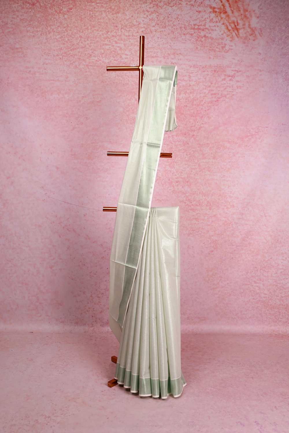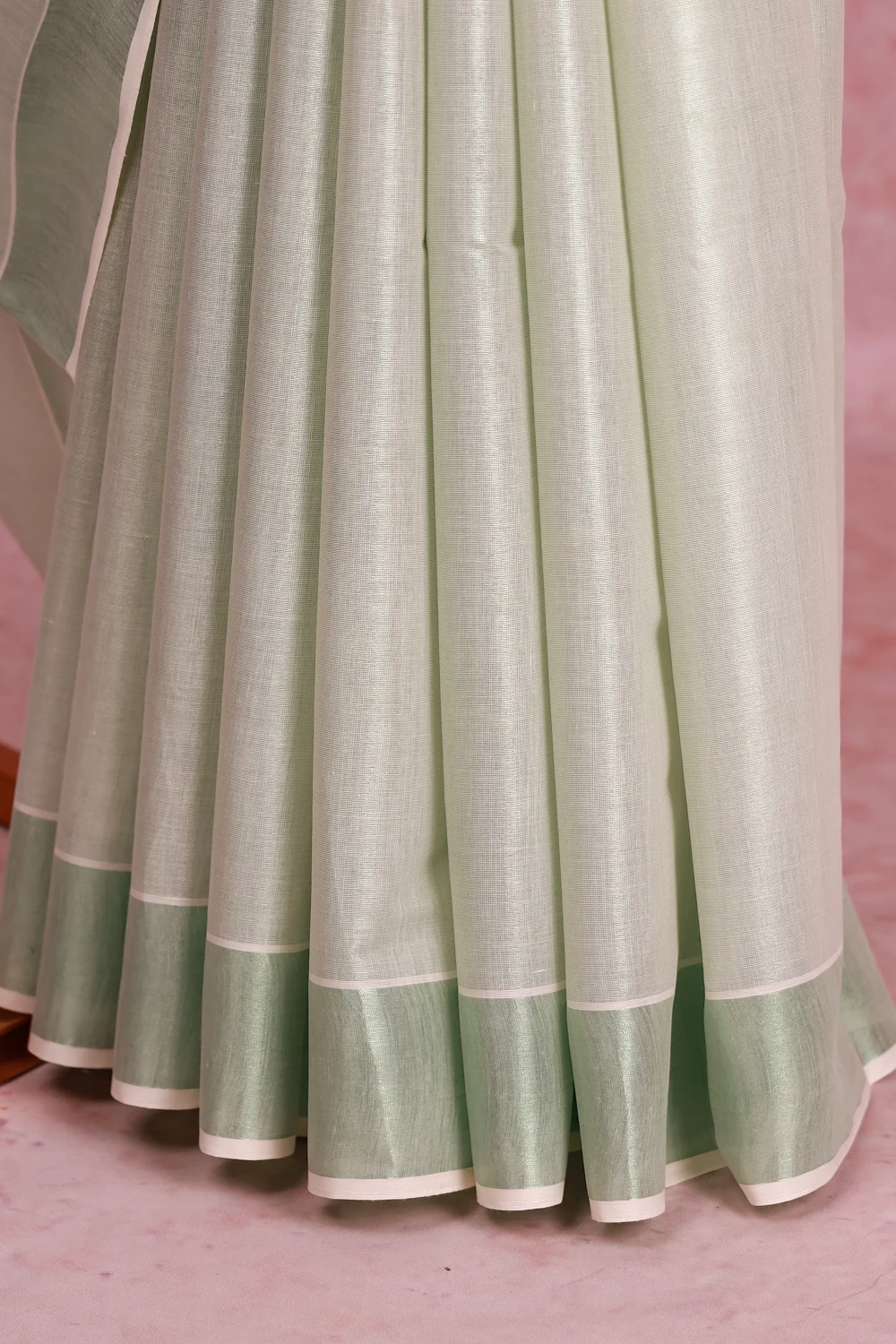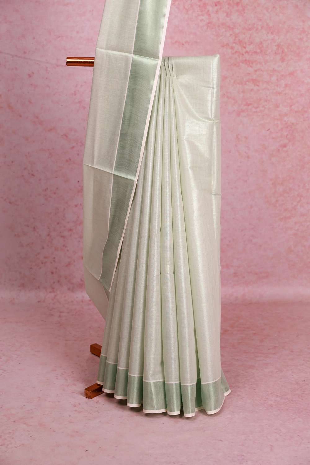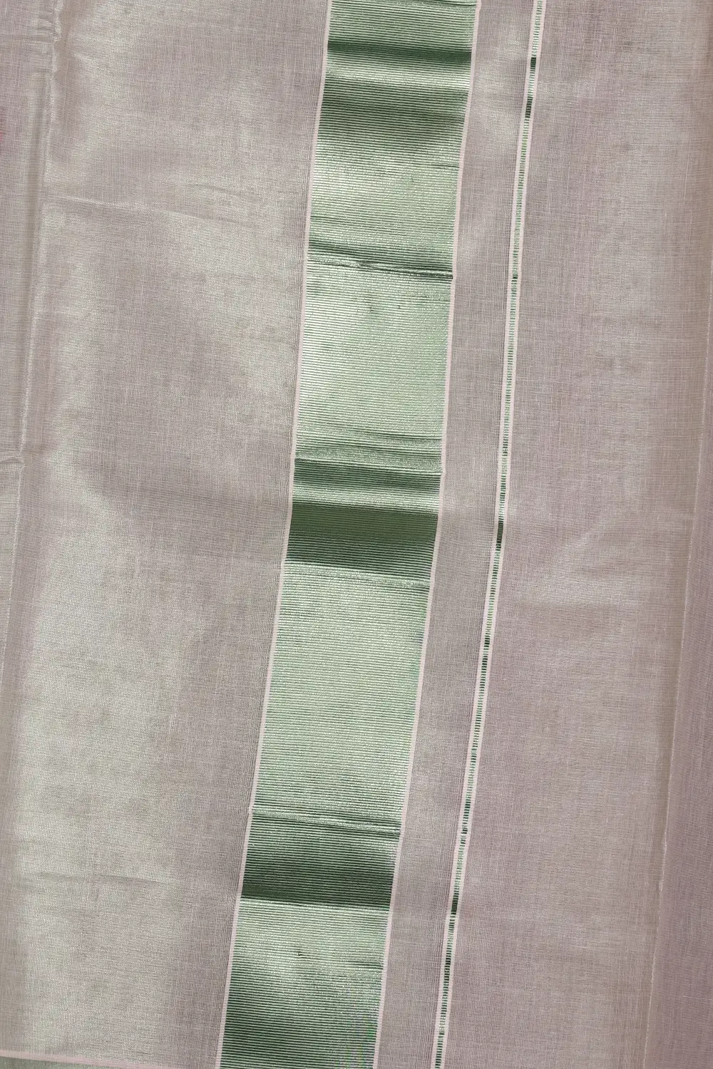 Green Tissue Kerala Plain Body Saree With Zari Border. Includes Un Stitched Blouse