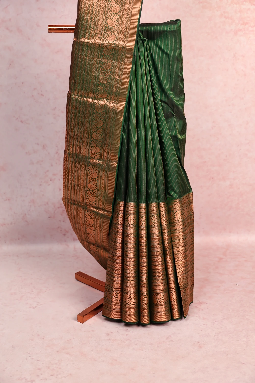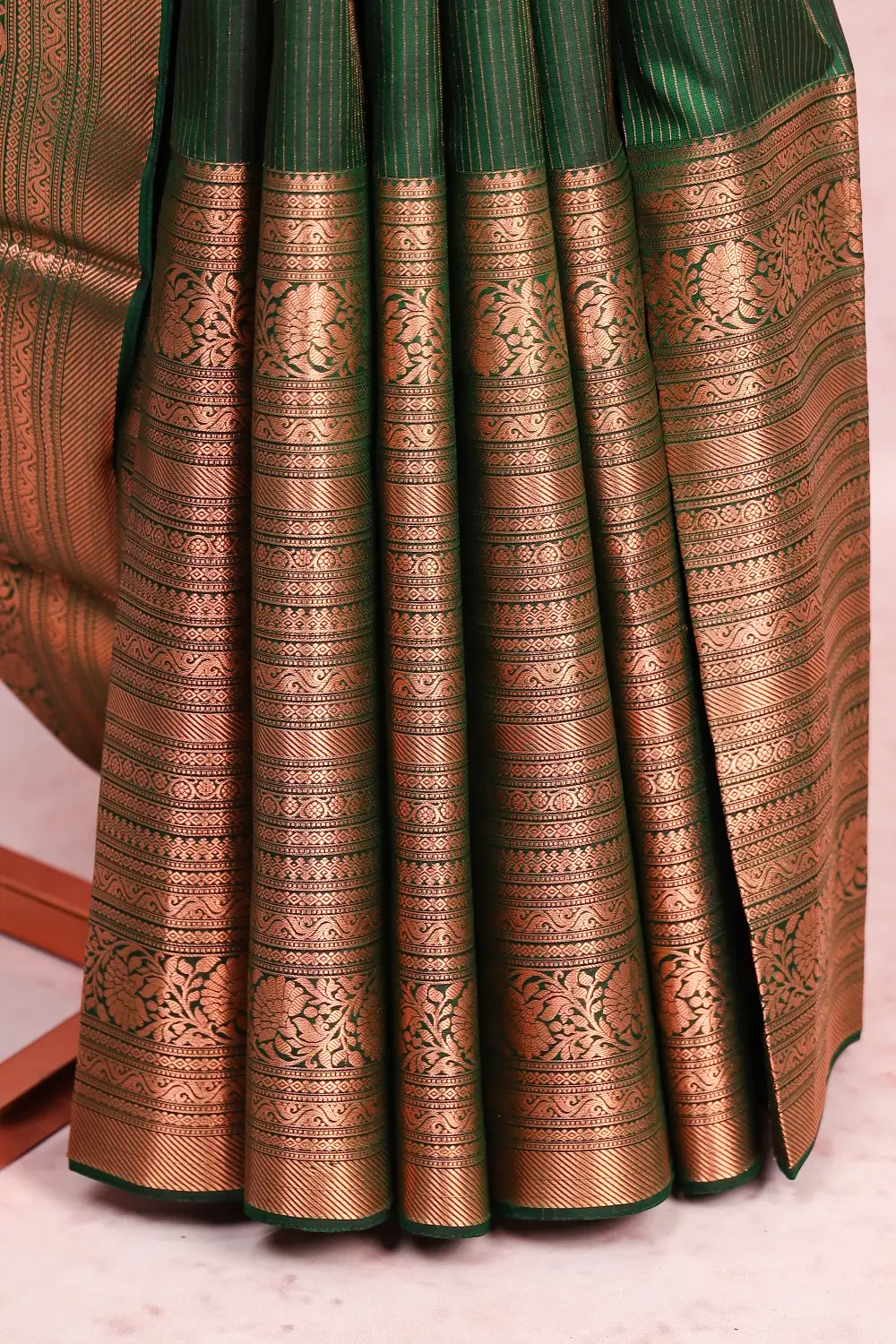 Green Traditional Kancheepuram Lines Saree with Designer Border. Includes Unstitched Blouse