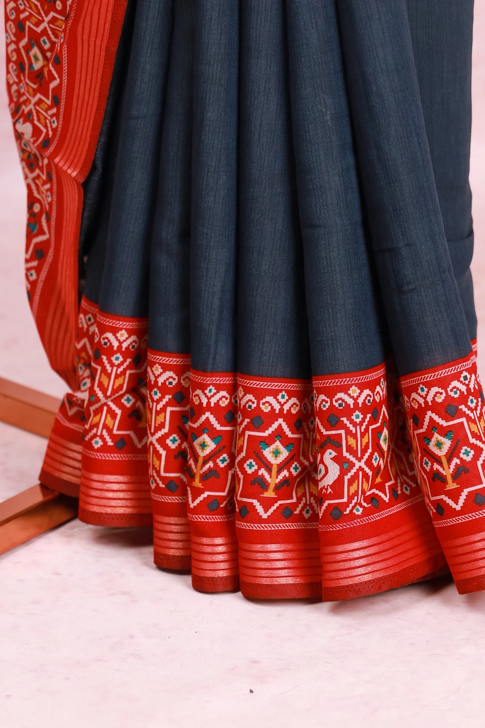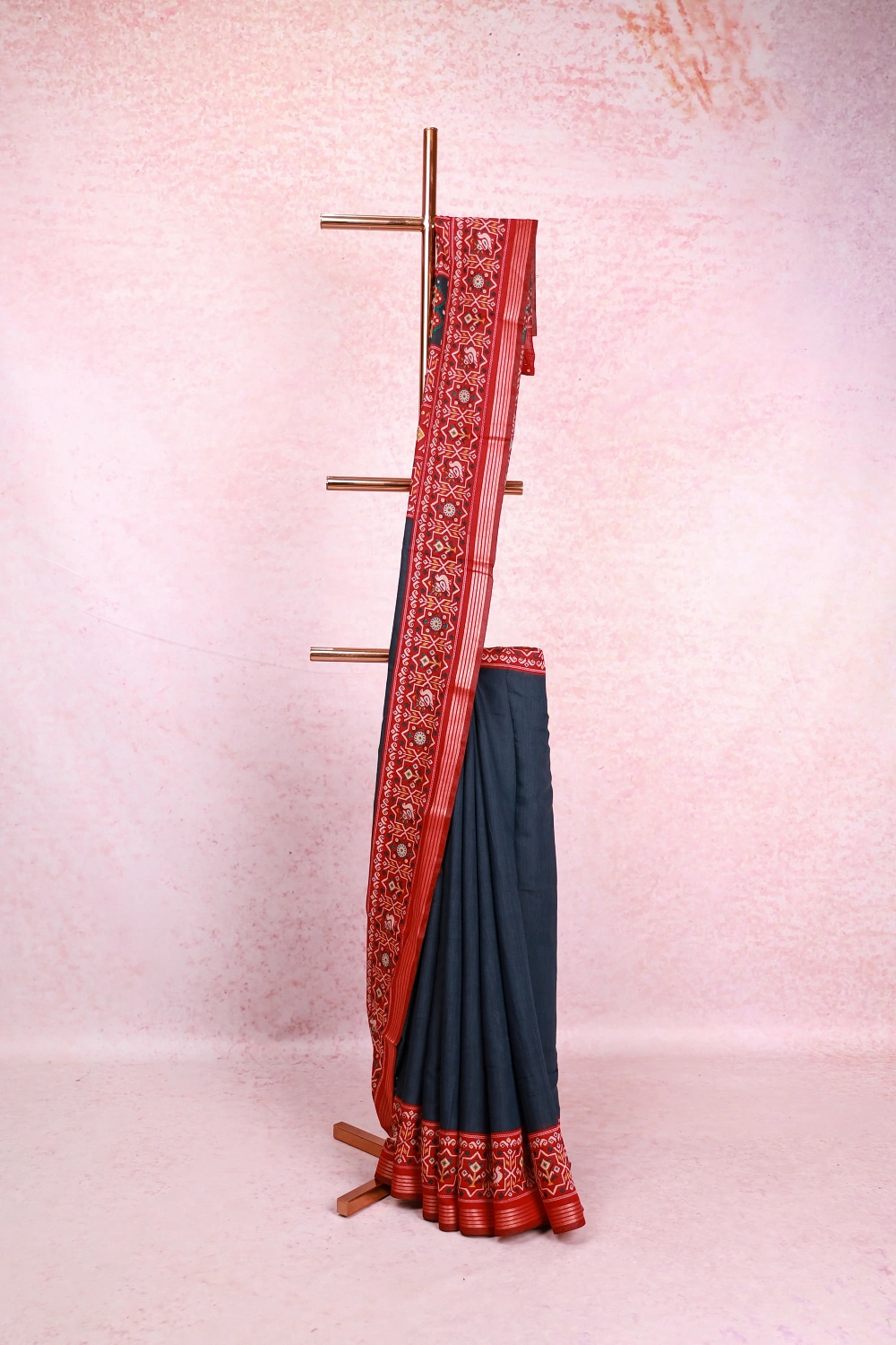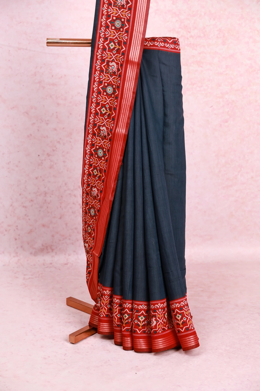 Greenish Ash Cotton Kota Plain Saree With Contrast Colour Border. Includes Un Stitched Blouse